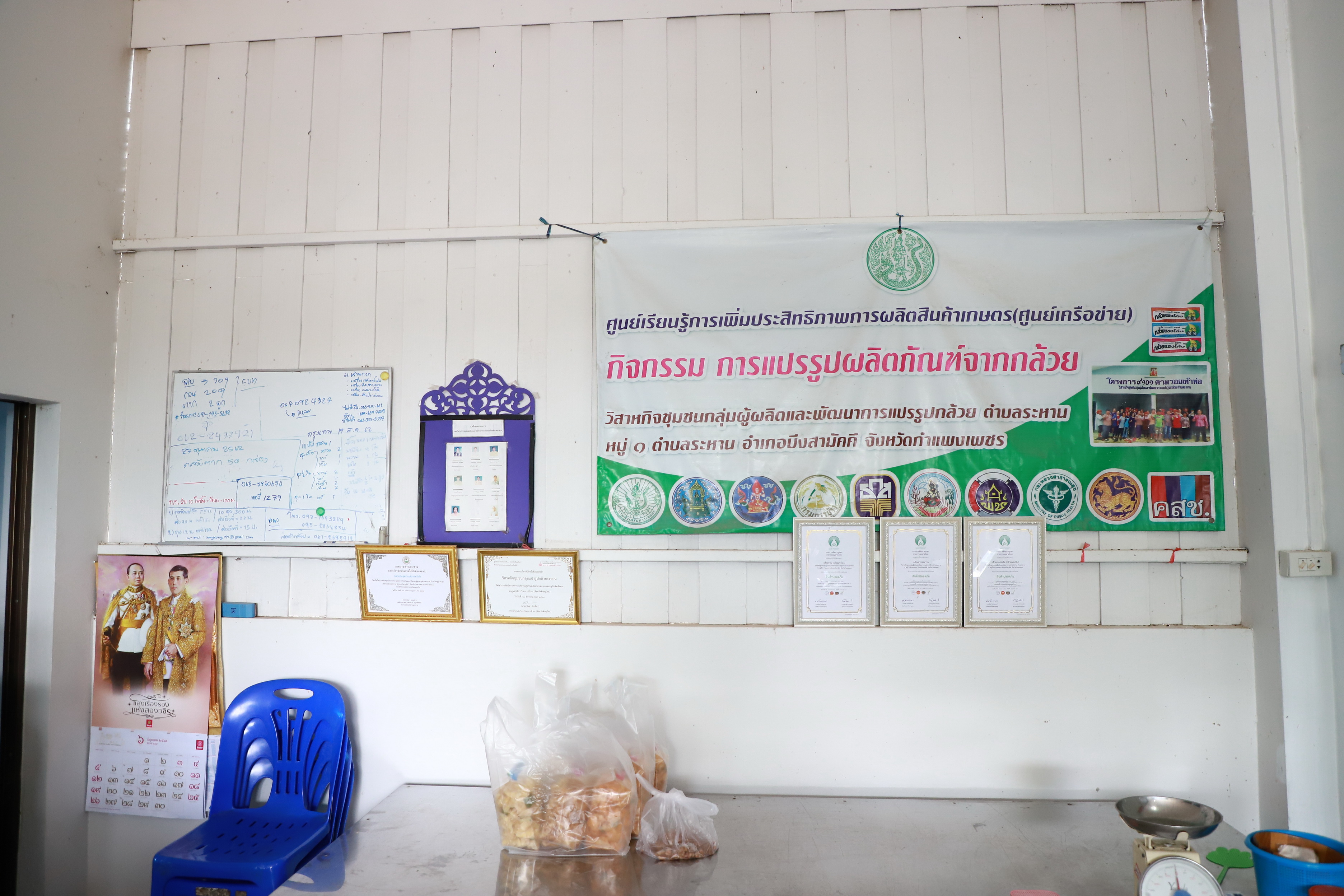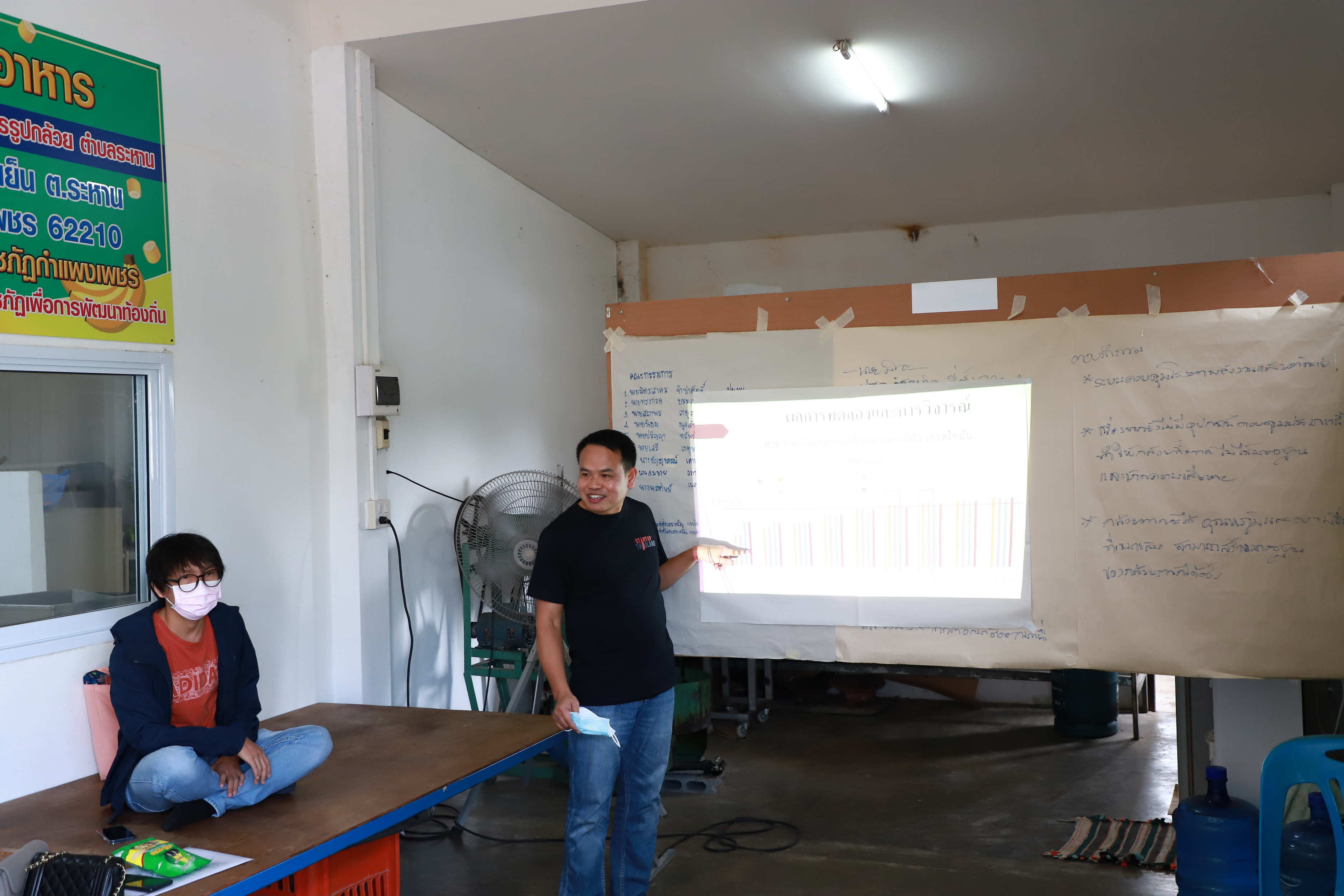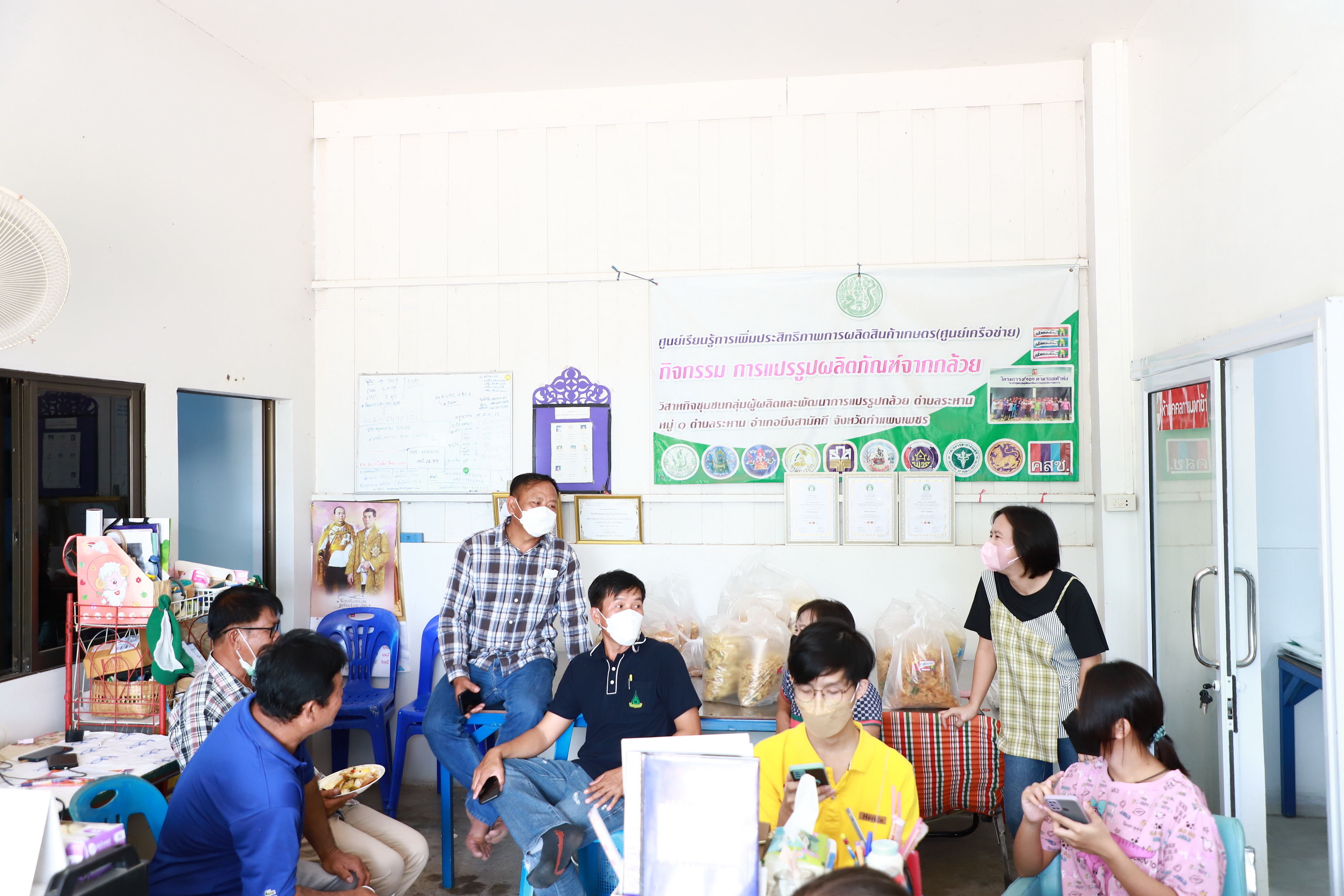 เมื่อวันที่ 25 มิถุนายน 2565 คณะวิทยาศาสตร์และเทคโนโลยี มหาวิทยาลัยราชภัฏกำแพงเพชร ผู้ช่วยศาสตราจารย์ราตรี โพธิ์ระวัช รองคณบดีฝ่ายบริการวิชาการและกิจการพิเศษ ลงพื้นที่ติดตามการให้บริการวิชาการและยกระดับผลิตภัณฑ์ชุมชน ของกลุ่มวิสาหกิจชุมชนกล้วยน้ำหว้าแปลงใหญ่ ตำบลระหาน อำเภอบึงสามัคคี จังหวัดกำแพงเพชร ของผู้ช่วยศาสตราจารย์ ดร.แดนชัย เครื่องเงินและคณะ โดยนำเสนอผลการประเมินอายุการเก็บรักษาของผลิตภัณฑ์กล้วยน้ำว้าฉาบรสดั้งเดิม (ไม่ใส่น้ำตาลและเกลือ) และกล้วยน้ำว้าฉาบรสบาร์บีคิว เพื่อนำข้อมูลอายุการเก็บรักษาของกล้วยฉาบไปใช้ประโยชน์ ในแง่การจัดจำหน่าย จำนวนการผลิต การจัดการวัตถุดิบ การวางแผนการผลิต และการพัฒนาบรรจุภัณฑ์