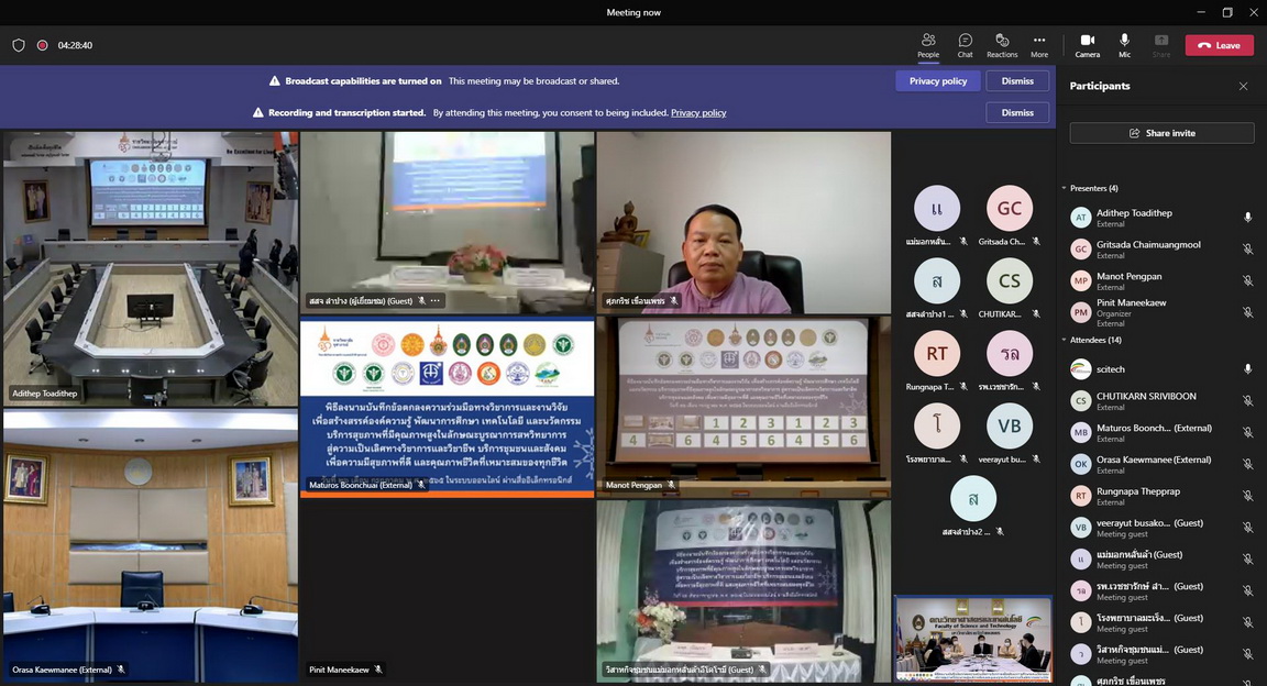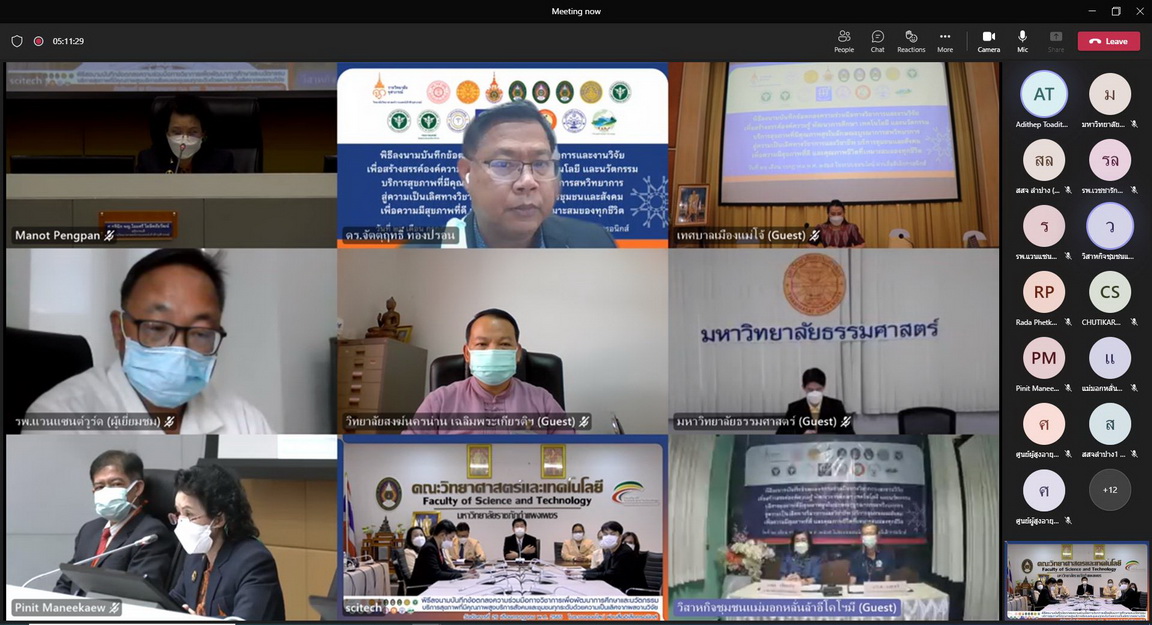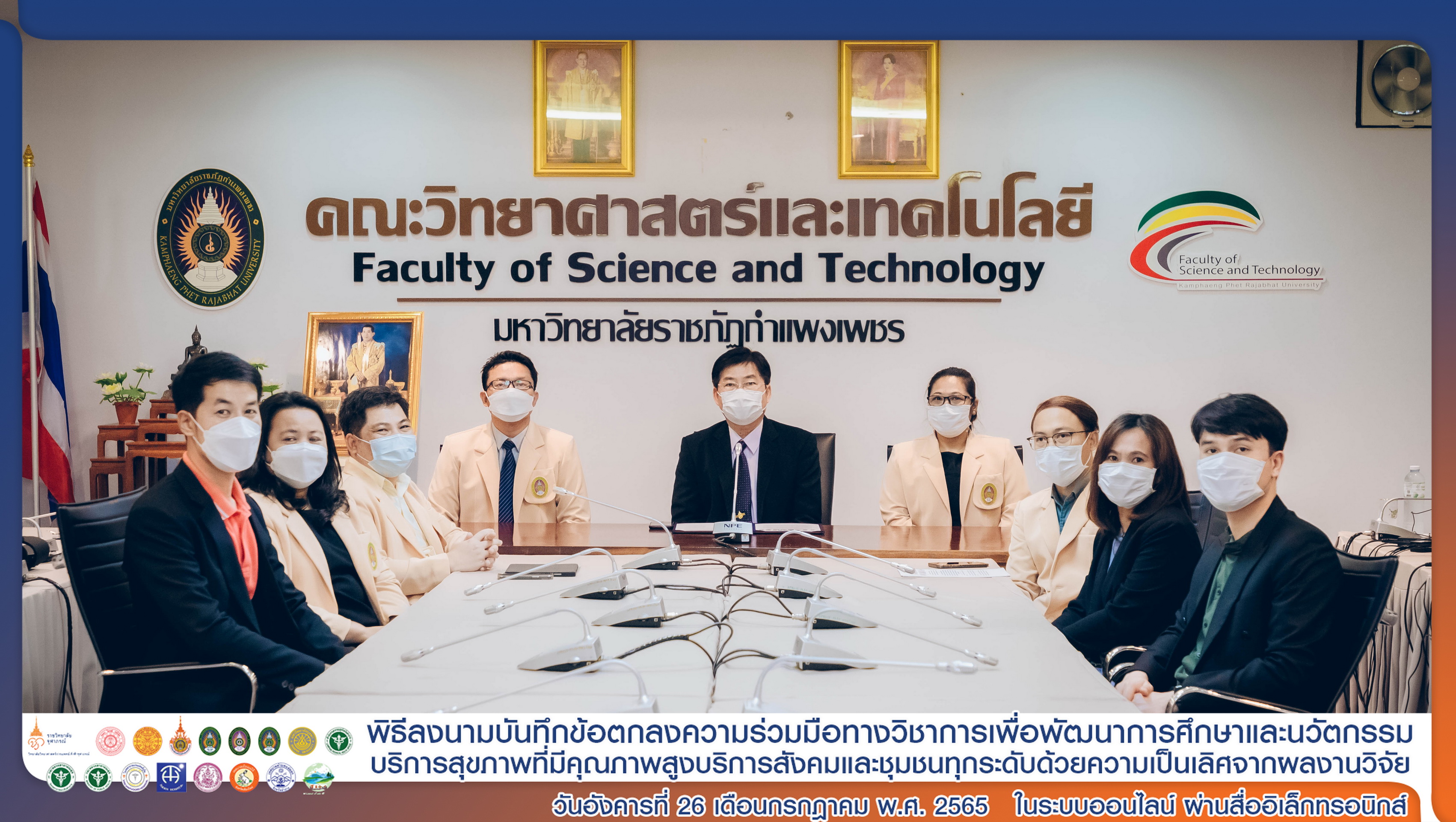 รองศาสตราจารย์วิสิฐ ธัญญะวัน รองอธิการบดีฝ่ายวิชาการ พร้อมด้วย รองศาสตราจารย์ ดร.ปรีชา ปัญญา คณบดีคณะวิทยาศาสตร์และเทคโนโลยี รวมทั้งผู้บริหาร นักวิจัย คณะวิทยาศาสตร์และเทคโนโลยีร่วมพิธีลงนามบันทึกข้อตกลงความร่วมมือทางวิชาการกับหน่วยงานจำนวนทั้งสิ้น 14 หน่วยงาน เพื่อพัฒนาการศึกษาและนวัตกรรมบริการสุขภาพที่มีคุณภาพสูงบริการสังคมและชุมชนทุกระดับด้วยความเป็นเลิศจากผลงานวิจัย ในวันอังคารที่ 26 เดือนกรกฎาคม พ.ศ. 2565 ผ่านระบบสื่ออิเล็กทรอนิกส์ออนไลน์