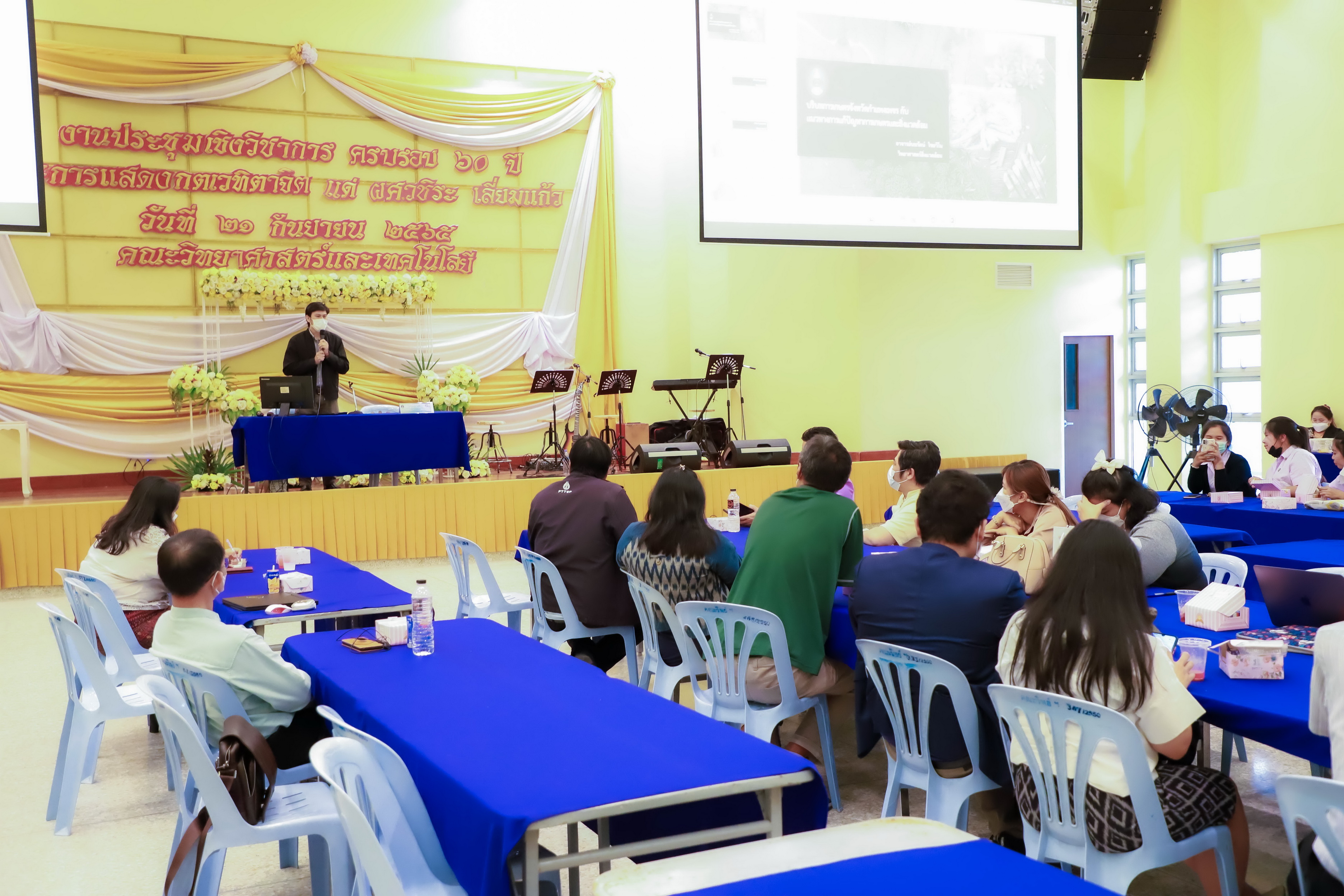 คณะวิทยาศาสตร์และเทคโนโลยี จัดกิจกรรมงานประชุมวิชาการกิจกรรมนำเสนอผลงานวิชาการและกิจกรรมการแสดงกตเวทิตาจิต ในวันที่ 21 กันยายน 2565 เวลา 12.00-17.00 น. ณ ห้องประชุมใหญ่ ชั้น 2 (48233) อาคารเรียนและปฏิบัติการทางวิทยาศาสตร์ โดยรองศาสตราจารย์ ดร.ปรีชา ปัญญา อาจารย์และบุคลากรคณะวิทยาศาสตร์และเทคโนโลยีเข้าร่วม