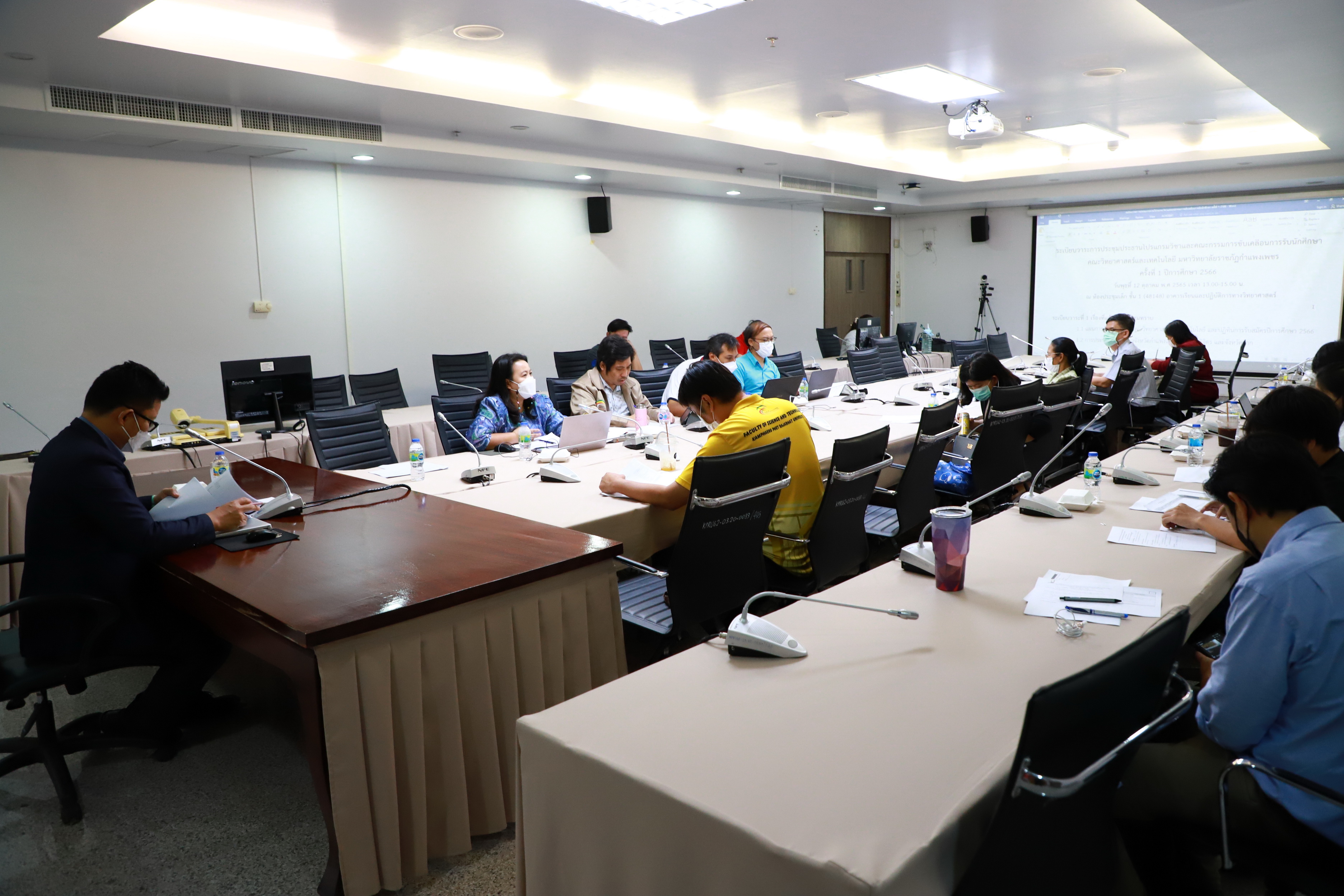 คณะวิทยาศาสตร์และเทคโนโลยี จัดประชุมประธานโปรแกรมวิชาและคณะกรรมการขับเคลื่อนการรับนักศึกษา ครั้งที่ 1 ปีการศึกษา 2566 โดยมีคณบดี รองคณบดี ประธานโปรแกรมวิชาและคณะกรรมการขับเคลื่อนการรับนักศึกษา เข้าร่วมประชุม เพื่อหารือและติดตามผลการดำเนินงาน รวมถึงการติดตามจำนวนนักศึกษาที่เข้าศึกษาต่อคณะวิทยาศาสตร์และเทคโนโลยีของแต่ละหลักสูตร เวลา 12 ตุลาคม 2565 ณ 13.00-15.00 น. ณ ห้องประชุมเล็ก ชั้น 1 (48148) อาคารเรียนและปฏิบัติการทางวิทยาศาสตร์ คณะวิทยาศาสตร์และเทคโนโลยี