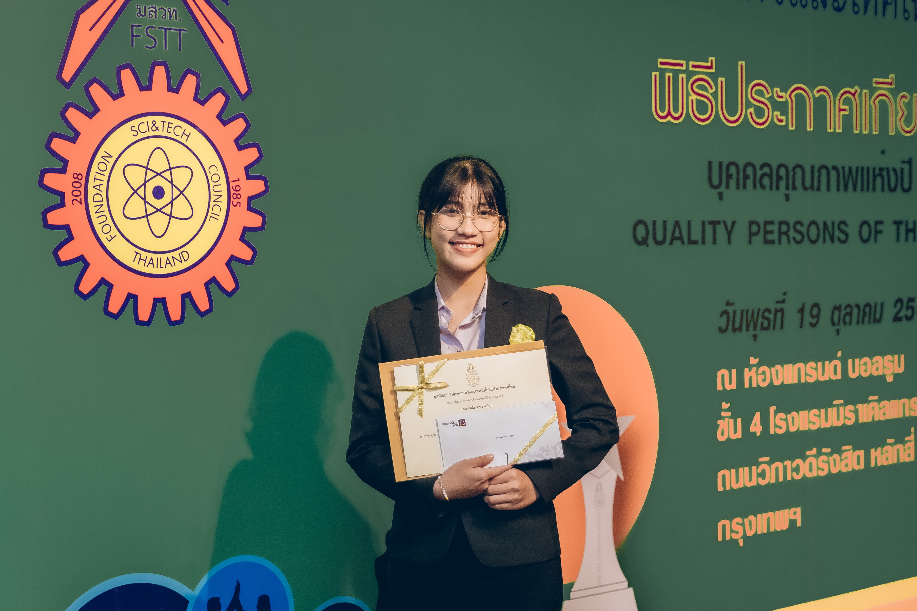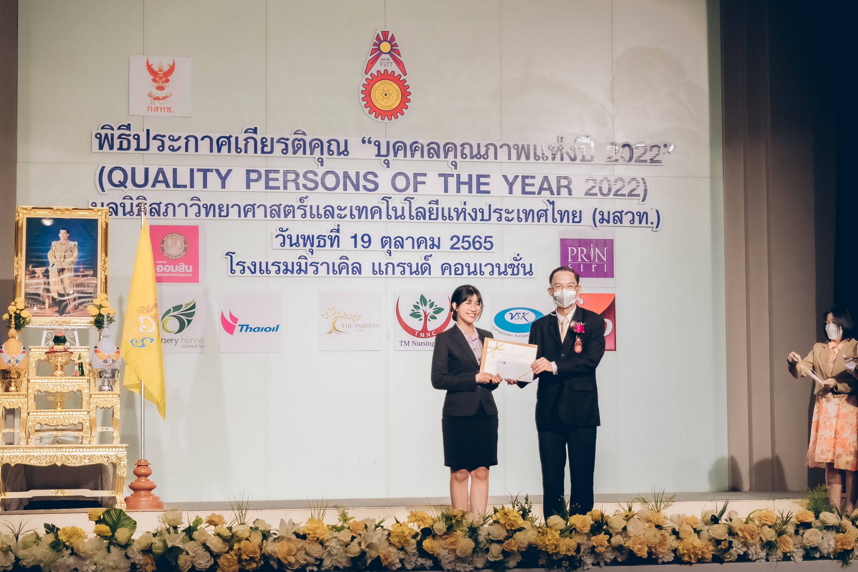 ผู้บริหาร บุคลากร และนักศึกษาเข้าร่วม พิธีประกาศเกียรติคุณ “บุคคลคุณภาพแห่งปี 2022” Qualty Persons Of The Year 2022 โดยนางสาวณิชากร ช่างย้อม นักศึกษาโปรแกรมวิชาเคมี อดีตนายกสโมสรนักศึกษาคณะวิทยาศาสตร์และเทคโนโลยี ประจำปี 2564 ได้ผ่านการพิจารณาคัดเลือกได้รับทุนเยาวชนคุณภาพแห่งปี 2022 จากมูลนิธิสภาวิทยาศาสตร์และเทคโนโลยีแห่งประเทศไทย จำนวน 10,000 บาทพร้อมโล่ประกาศเกียรติคุณ วันที่ 19 ตุลาคม 2565 ณ ห้องแกรนด์ บอลรูม ชั้น 4 โรงแรมมิราเคิลแกรนด์ คอนเวนชั่น กรุงเทพฯ โดยมีอาจารย์กีรศักดิ์ พะยะ รองคณบดีฝ่ายกิจการนักศึกษาและศิลปวัฒนธรรม และนายธาดา พรมทับ นักวิชาการศึกษา นำนักศึกษาเข้าร่วมรับรางวัลดังกล่าว