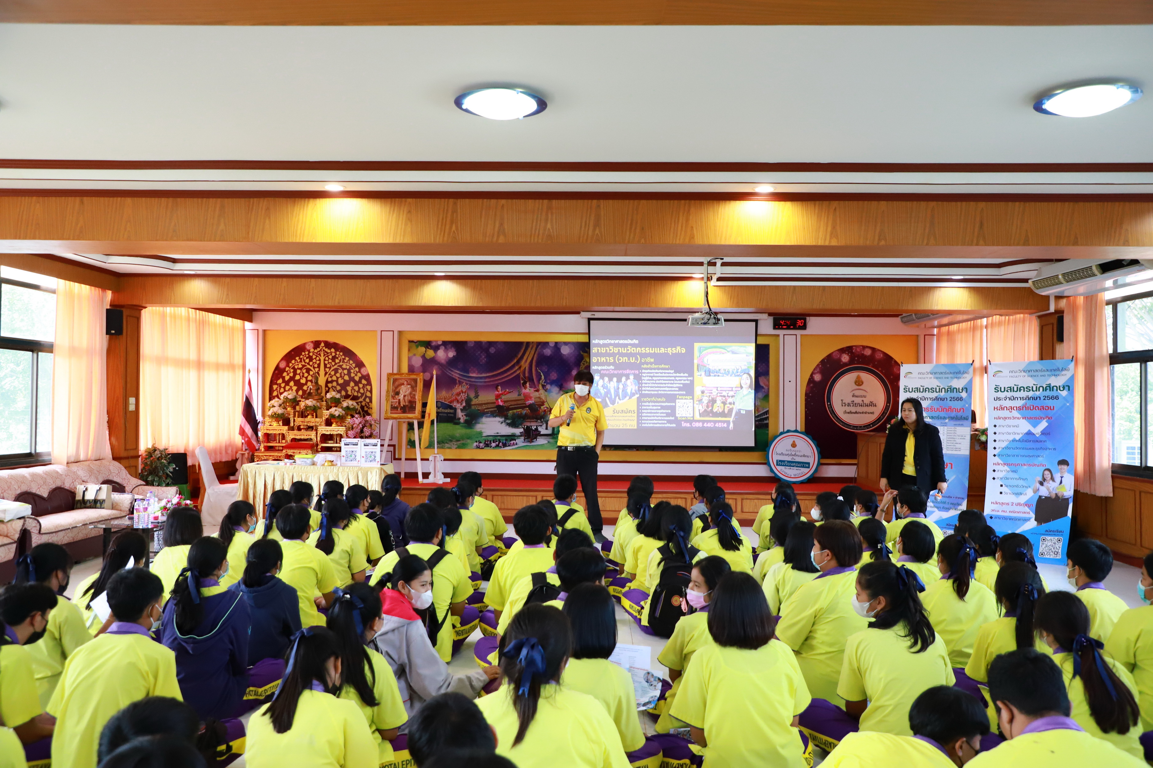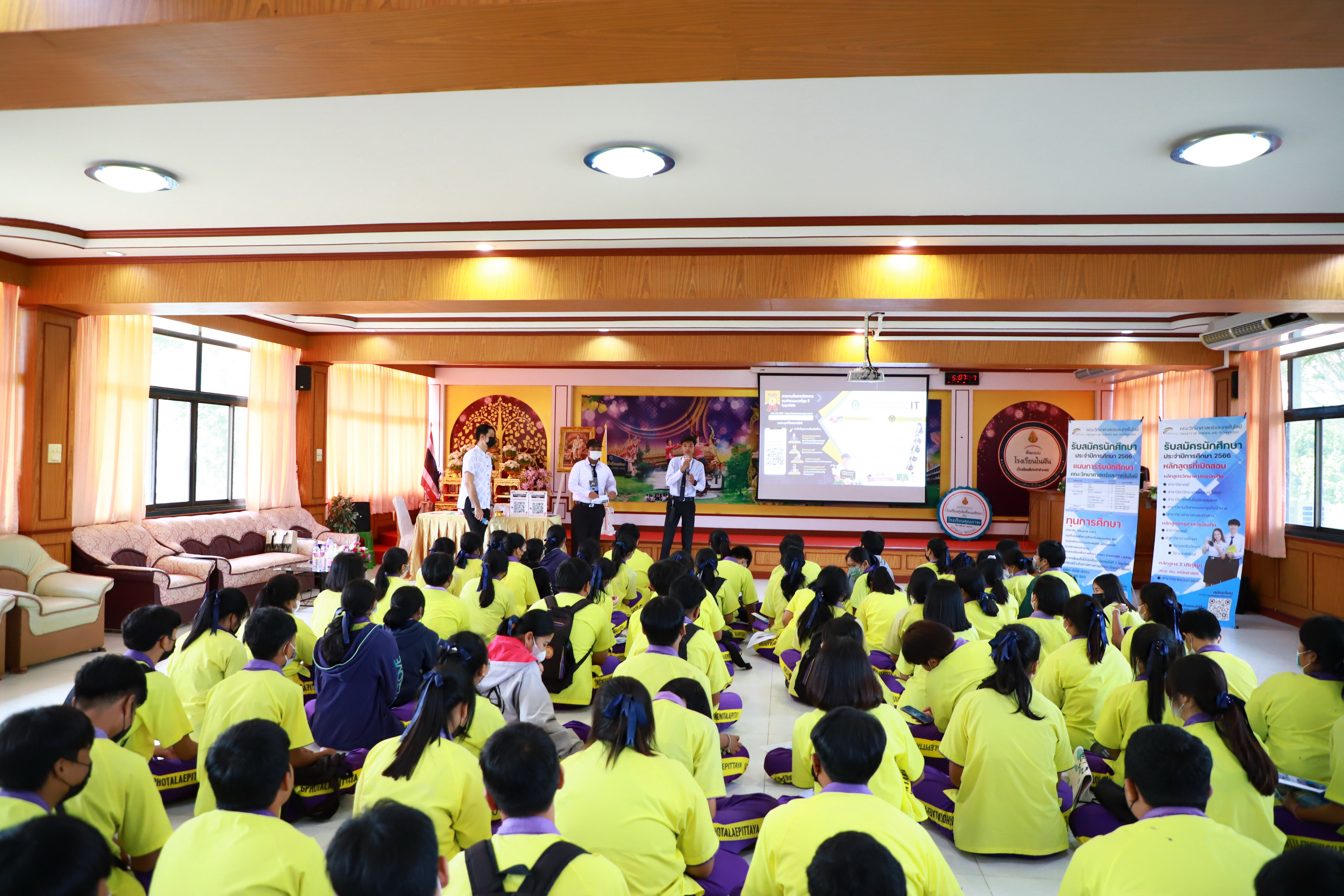 คณะวิทยาศาสตร์และเทคโนโลยี จัดกิจกรรมค่ายวิทยาศาสตร์สัญจร ปีการศึกษา 2565 ให้กับนักเรียนระดับชั้นมัธยมศึกษาตอนปลาย โรงเรียนทุ่งโพธิ์ทะเลพิทยา เพื่อเป็นการบริการวิชาการ ประชาสัมพันธ์หลักสูตรและรับสมัครนักศึกษา ในปีการศึกษา 2566 ในวันที่ 1 ธันวาคม 2022 เวลา 08.30-16.30 น. ณ โรงเรียนทุ่งโพธิ์ทะเลพิทยา วิทยากรโดยโปรแกรมวิชา"ฟิสิกส์ เรื่อง ดาราศาสตร์ โปรแกรมวิชาคณิตศาสตร์ เรื่อง การแก้ปัญหาพื้นที่ด้วย Goegabra* โปรแกรมวิชาเทคโนโลยีสารสนเทศ เรื่อง การสร้างสื่อสร้างสรรค์ด้วยเทคโนโลยีเสมือนจริง (AR)* โปรแกรมวิชานวัตกรรมและธุรกิจอาหาร เรื่อง การตรวจสอบคุณภาพอาหารอย่างง่าย"