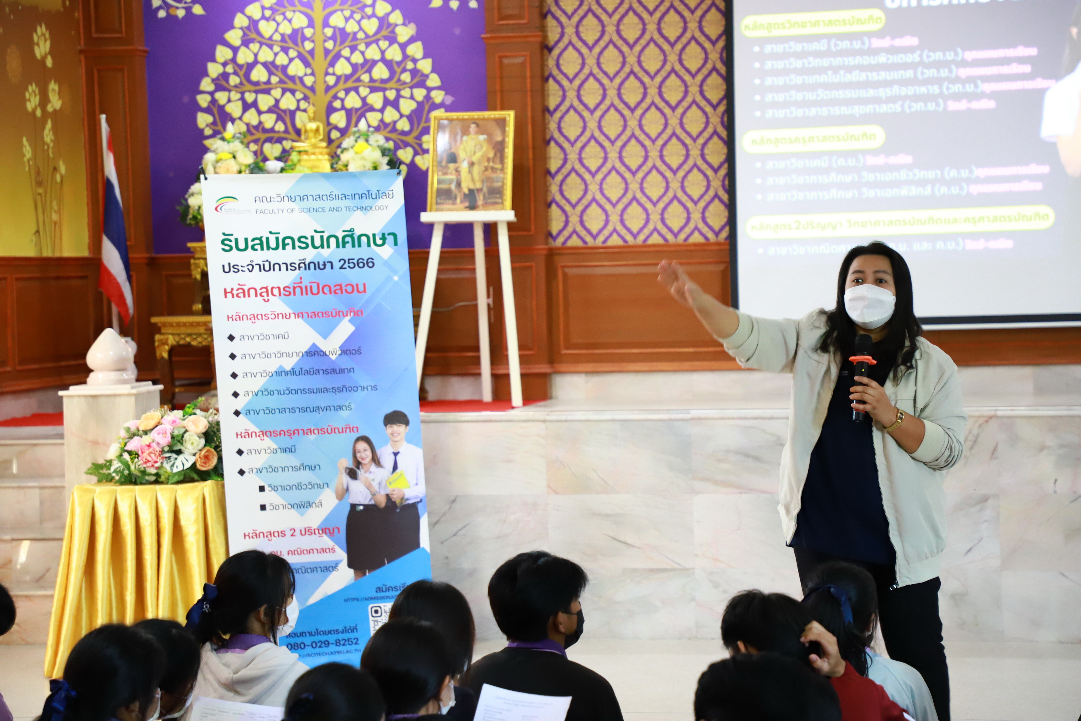 คณะวิทยาศาสตร์และเทคโนโลยี จัดกิจกรรมค่ายวิทยาศาสตร์สัญจร ปีการศึกษา 2565 ให้กับนักเรียนระดับชั้นมัธยมศึกษาตอนปลาย โรงเรียนคลองขลุงราษฎร์รังสรรค์ เพื่อเป็นการบริการวิชาการ ประชาสัมพันธ์หลักสูตรและรับสมัครนักศึกษา ในปีการศึกษา 2566 ในวันที่ 15 ธันวาคม 2022 เวลา 08.30-16.30 น. ณ โรงเรียนคลองขลุงราษฎร์รังสรรค์ วิทยากรโดยโปรแกรมวิชา"นวัตกรรมและธุรกิจอาหาร เรื่อง การตรวจสอบคุณภาพอาหารอย่างง่าย โปรแกรมวิชาวิทยาการคอมพิวเตอร์ เรื่อง Sticker Line Design* โปรแกรมวิชาเทคโนโลยีสารสนเทศ เรื่อง การสร้างสื่อสร้างสรรค์ด้วยเทคโนโลยีเสมือนจริง (AR)* โปรแกรมวิชาเคมี (ค.บ.) เรื่อง การสังเคราะห์สารหอมด้วยปฏิกิริยาเอสเทอริฟิเคชั่น"