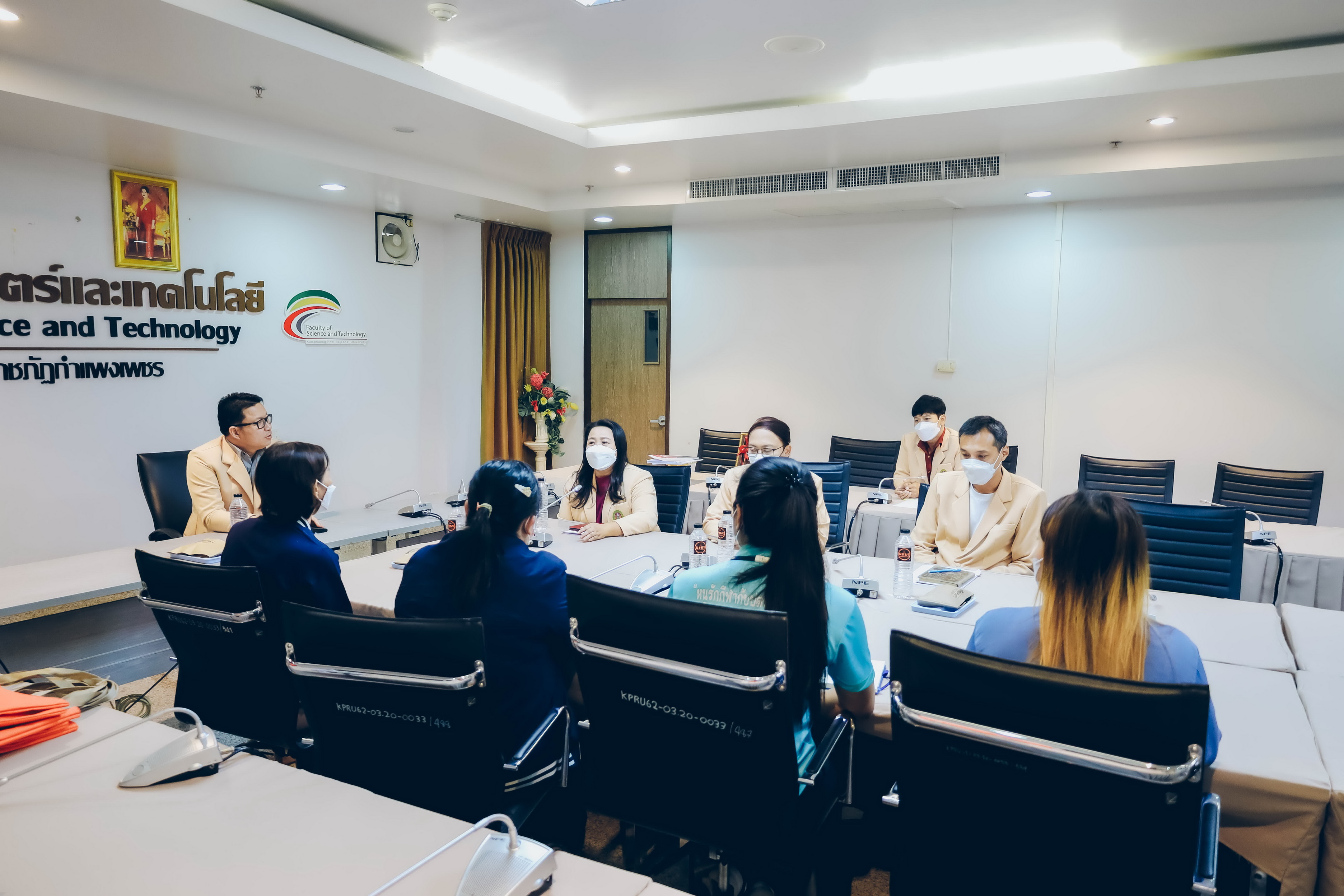 31 มกราคม 2566 รองศาสตราจารย์ ดร.ปรีชา ปัญญา คณบดีคณะวิทยาศาสตร์และเทคโนโลยี พร้อมรองคณบดีและผู้ช่วยคณบดี ต้อนรับคณะผู้แทนบริษัท ปตท.สผ. สยาม จำกัด โครงการผลิตบนฝั่ง (ประเทศไทย) เนื่องในโอกาสเข้าพบเพื่อสวัสดีปีใหม่ ปี 2566 พร้อมทั้งแลกเปลี่ยนและรับฟังแนวทางในการดำเนินงานเพื่อพัฒนาคณะฯ และหารือความร่วมมือของกิจกรรมที่จะเกิดขึ้นในปีนี้ โดยมีคุณอิงอร สร้อยสุวรรณ เจ้าหน้าที่องค์กรสัมพันธ์ บริษัท ปตท.สผ. สยาม จำกัด โครงการผลิตบนฝั่ง (ประเทศไทย) และคุณณธรนันทน์ แก้วแสนตอ ณ อาคารเรียนและปฏิบัติการทางวิทยาศาสตร์