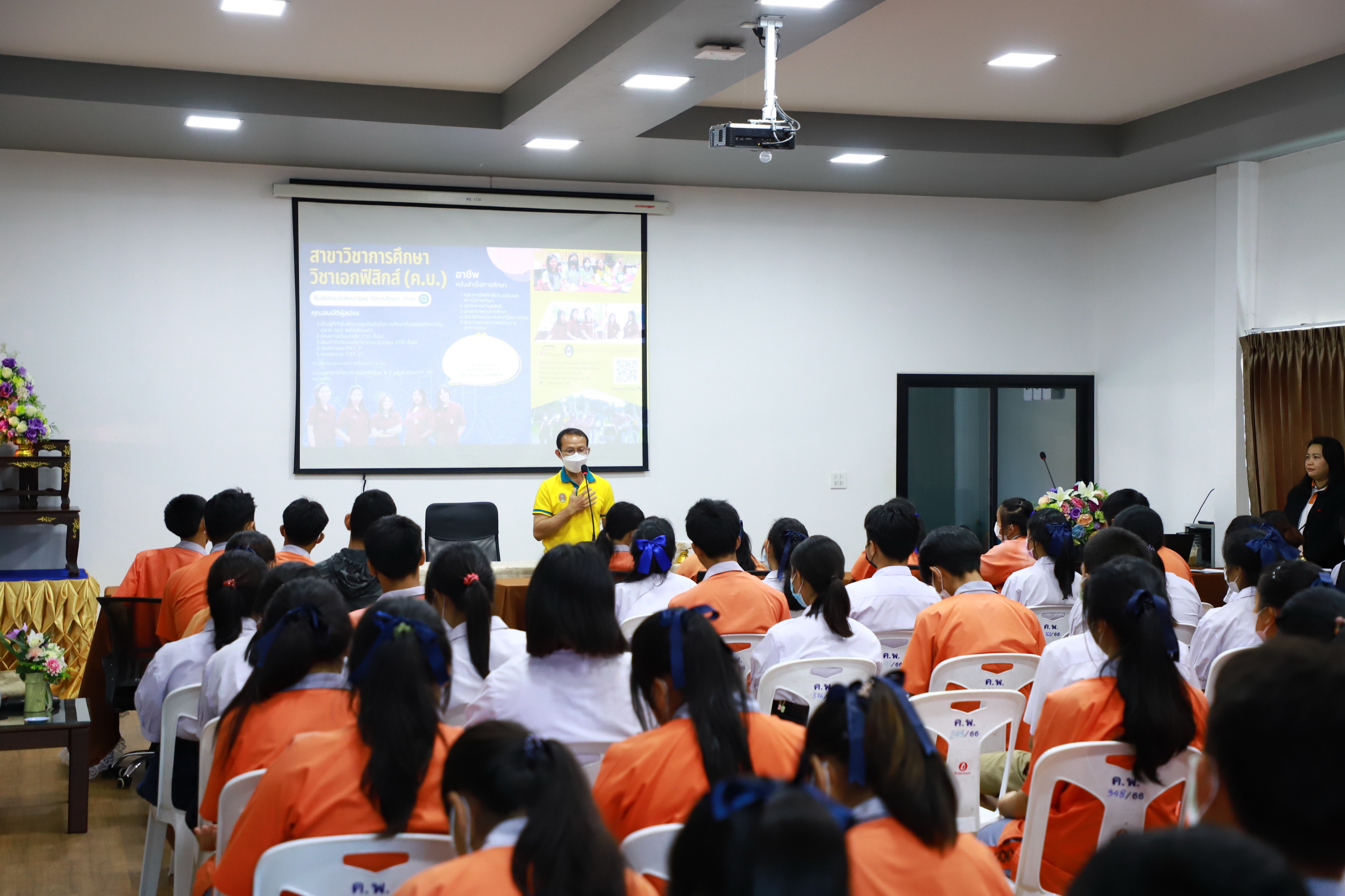 คณะวิทยาศาสตร์และเทคโนโลยี จัดกิจกรรมค่ายวิทยาศาสตร์สัญจร ปีการศึกษา 2565 ให้กับนักเรียนระดับชั้นมัธยมศึกษาตอนปลาย โรงเรียนคณฑีพิทยาคม เพื่อเป็นการบริการวิชาการ ประชาสัมพันธ์หลักสูตรและรับสมัครนักศึกษา ในปีการศึกษา 2566 ในวันที่ 7 กุมภาพันธ์ 2023 เวลา 08.30-16.30 น. ณ โรงเรียนคณฑีพิทยาคม วิทยากรโดยโปรแกรมวิชา"ฟิสิกส์ เรื่อง ดาราศาสตร์ โปรแกรมวิชาคณิตศาสตร์ เรื่อง การแก้ปัญหาพื้นที่ด้วย Goegabra* โปรแกรมวิชาวิทยาการคอมพิวเตอร์ เรื่อง Microbit Let's Code และการควบคุมหุ่นยนต์* โปรแกรมวิชานวัตกรรมและธุรกิจอาหาร เรื่อง การตรวจสอบคุณภาพอาหารอย่างง่าย"