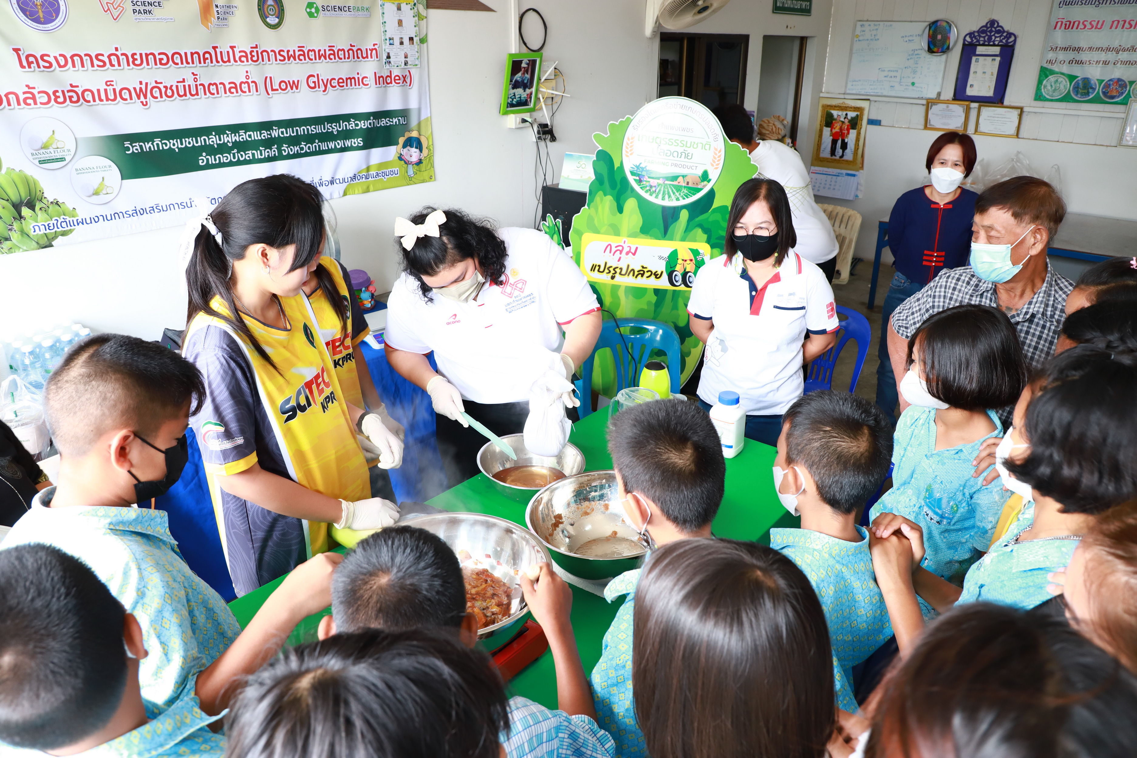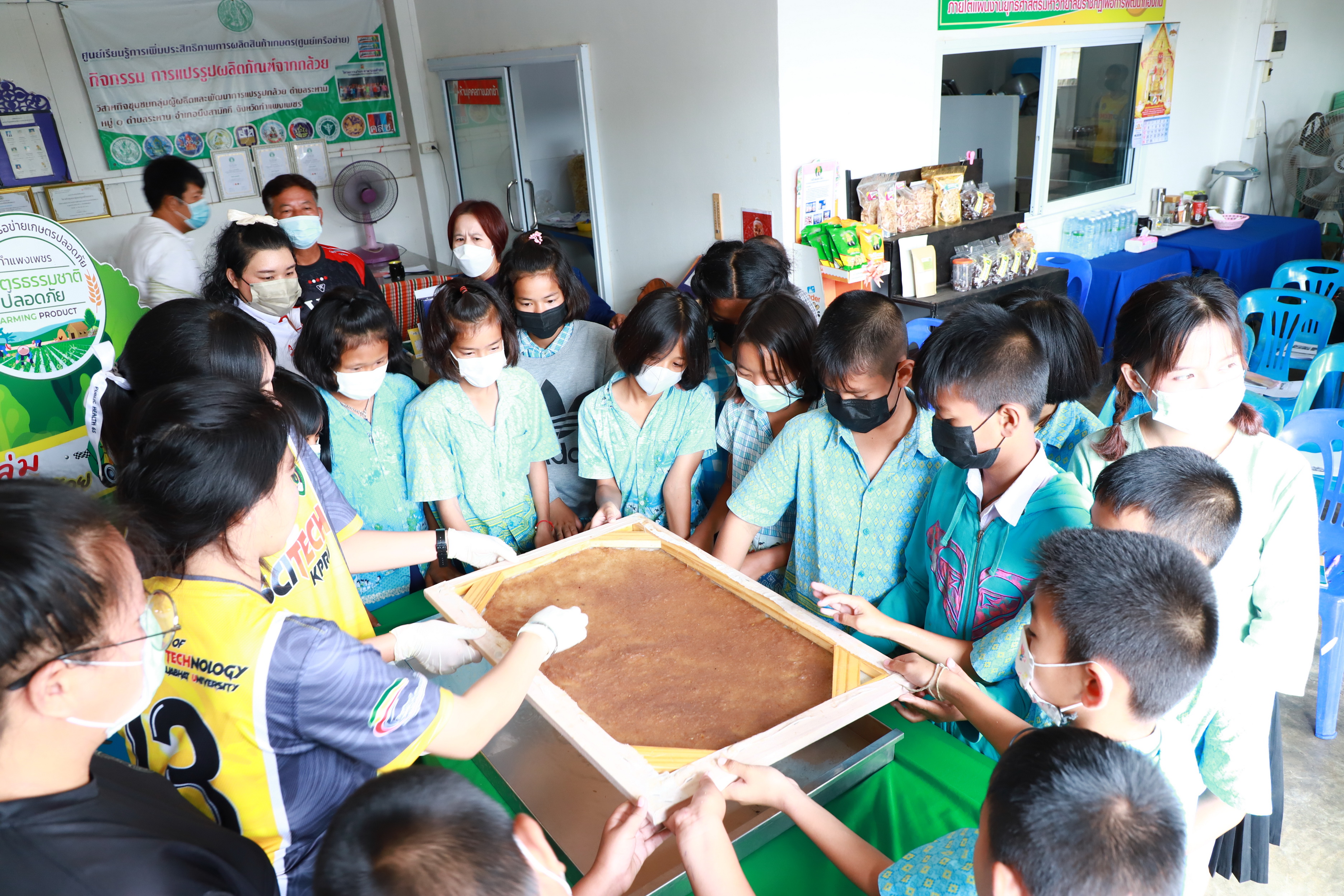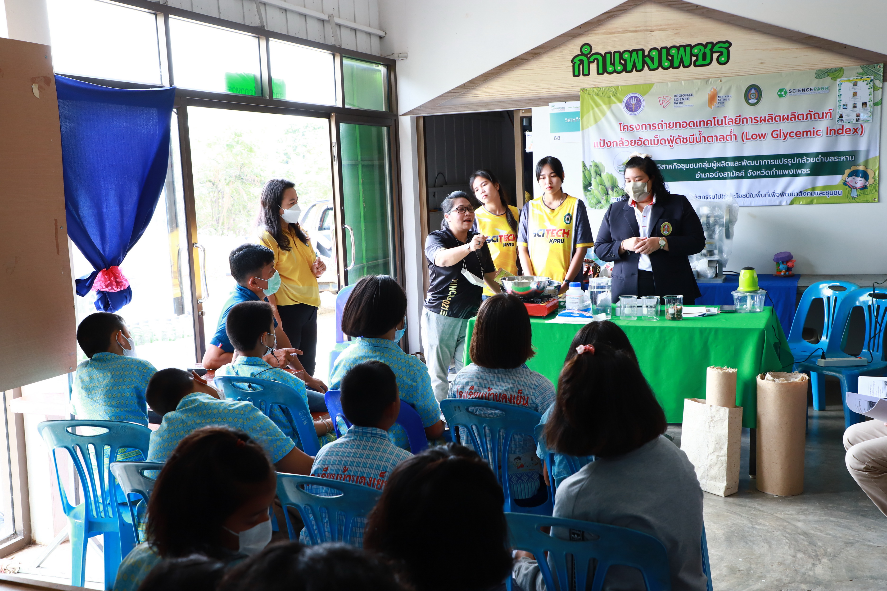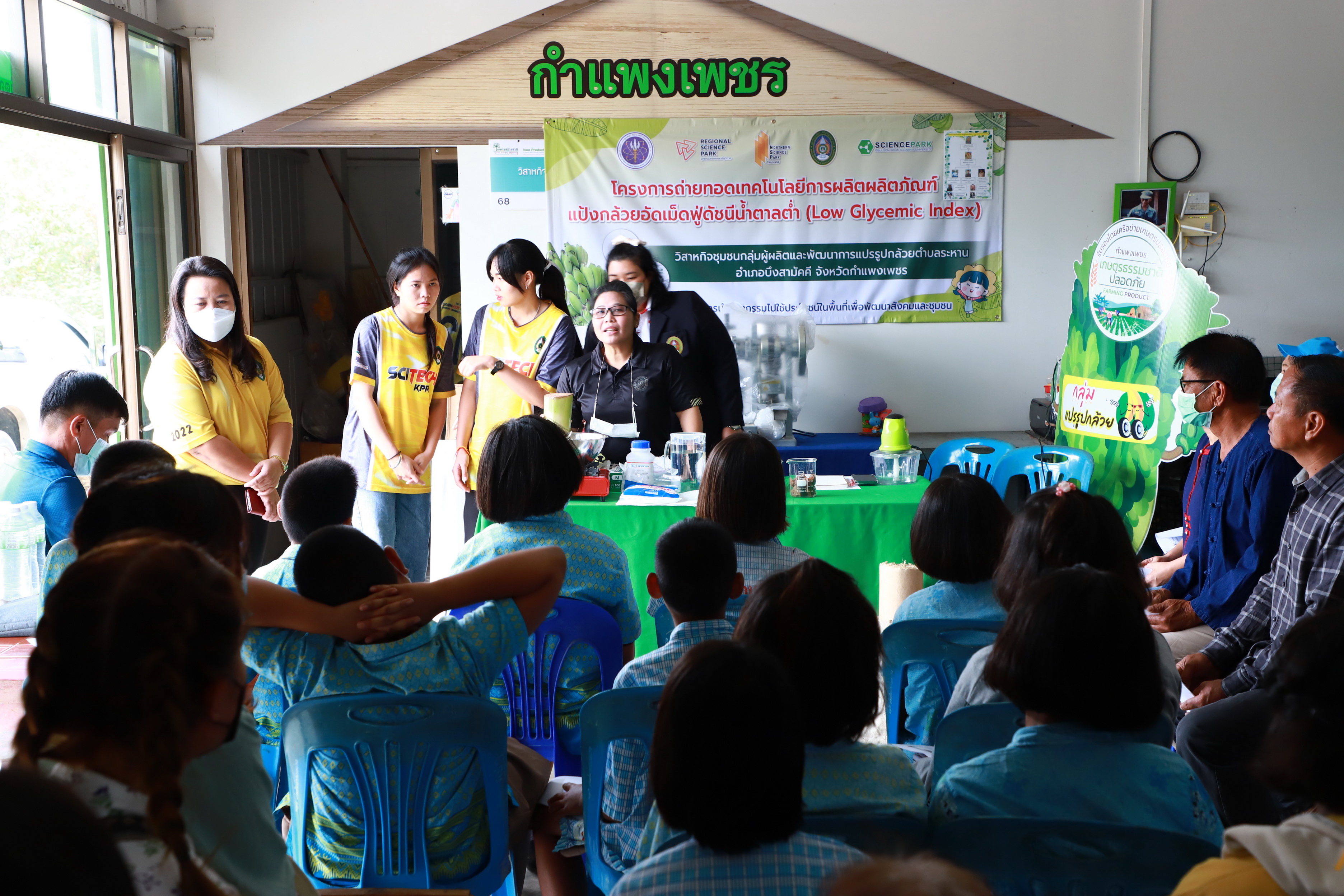 คณะวิทยาศาสตร์และเทคโนโลยี จัดกิจกรรมถ่ายทอดองค์ความรู้กระดาษกันนาจากกาบกล้วยไข่เพื่อใช้ในงานบรรจุภัณฑ์ ให้กับกลุ่มวิสาหกิจชุมชนการแปรรูปกล้วย ตำบลระหาน อำเภอสามัคคี จังหวัด กำแพงเพชร ในวันที่ 17 กุมภาพันธ์ 2566 เวลา 08.30-16.30 น. ณ กลุ่มวิสาหกิจชุมชนการแปรรูปกล้วย ตำบลระหาน อำเภอสามัคคี จังหวัด กำแพงเพชร วิทยากรโดยอาจารย์คณะวิทยาศาสตร์และเทคโนโลยี