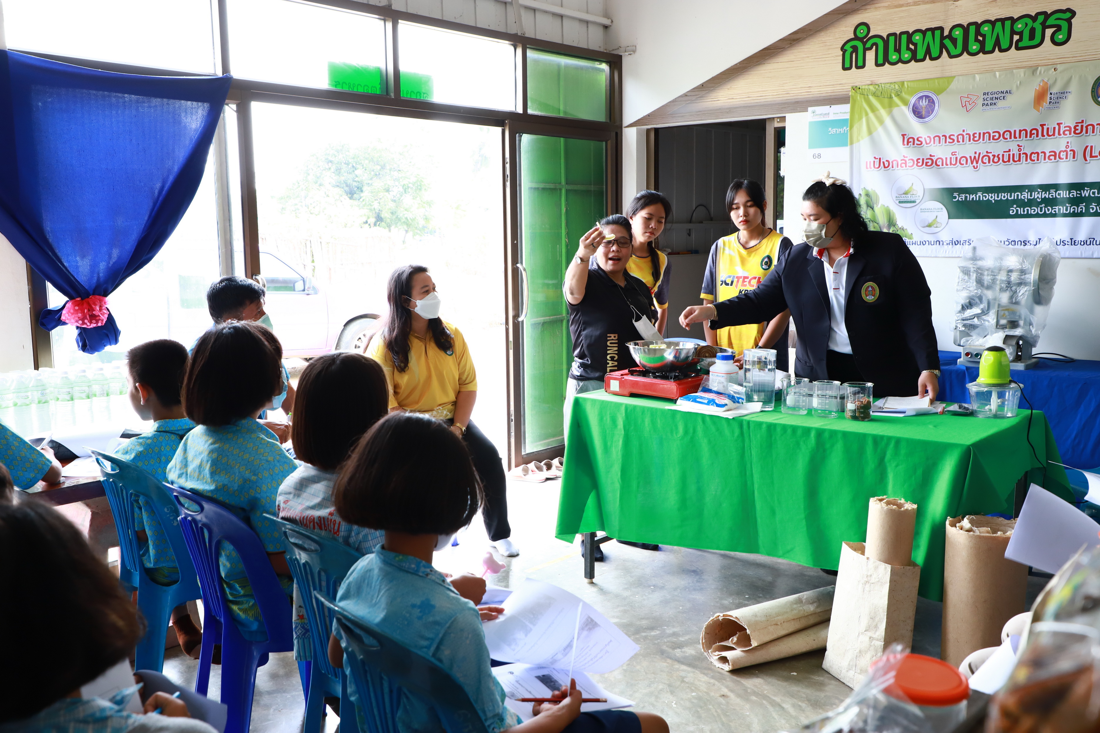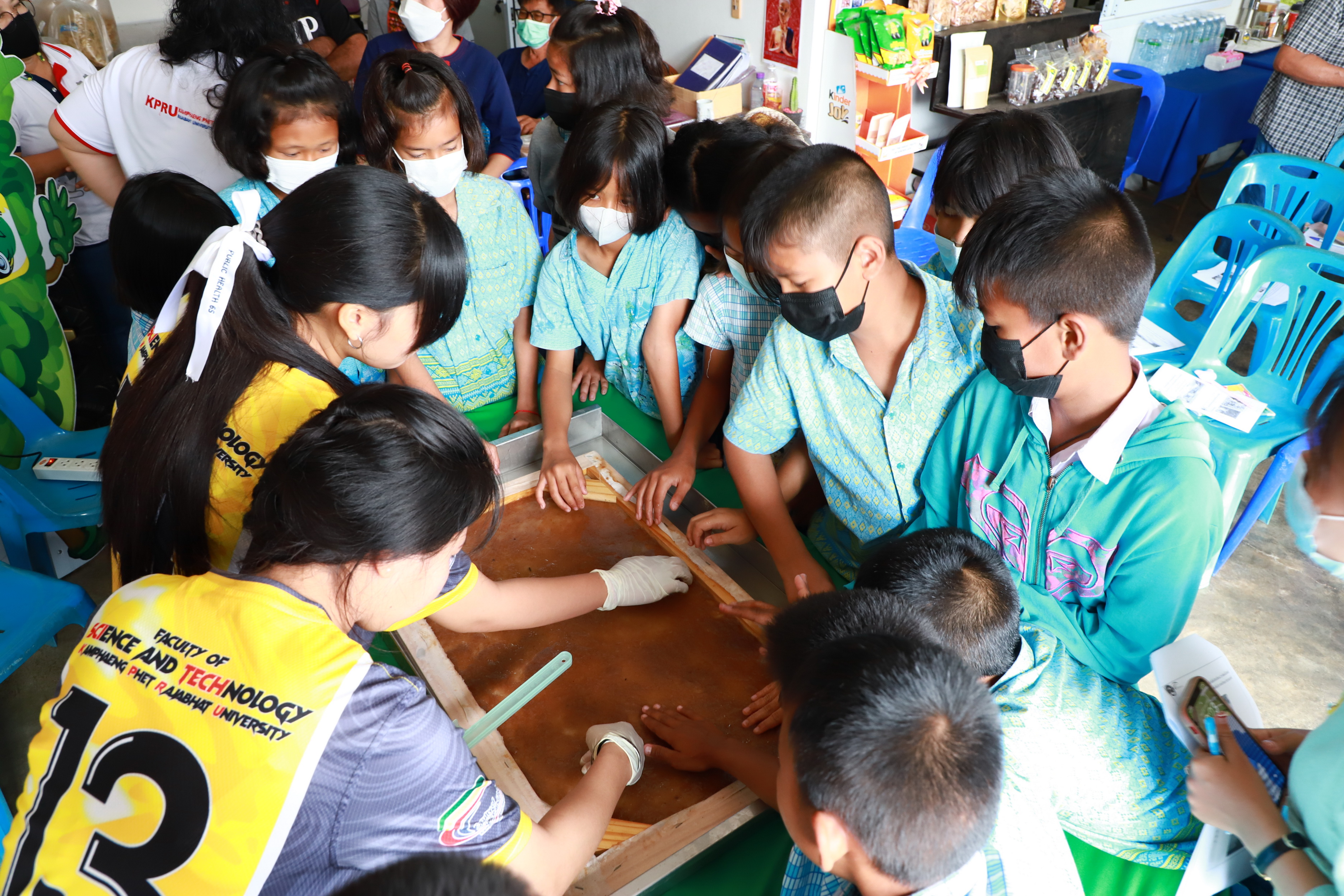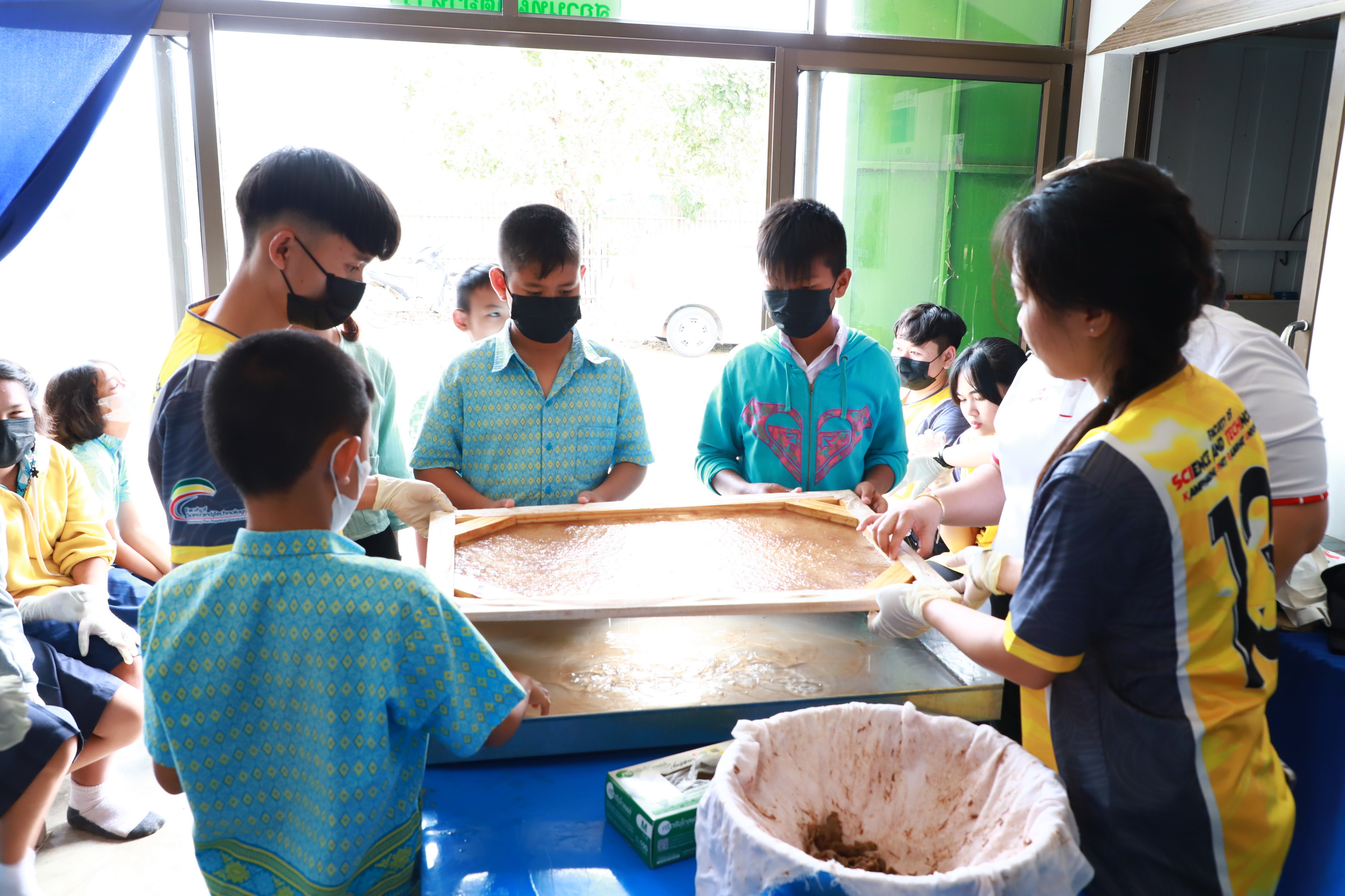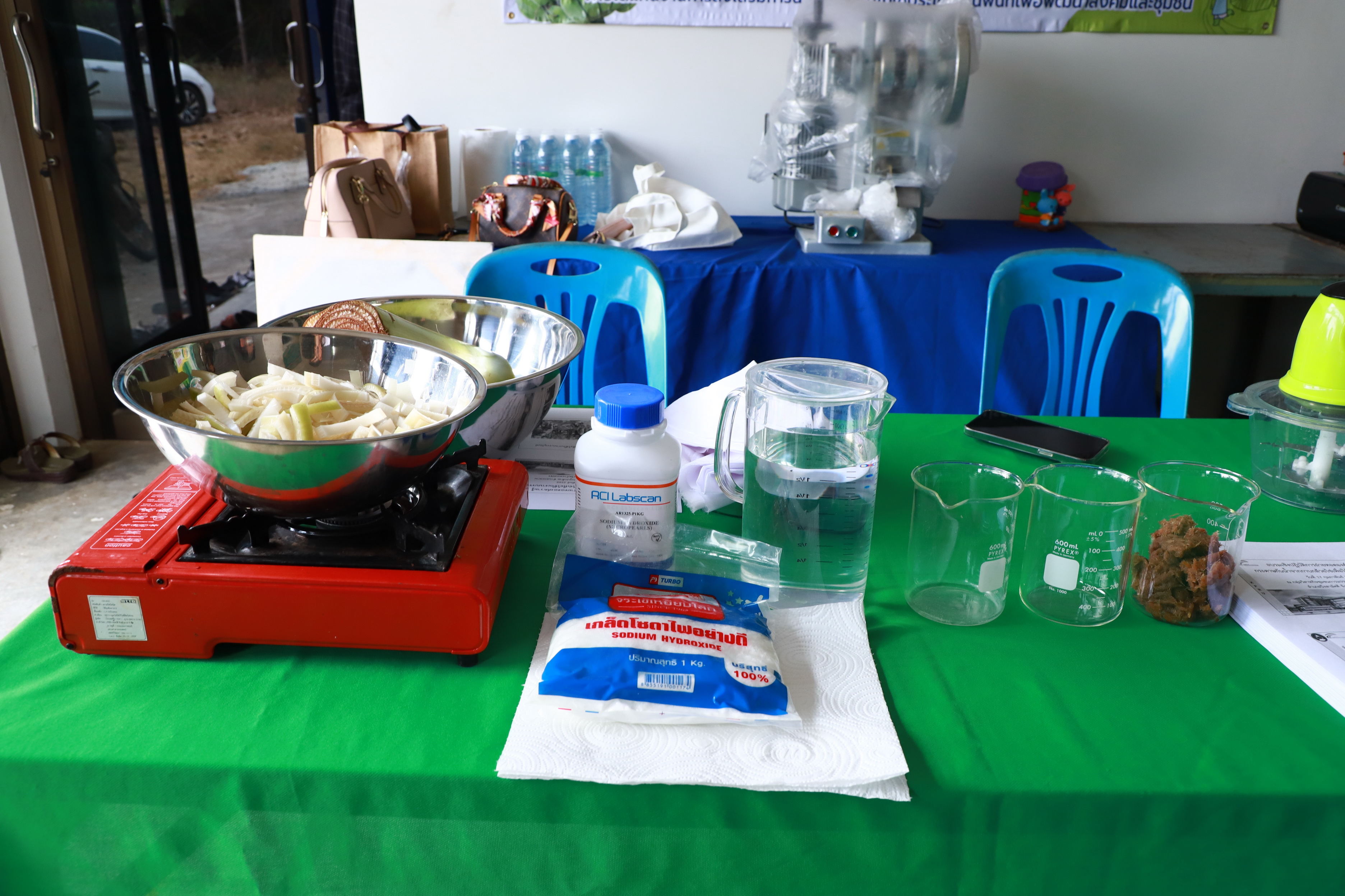 คณะวิทยาศาสตร์และเทคโนโลยี จัดกิจกรรมถ่ายทอดองค์ความรู้กระดาษกันนาจากกาบกล้วยไข่เพื่อใช้ในงานบรรจุภัณฑ์ ให้กับกลุ่มวิสาหกิจชุมชนการแปรรูปกล้วย ตำบลระหาน อำเภอสามัคคี จังหวัด กำแพงเพชร ในวันที่ 17 กุมภาพันธ์ 2566 เวลา 08.30-16.30 น. ณ กลุ่มวิสาหกิจชุมชนการแปรรูปกล้วย ตำบลระหาน อำเภอสามัคคี จังหวัด กำแพงเพชร วิทยากรโดยอาจารย์คณะวิทยาศาสตร์และเทคโนโลยี