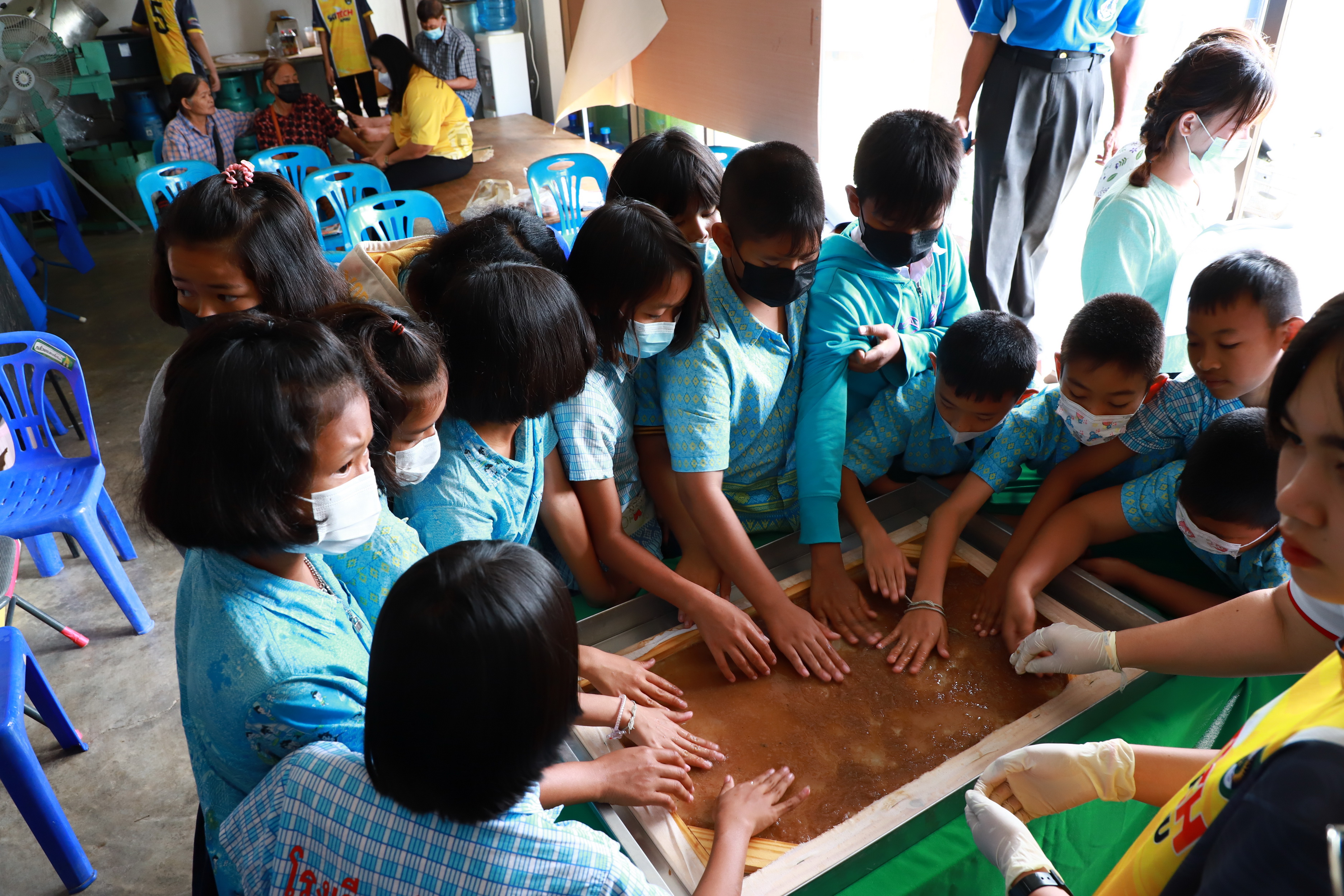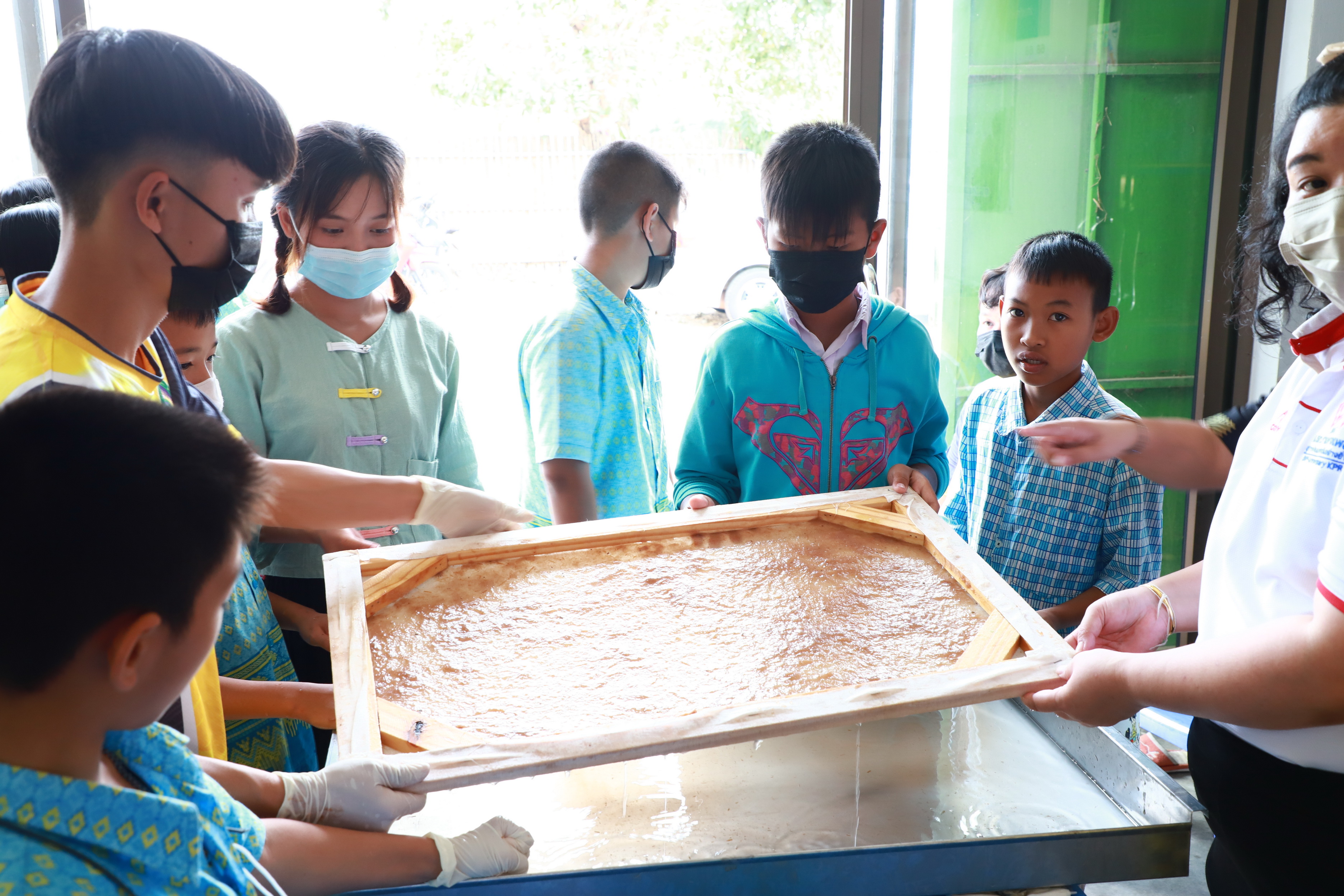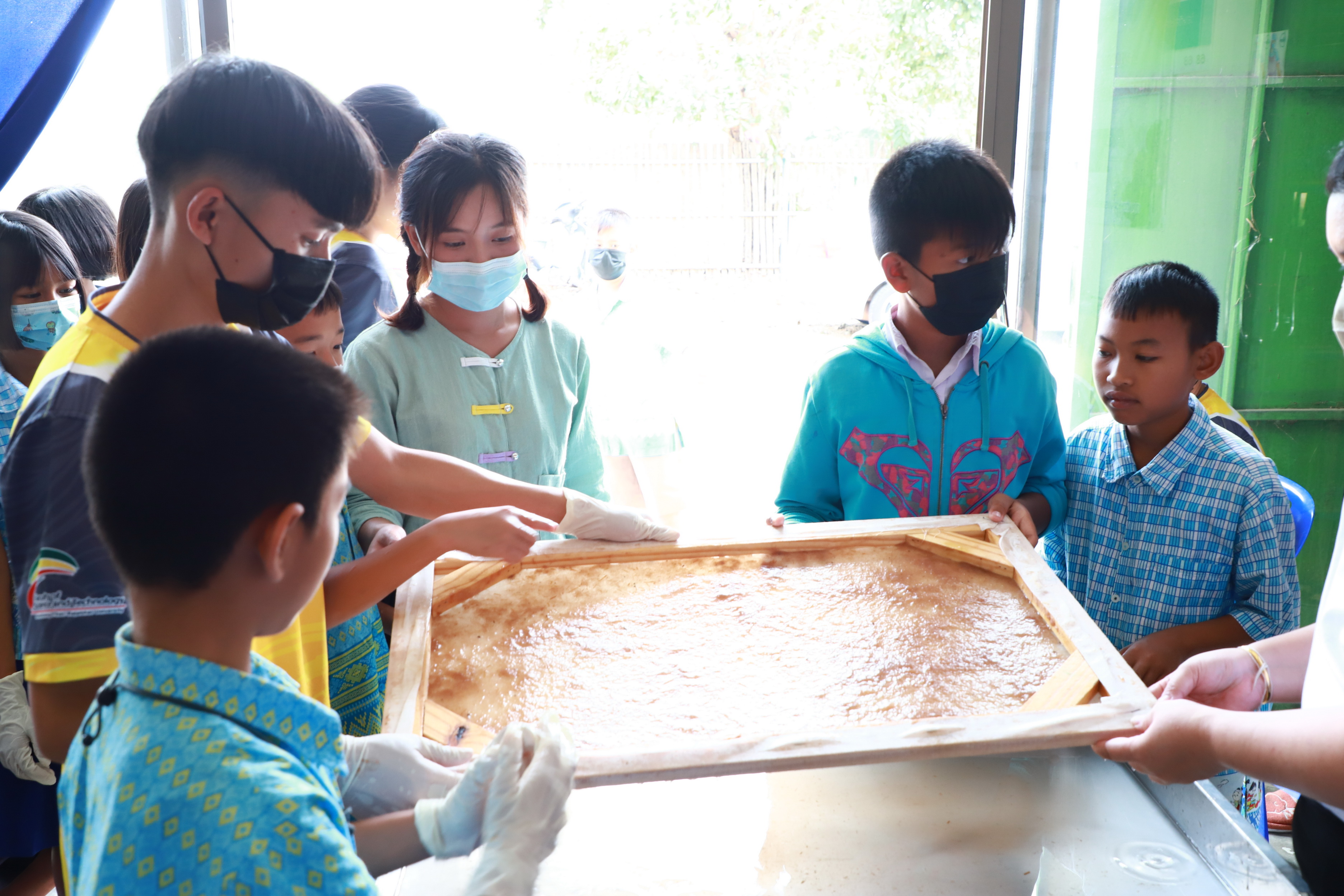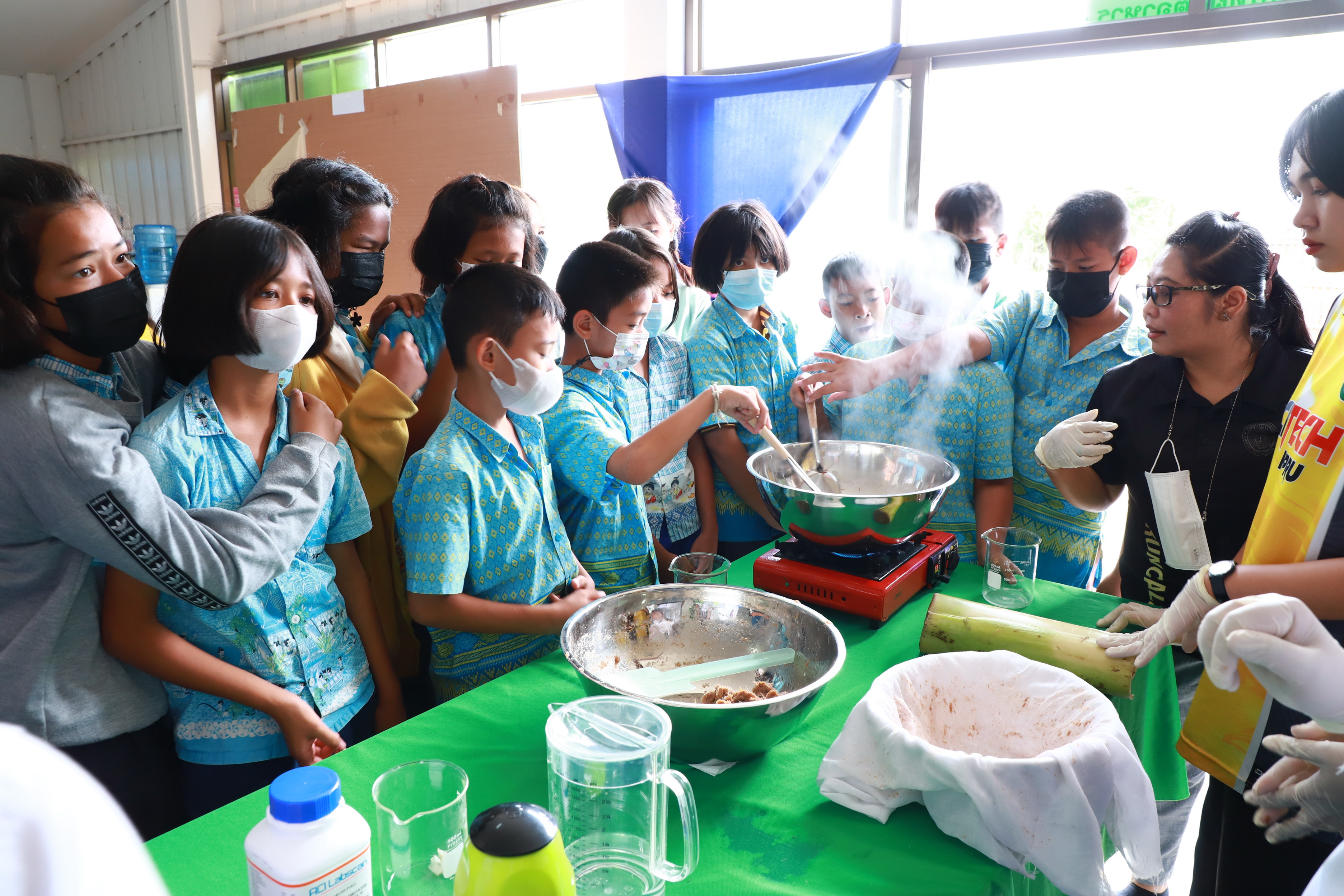 คณะวิทยาศาสตร์และเทคโนโลยี จัดกิจกรรมถ่ายทอดองค์ความรู้กระดาษกันนาจากกาบกล้วยไข่เพื่อใช้ในงานบรรจุภัณฑ์ ให้กับกลุ่มวิสาหกิจชุมชนการแปรรูปกล้วย ตำบลระหาน อำเภอสามัคคี จังหวัด กำแพงเพชร ในวันที่ 17 กุมภาพันธ์ 2566 เวลา 08.30-16.30 น. ณ กลุ่มวิสาหกิจชุมชนการแปรรูปกล้วย ตำบลระหาน อำเภอสามัคคี จังหวัด กำแพงเพชร วิทยากรโดยอาจารย์คณะวิทยาศาสตร์และเทคโนโลยี