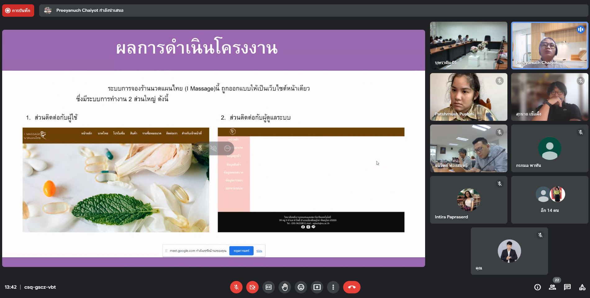 1.ว่าที่ร้อยตรีหญิงปรีญานุช ชัยยอด สาขาวิชา วิทยาการคอมพิวเตอร์ เรื่อง ระบบการจองร้านนวดแผนไทย (I Massage)