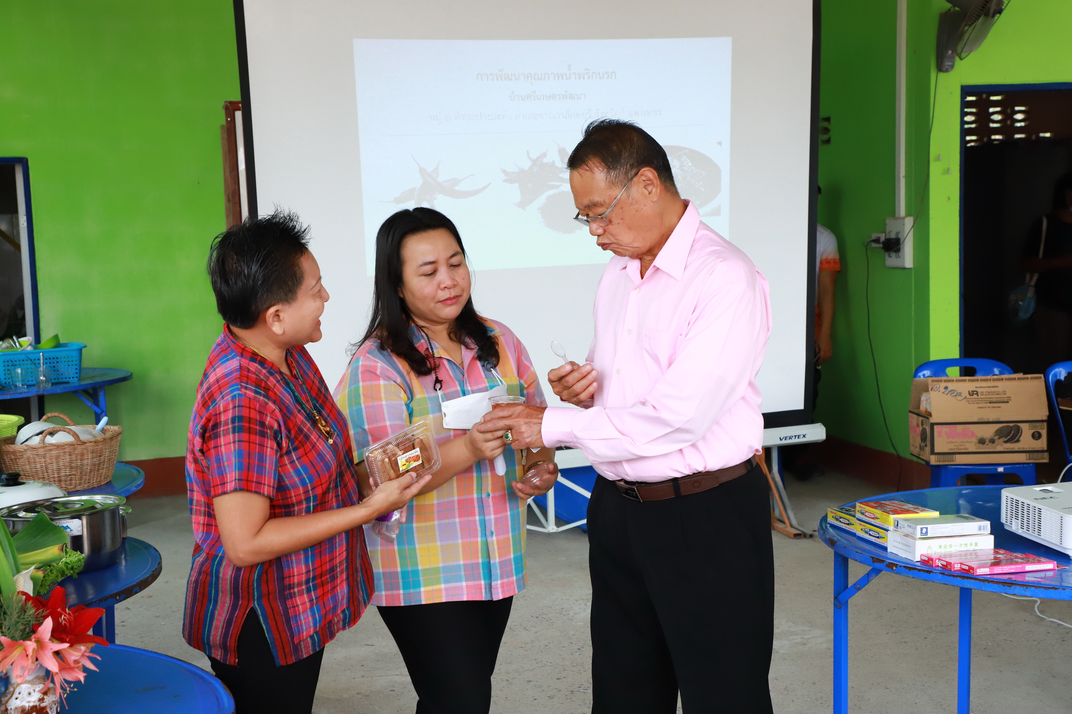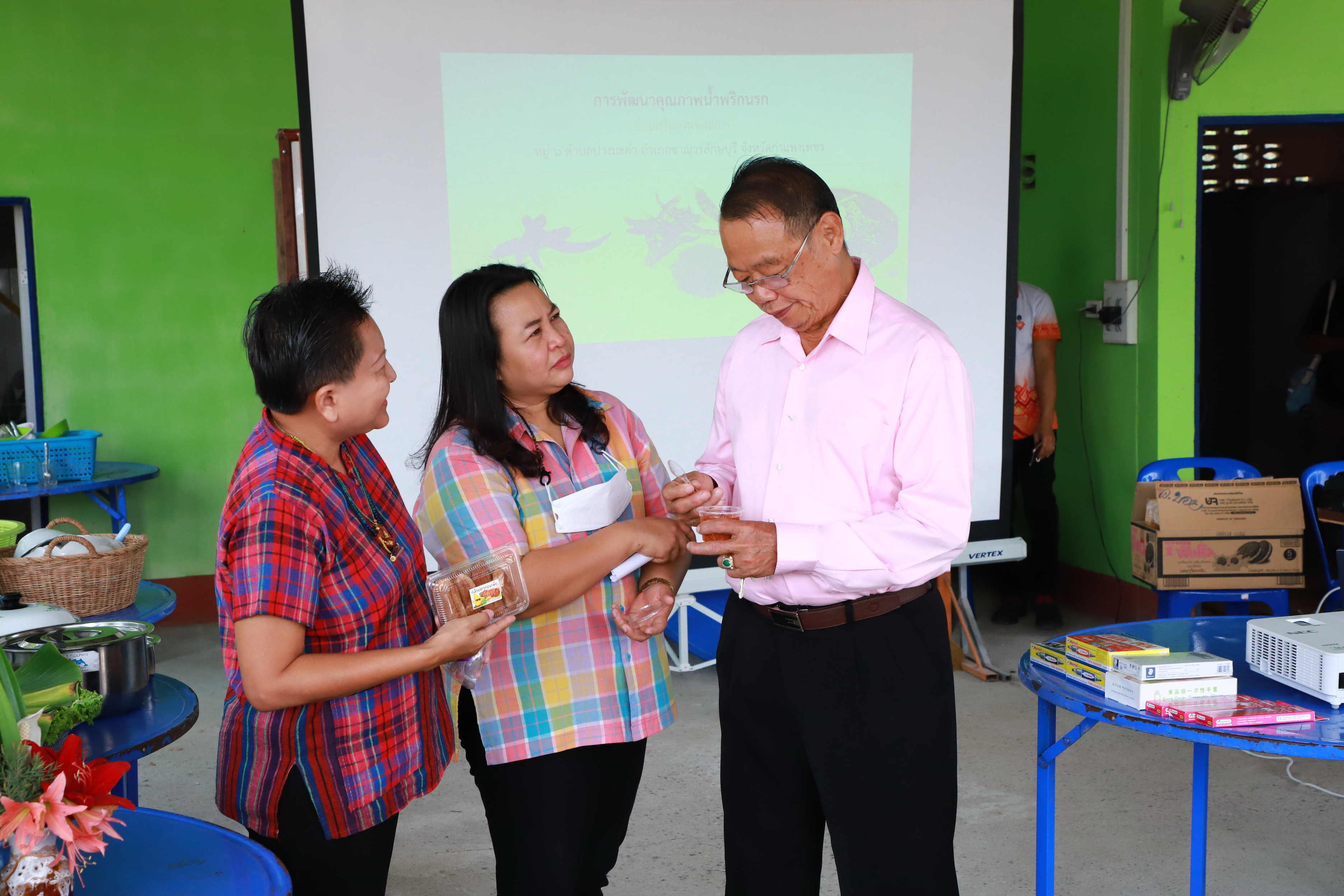 คณะวิทยาศาสตร์และเทคโนโลยี จัดอบรมเชิงปฏิบัติการ เรื่อง การพัฒนาบรรจุภัณฑ์น้ำพริกโบราณกลุ่มศรีเกษตรพัฒนา ให้กับประชาชนกลุ่มศรีเกษตรพัฒนา ตำบลปางมะค่า อำเภอขาณุวรลักษบุรี จังหวัดกกำแพงเพชร จำนวน 30 คน เพื่อศึกษาความต้องการและแนวทางการส่งเสริมการแก้ปัญหาของชุมชน พัฒนานวัตกรรม การตรวจสอบคุณภาพ และการศึกษาความเหมาะสมเพื่อแก้ปัญหาชุมชน ส่งเสริมการประกอบอาชีพและช่องทางการสร้างรายได้ชุมชน และติดตามการใช้ประโยชน์และจัดการความรู้การให้บริการวิชาการ ในวันที่ 28 มีนาคม 2566 เวลา 08.00-17.00 น. ณ บ้านศรีเกษตรพัฒนา หมู่ ๖ ต้าบลปางมะค่า อ้าเภอขาณุวรลักษบุรี จังหวัดก้าแพงเพชร วิทยากรโดยผศ.บุณยกฤต รัตนพันธุ์/รศ.วชิระ สิงห์คง