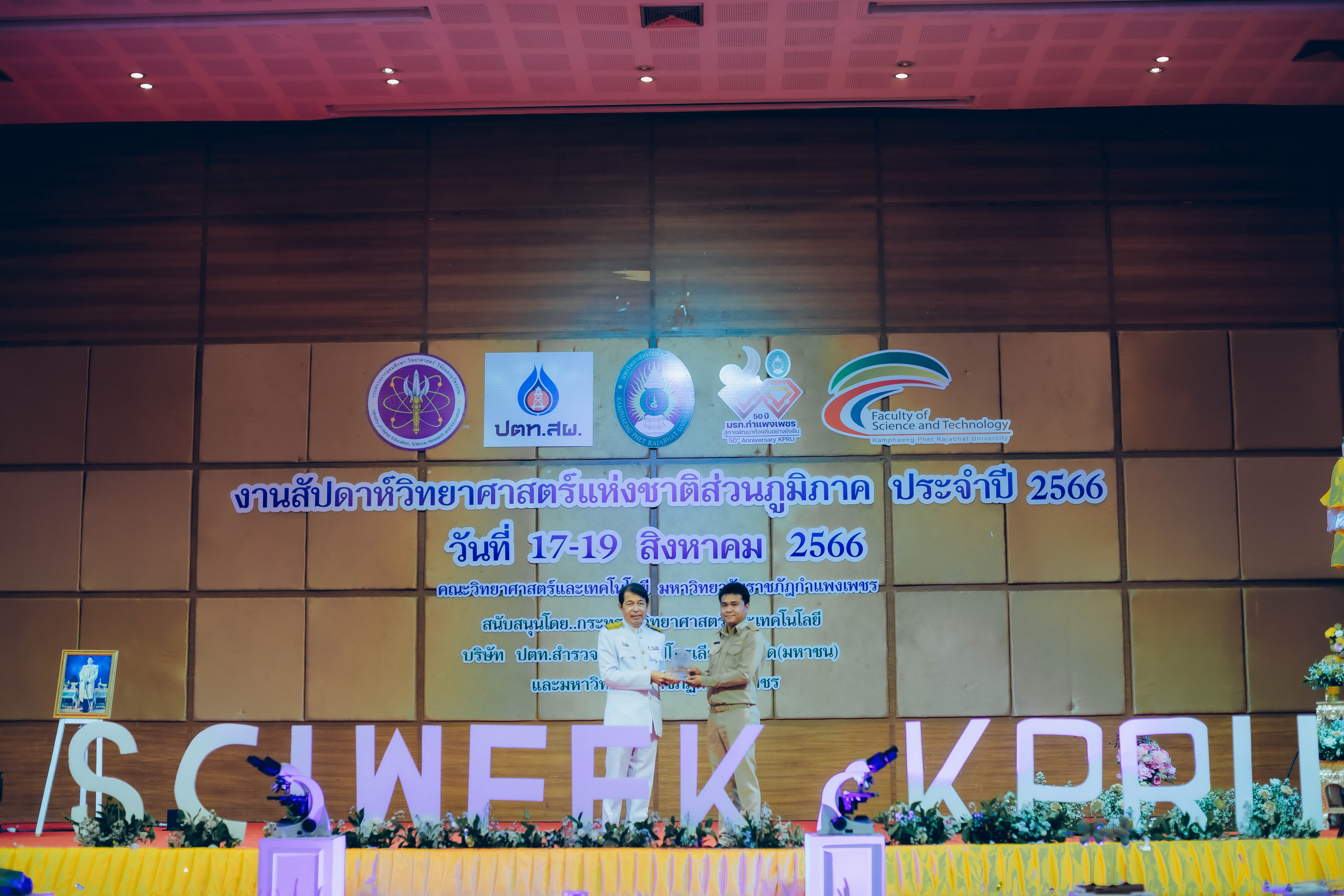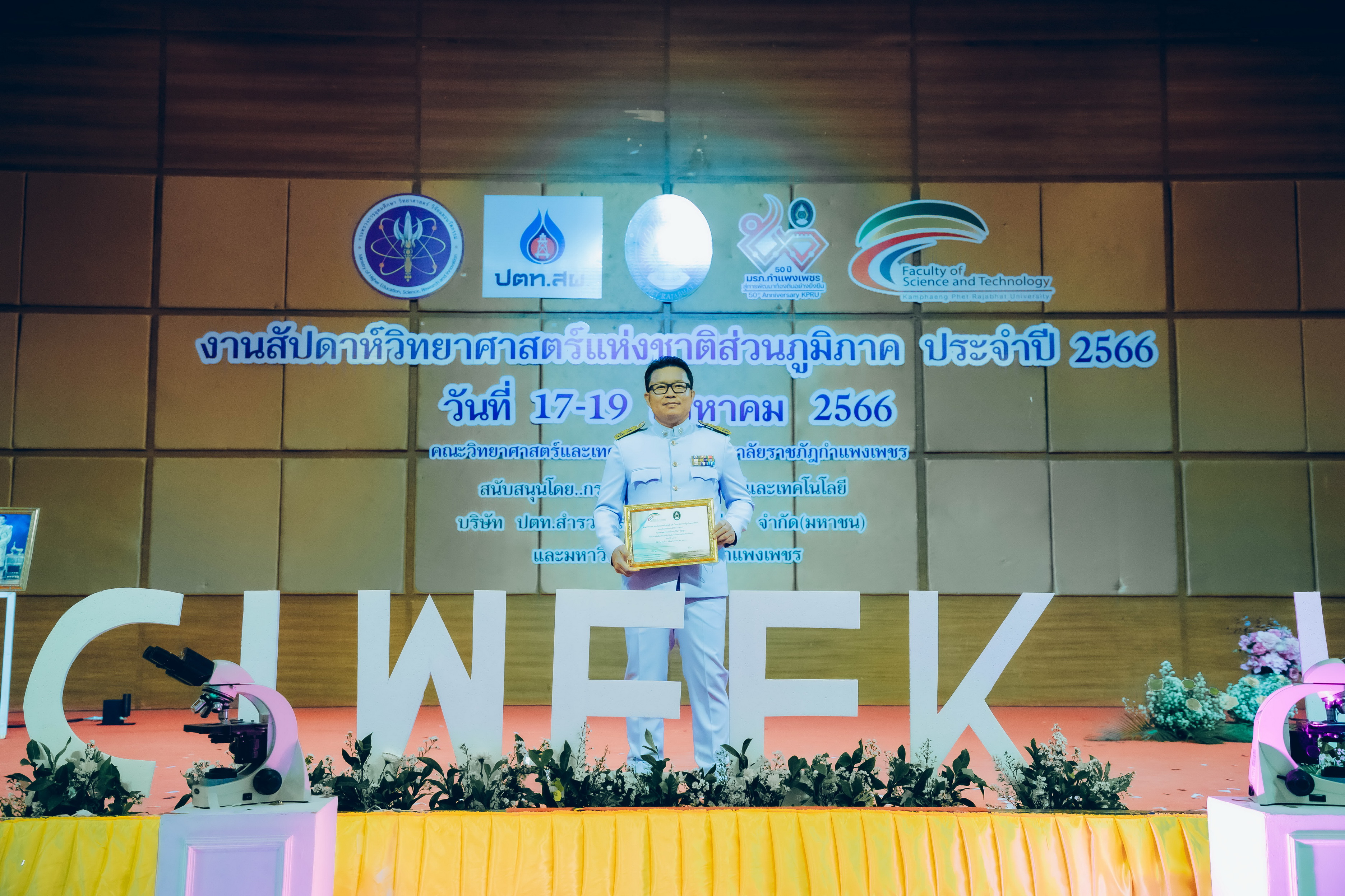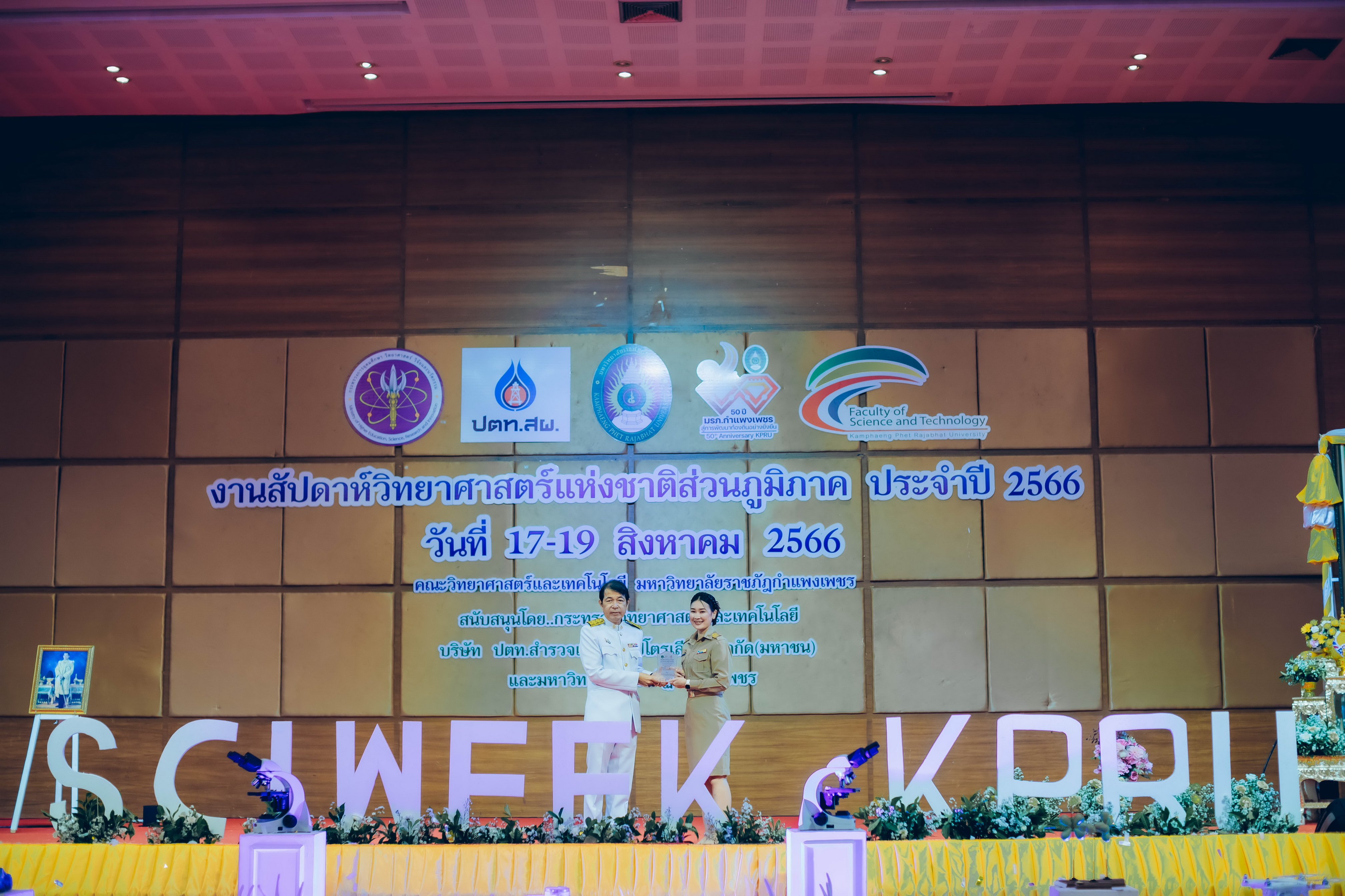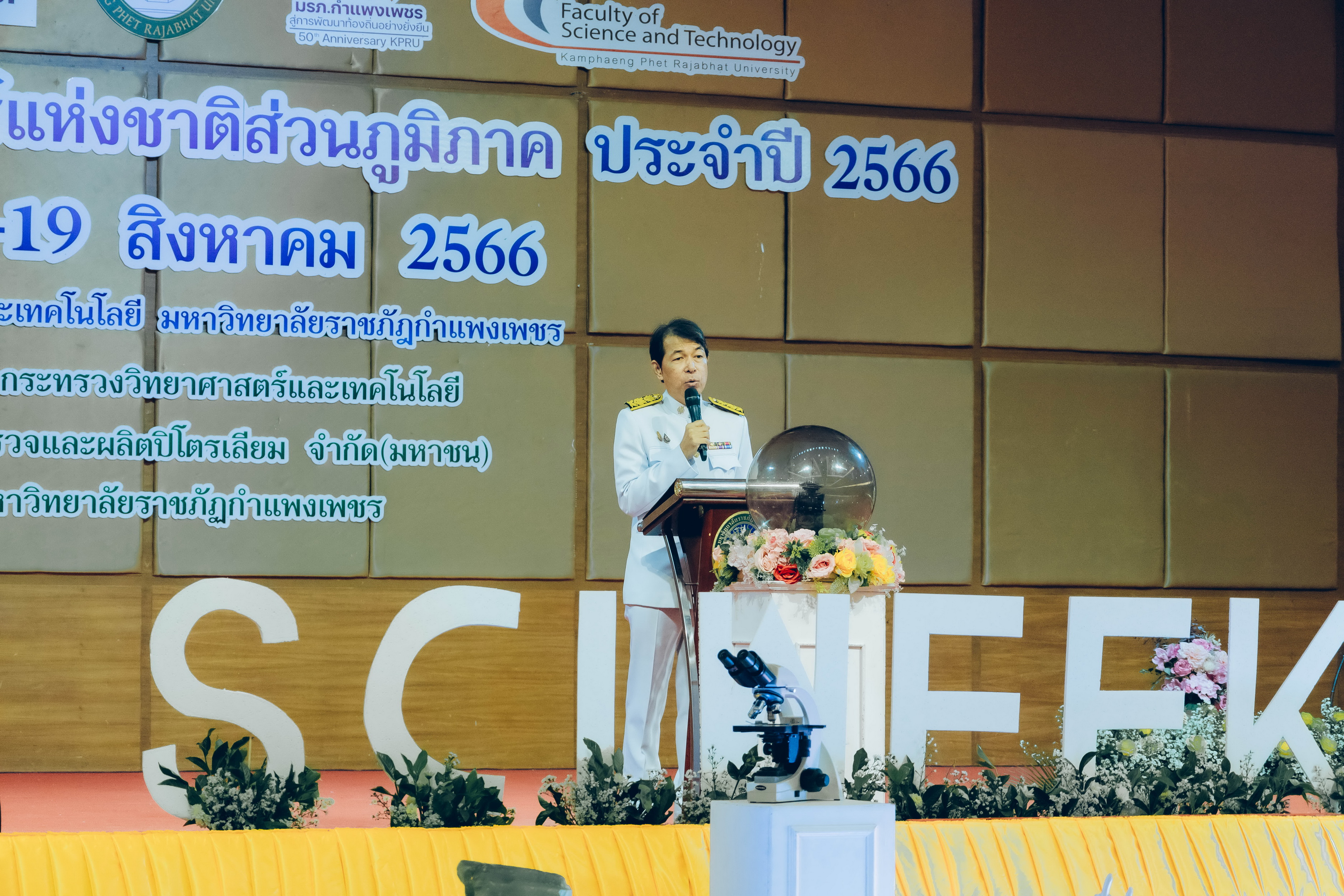 คณะวิทยาศาสตร์และเทคโนโลยี จัดพิธีถวายราชสดุดี พิธีถวายพานพุ่มสักการะและพิธีเปิด งานสัปดาห์วิทยาศาสตร์แห่งชาติ ส่วนภูมิภาค ประจำปี 2566 โดยมีวัตถุประสงค์เพื่อเทิดพระเกียรติ พระปรีชาสามารถด้านวิทยาศาสตร์และเทคโนโลยีของพระบาทสมเด็จพระปรเมนทรรามาธิบดีศรีสินทรมหามงกุฎ พระจอมเกล้าเจ้าอยู่หัว พระสยามเทวมหามกุฏวิทยมหาราช ในฐานะทรงเป็น “พระบิดาแห่งวิทยาศาสตร์ไทย” และเพื่อส่งเสริมการค้นคว้า เผยแพร่ผลงานการค้นคว้าวิจัย ทางวิทยาศาสตร์และเทคโนโลยี เพื่อประโยชน์ในการพัฒนาท้องถิ่นและประเทศชาติ และกระตุ้นให้เยาวชน ประชาชน มีความตื่นตัว เห็นความสำคัญ และให้ความสนใจต่อวิทยาศาสตร์และเทคโนโลยีที่มีต่อการพัฒนาประเทศมากยิ่งขึ้น ในวันศุกร์ที่ 18 สิงหาคม พ.ศ. 2566 เวลา 08.30-10.00 น. ณ ห้องประชุมราชพฤกษ์ ชั้น 3 อาคารทีปังกรรัศมีโชติ มหาวิทยาลัยราชภัฏกำแพงเพชร