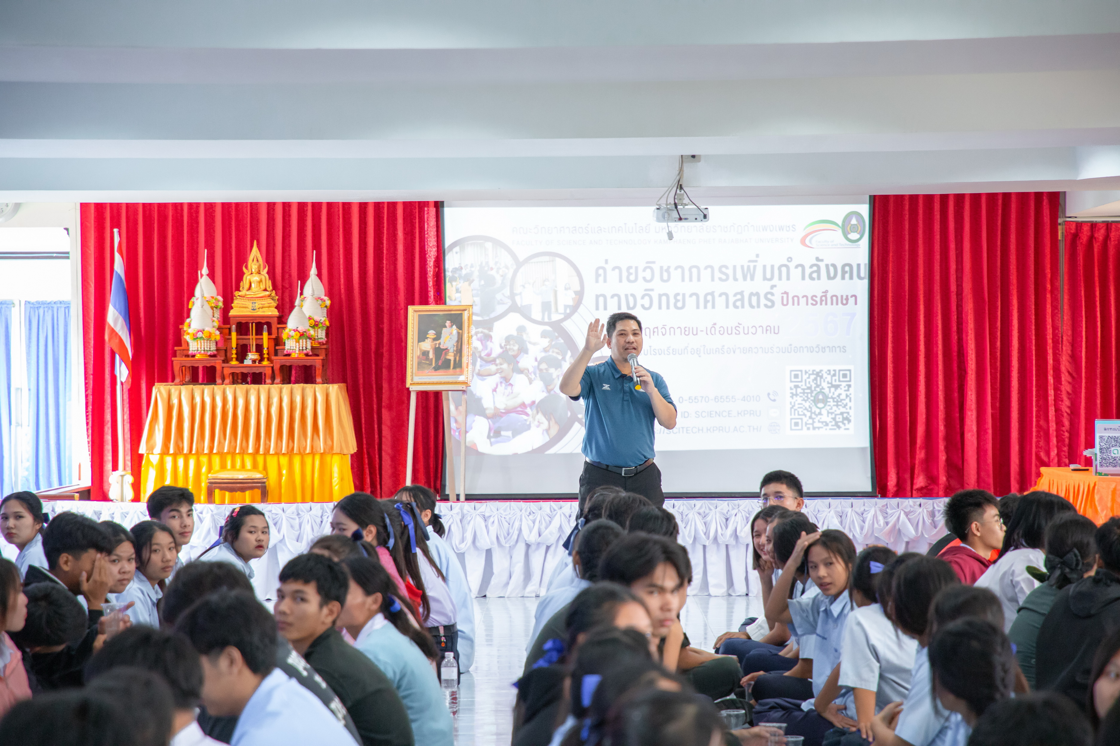 คณะวิทยาศาสตร์และเทคโนโลยี มหาวิทยาลัยราชภัฏกำแพงเพชร จัดกิจกรรมค่ายวิชาการเพื่อพัฒนากำลังคนด้านวิทยาศาสตร์และเทคโนโลยี ปีการศึกษา 2567 ให้กับนักเรียนระดับชั้นมัธยมศึกษาปีที่ 6 สำหรับโรงเรียนมัธยมศึกษาในเครือข่ายความร่วมมือทางวิชาการที่ต้องการรับบริการวิชาการ นระหว่างเดือนพฤศจิกายน พ.ศ. 2567-เดือนธันวาคม พ.ศ. 2567 เพื่อเสริมสร้างและสนับสนุนโอกาสทางการศึกษา พัฒนาศักยภาพด้านวิทยาศาสตร์และเทคโนโลยีให้กับครูและนักเรียนในเขตพื้นที่บริการของมหาวิทยาลัยราชภัฏกำแพงเพชรและรับสมัครนักศึกษา ปีการศึกษา 2568 ในวันอังคารที่ 5 พฤศจิกายน 2567 เวลา 13.00-16.30 น. ณ โรงเรียนพบพระวิทยาคม