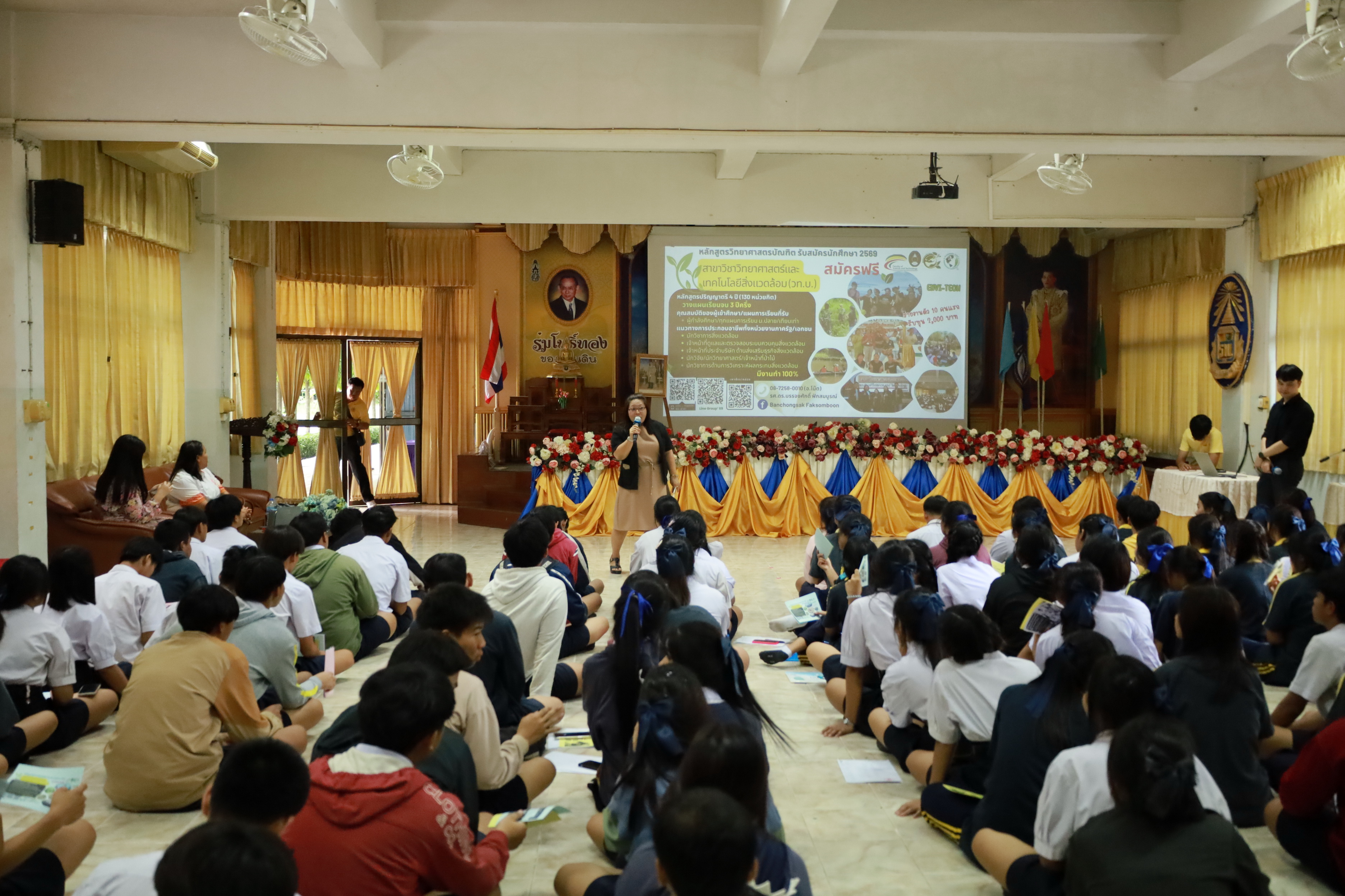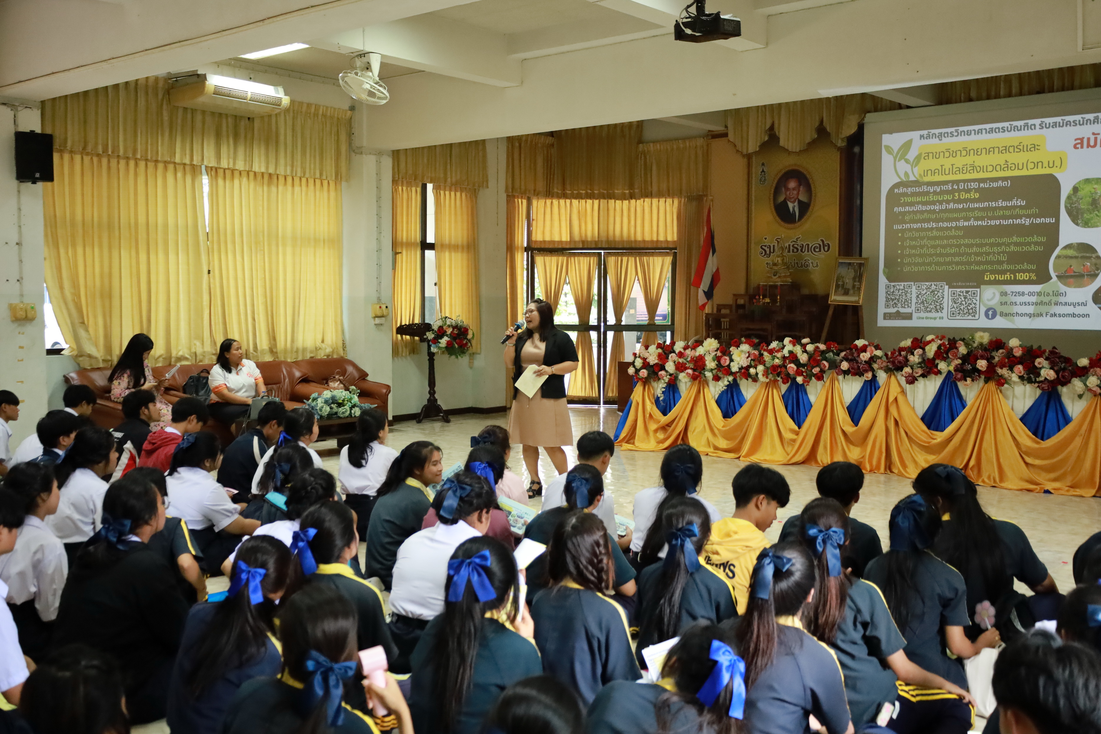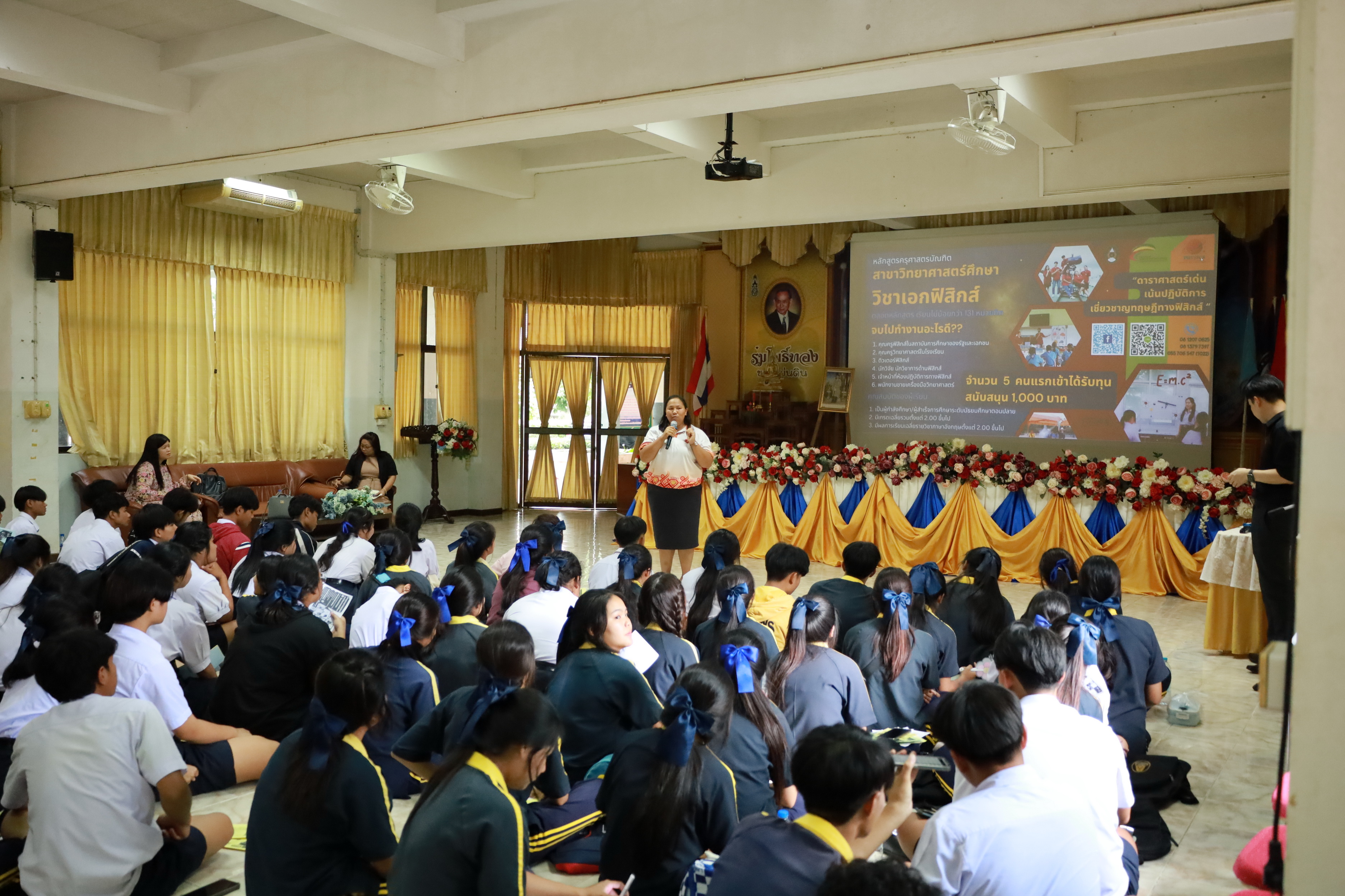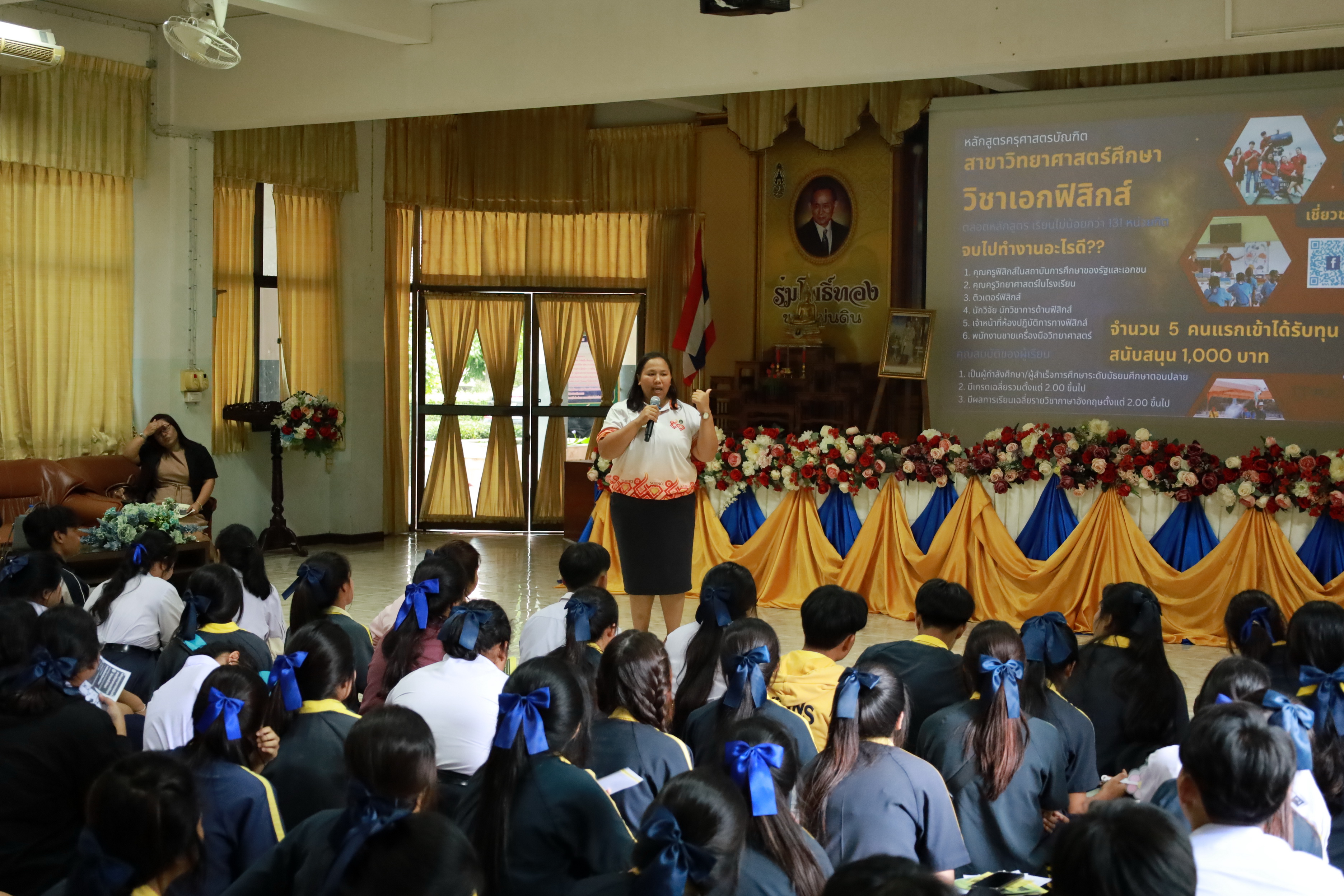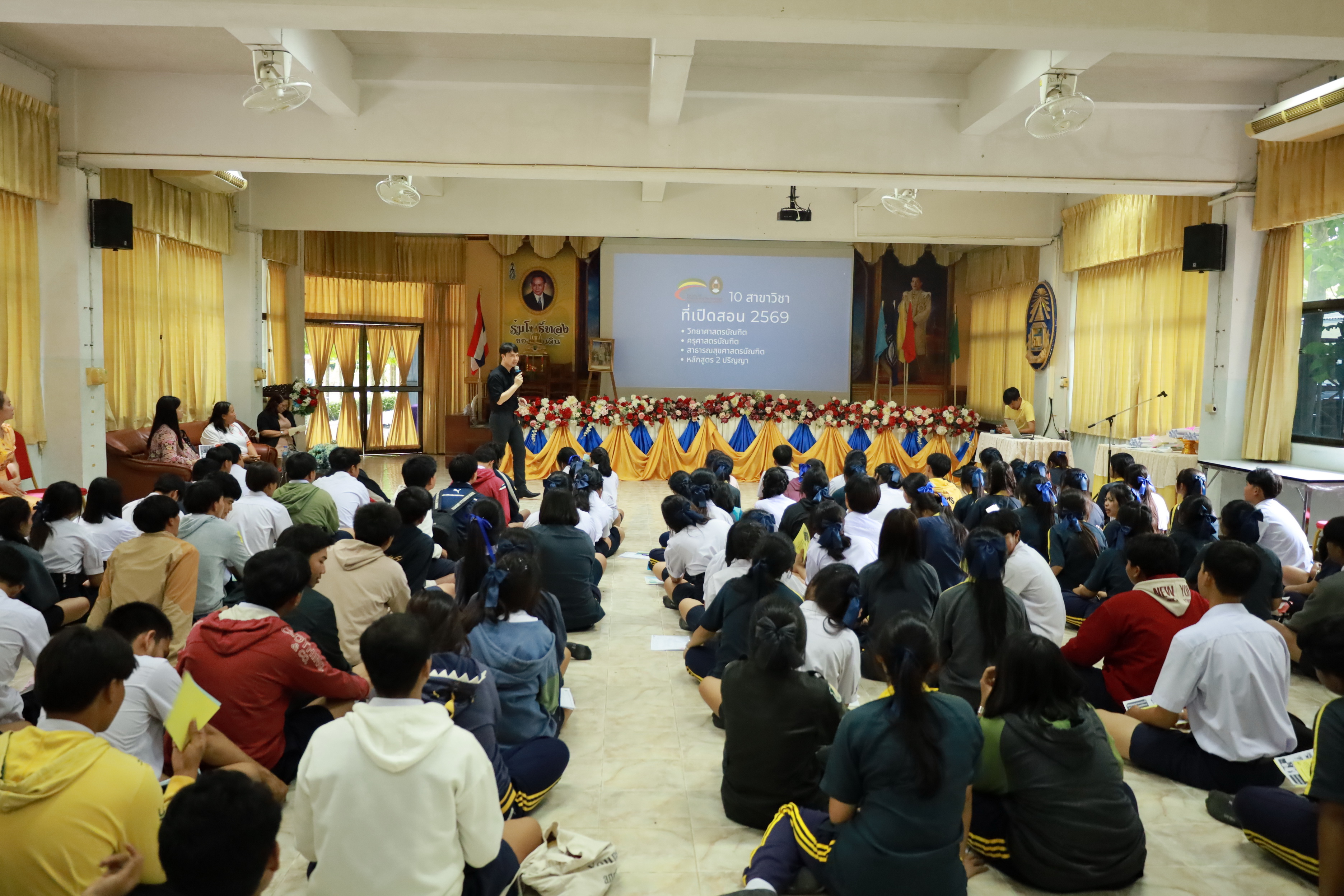 คณะวิทยาศาสตร์และเทคโนโลยี มหาวิทยาลัยราชภัฏกําแพงเพชร จัดโครงการประชาสัมพันธ์รายวิชาและหลักสูตรไปยังผู้เรียนกลุ่มใหม่ (Non-age Group) สำหรับโรงเรียนมัธยมศึกษาในเขตพื้นที่การศึกษาจังหวัดกำแพงเพชรที่เข้าร่วมเครือข่ายลงนามความร่วมมือ ให้กับนักเรียนระดับชั้นมัธยมศึกษาปีที่ 6 โรงเรียนเรืองวิทย์พิทยาคม จำนวน 130 คน เพื่อให้นักเรียนได้รับข้อมูลที่ถูกต้อง ชัดเจน และทันสมัยเกี่ยวกับการศึกษาต่อรวมถึงได้มีโอกาสแลกเปลี่ยนประสบการณ์กับผู้ที่เคยผ่านการศึกษานั้นมาก่อนซึ่งจะเป็นประโยชน์ ในการวางแผนอนาคตและตัดสินใจเลือกแนวทางที่เหมาะสมกับตนเองต่อๆ ไป "ในวันที่ 16 มิถุนายน 2568 " เวลา 14.50-15.45 น. ณ โรงเรียนเรืองวิทย์พิทยาคม