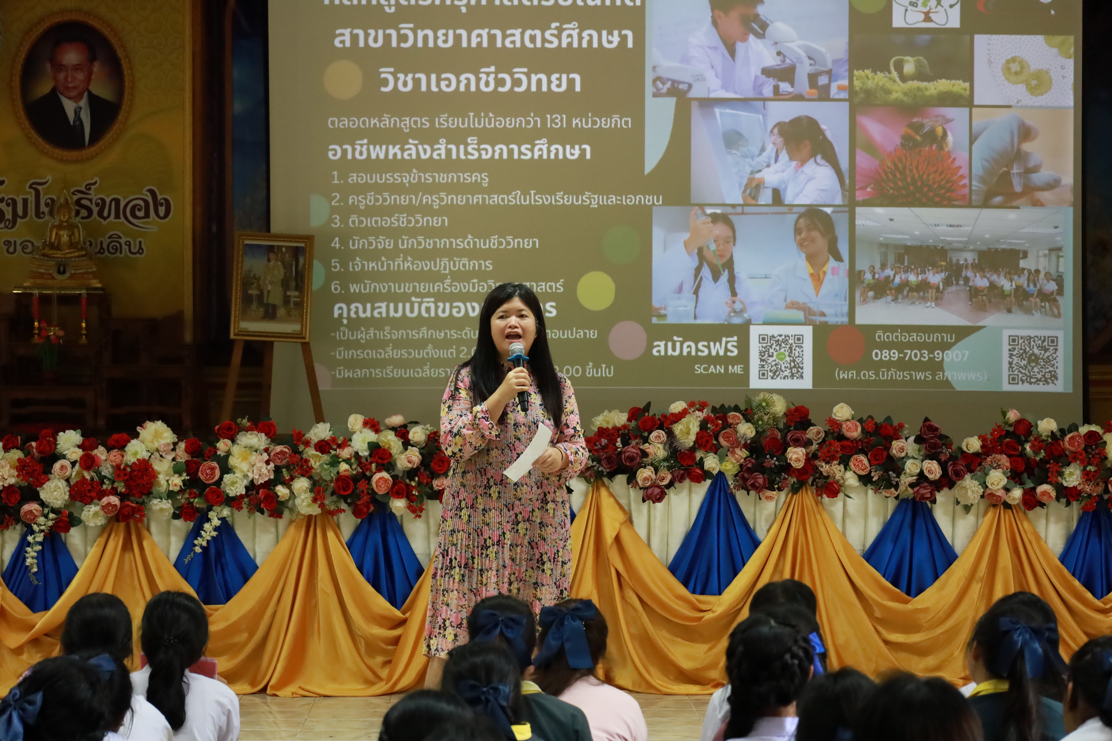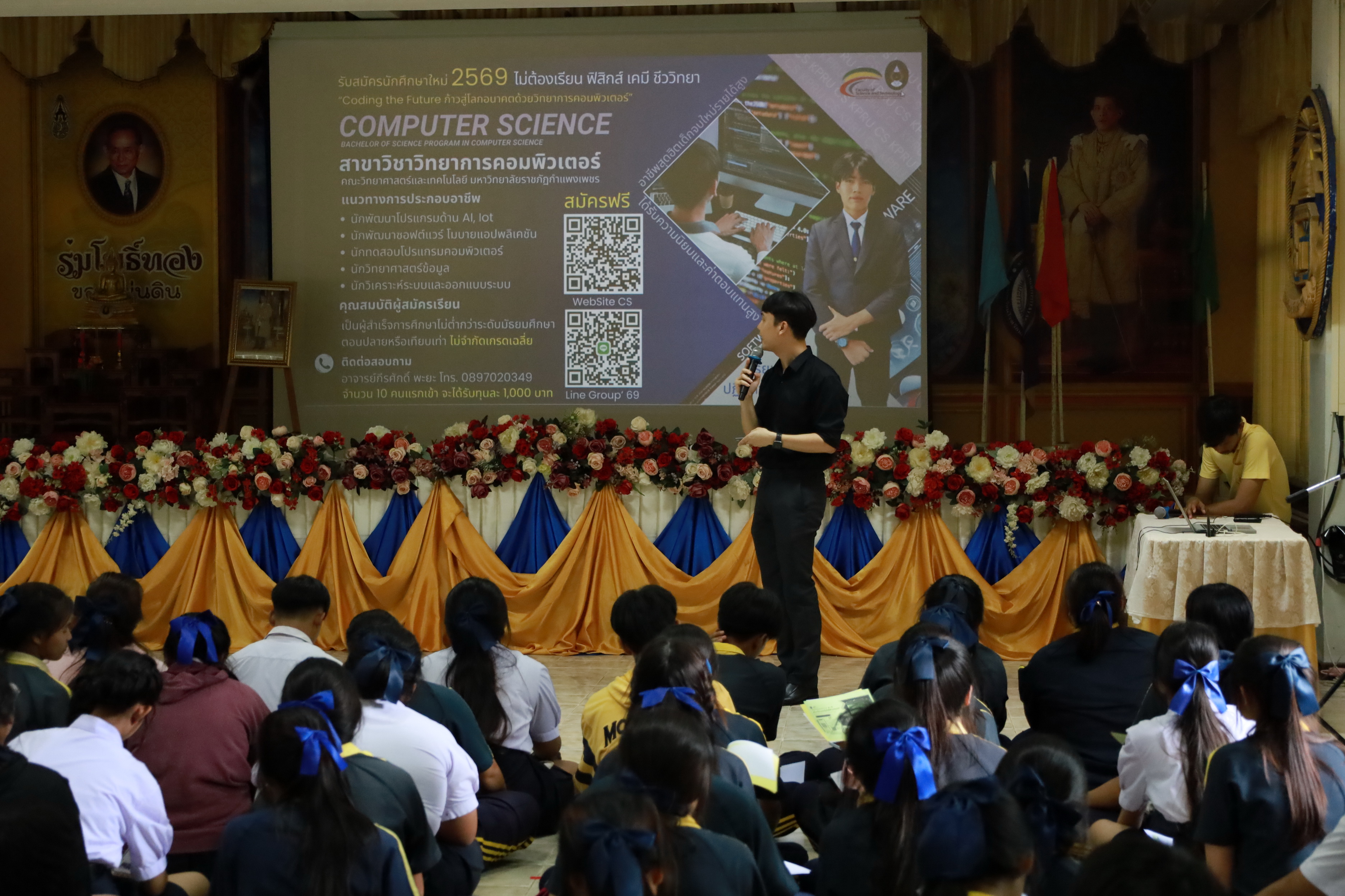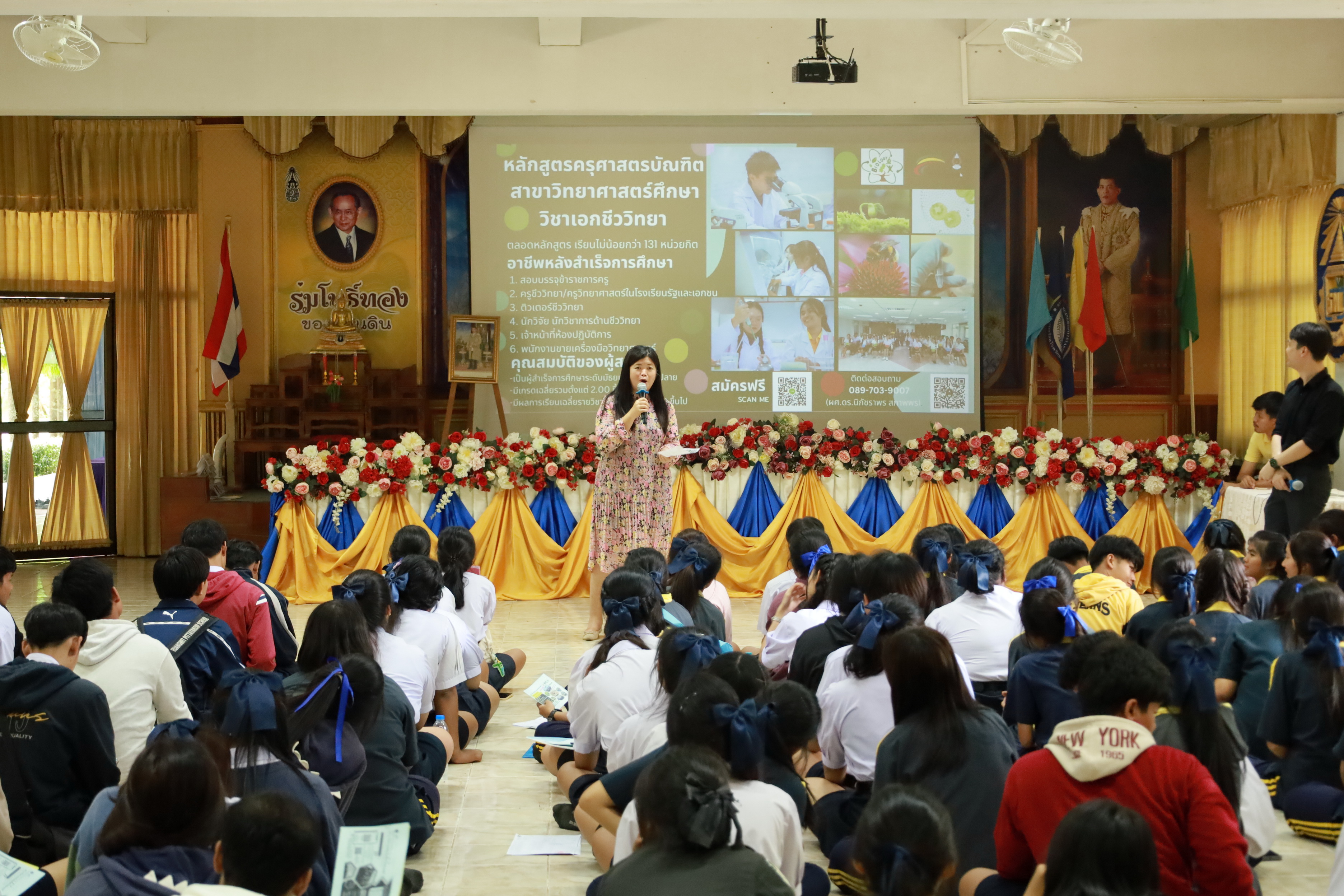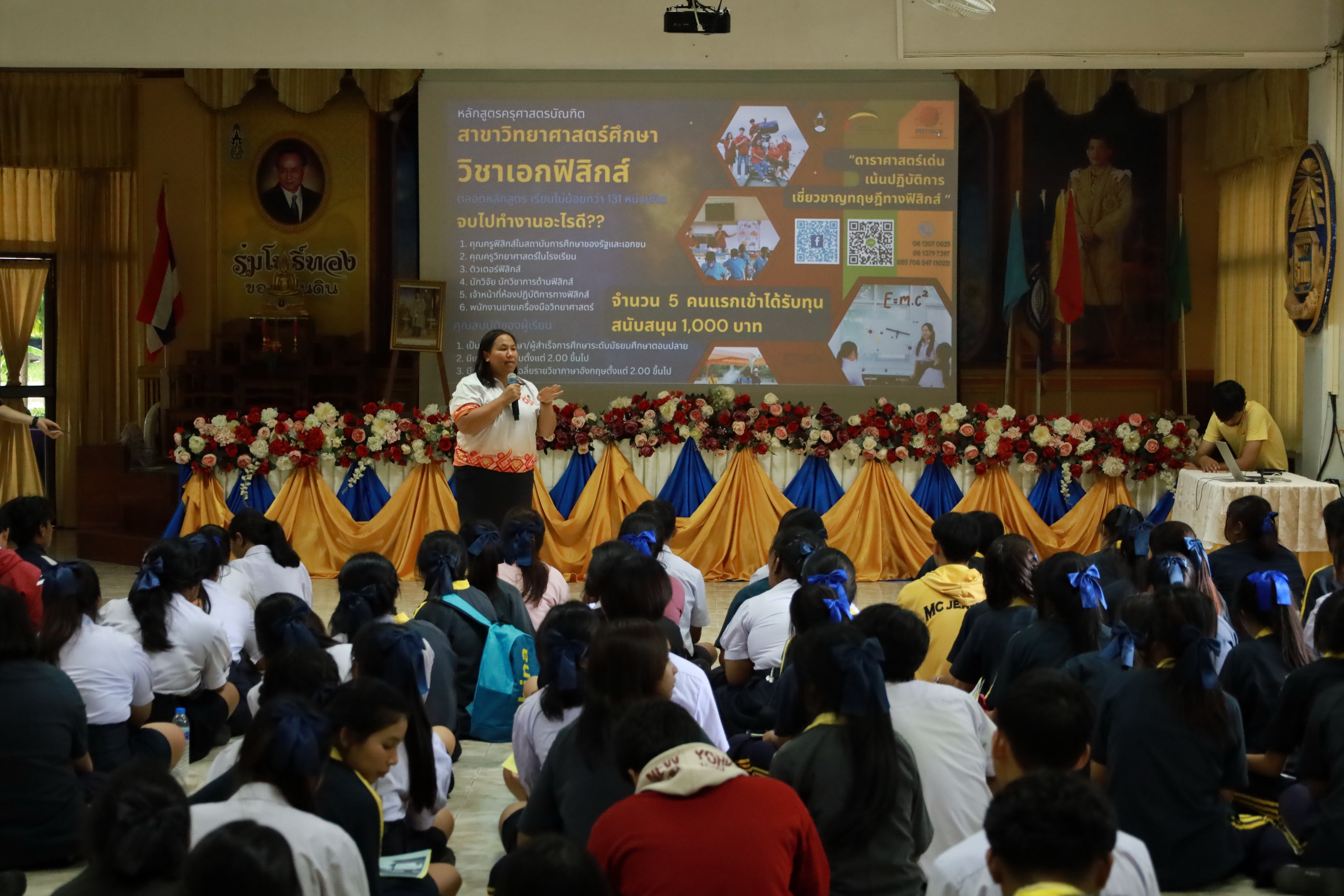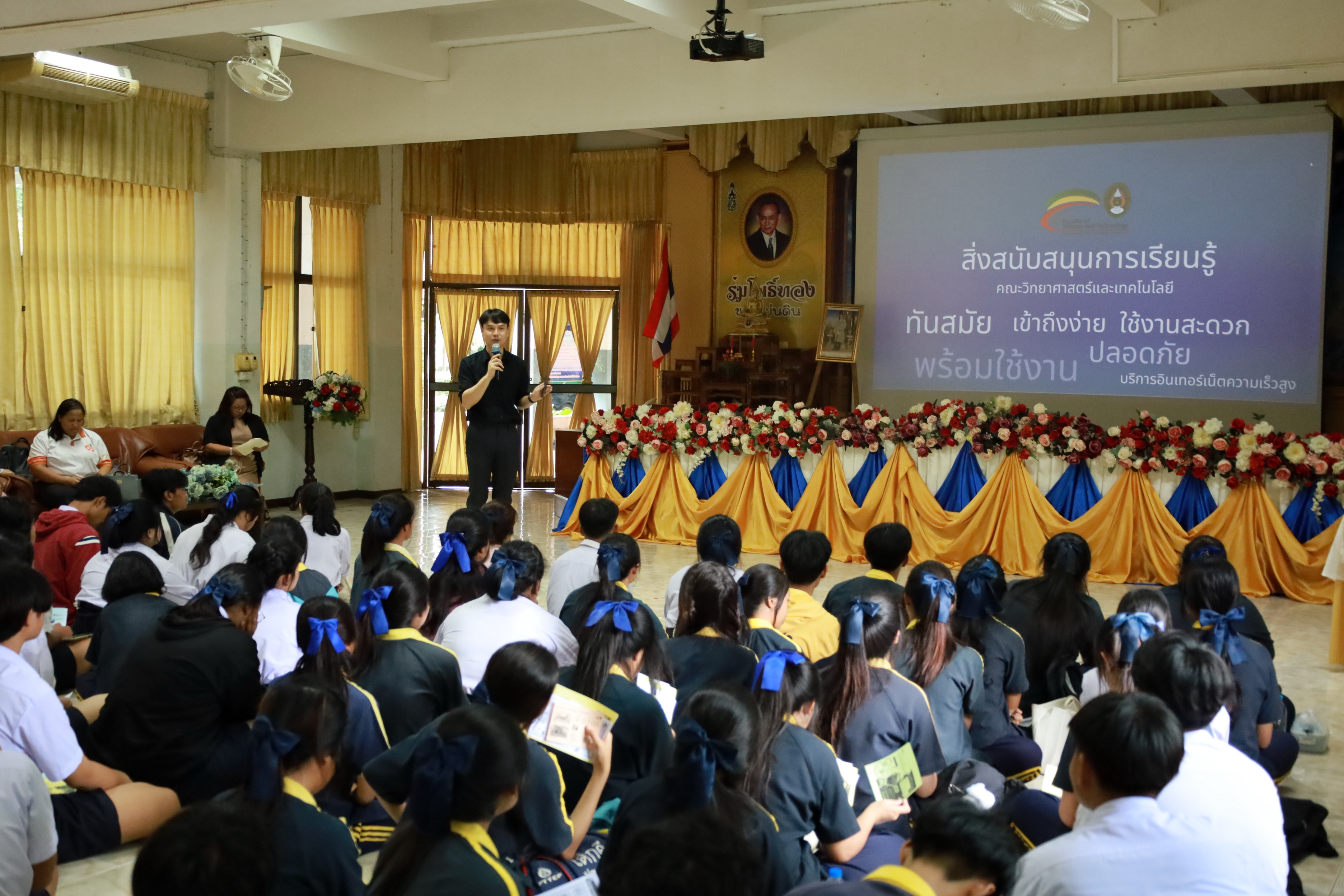 คณะวิทยาศาสตร์และเทคโนโลยี มหาวิทยาลัยราชภัฏกําแพงเพชร จัดโครงการประชาสัมพันธ์รายวิชาและหลักสูตรไปยังผู้เรียนกลุ่มใหม่ (Non-age Group) สำหรับโรงเรียนมัธยมศึกษาในเขตพื้นที่การศึกษาจังหวัดกำแพงเพชรที่เข้าร่วมเครือข่ายลงนามความร่วมมือ ให้กับนักเรียนระดับชั้นมัธยมศึกษาปีที่ 6 โรงเรียนเรืองวิทย์พิทยาคม จำนวน 130 คน เพื่อให้นักเรียนได้รับข้อมูลที่ถูกต้อง ชัดเจน และทันสมัยเกี่ยวกับการศึกษาต่อรวมถึงได้มีโอกาสแลกเปลี่ยนประสบการณ์กับผู้ที่เคยผ่านการศึกษานั้นมาก่อนซึ่งจะเป็นประโยชน์ ในการวางแผนอนาคตและตัดสินใจเลือกแนวทางที่เหมาะสมกับตนเองต่อๆ ไป "ในวันที่ 16 มิถุนายน 2568 " เวลา 14.50-15.45 น. ณ โรงเรียนเรืองวิทย์พิทยาคม