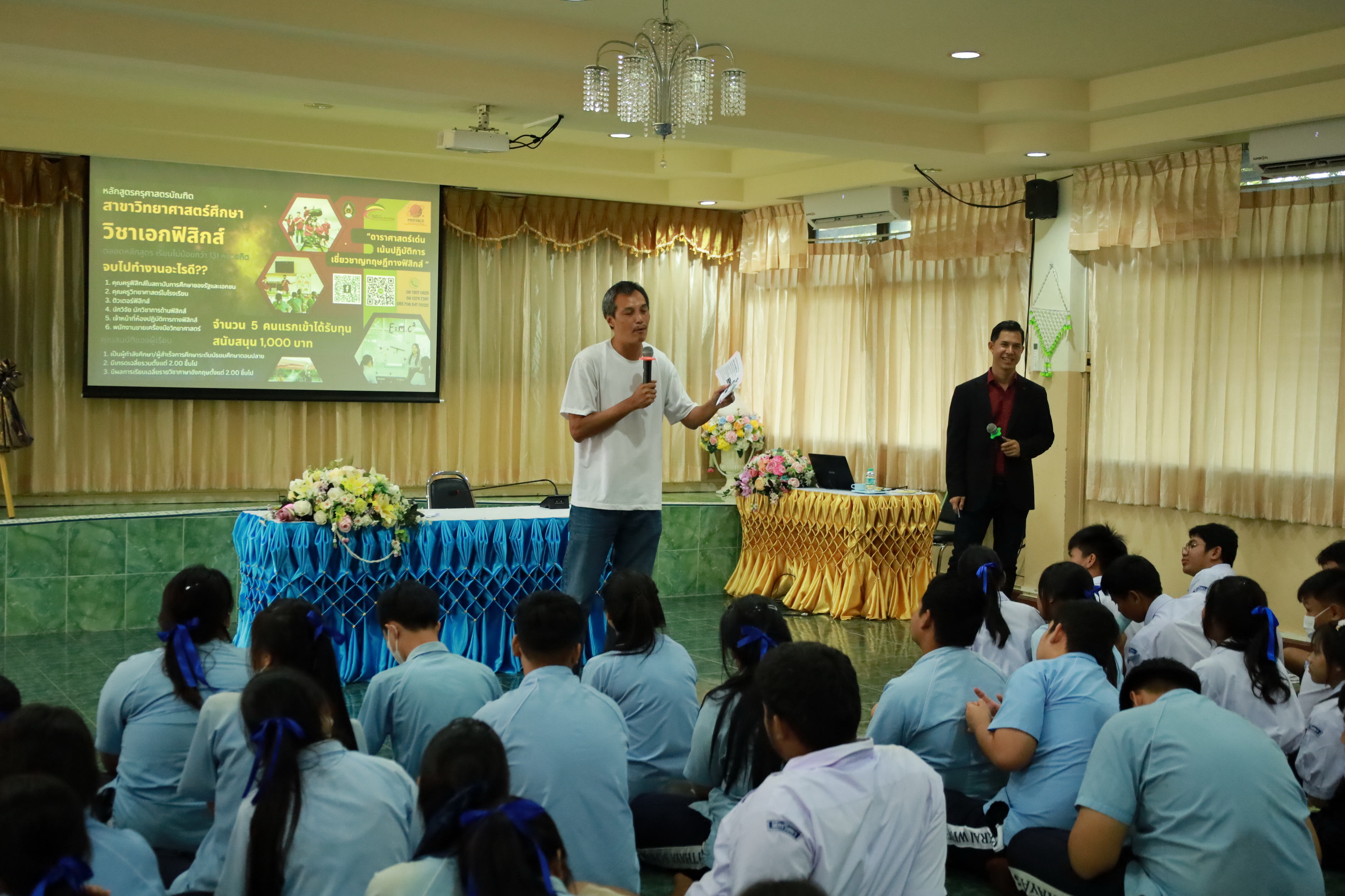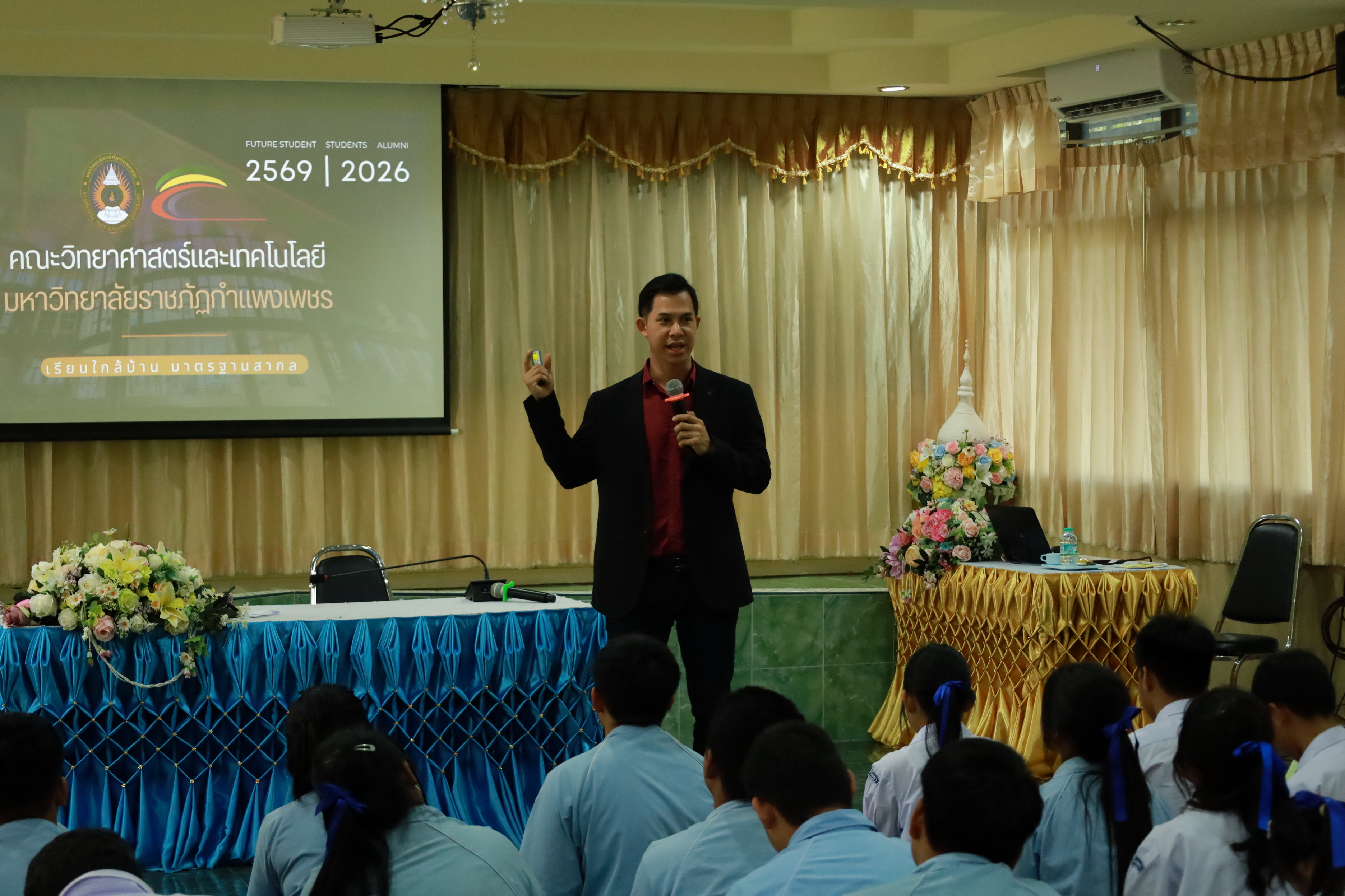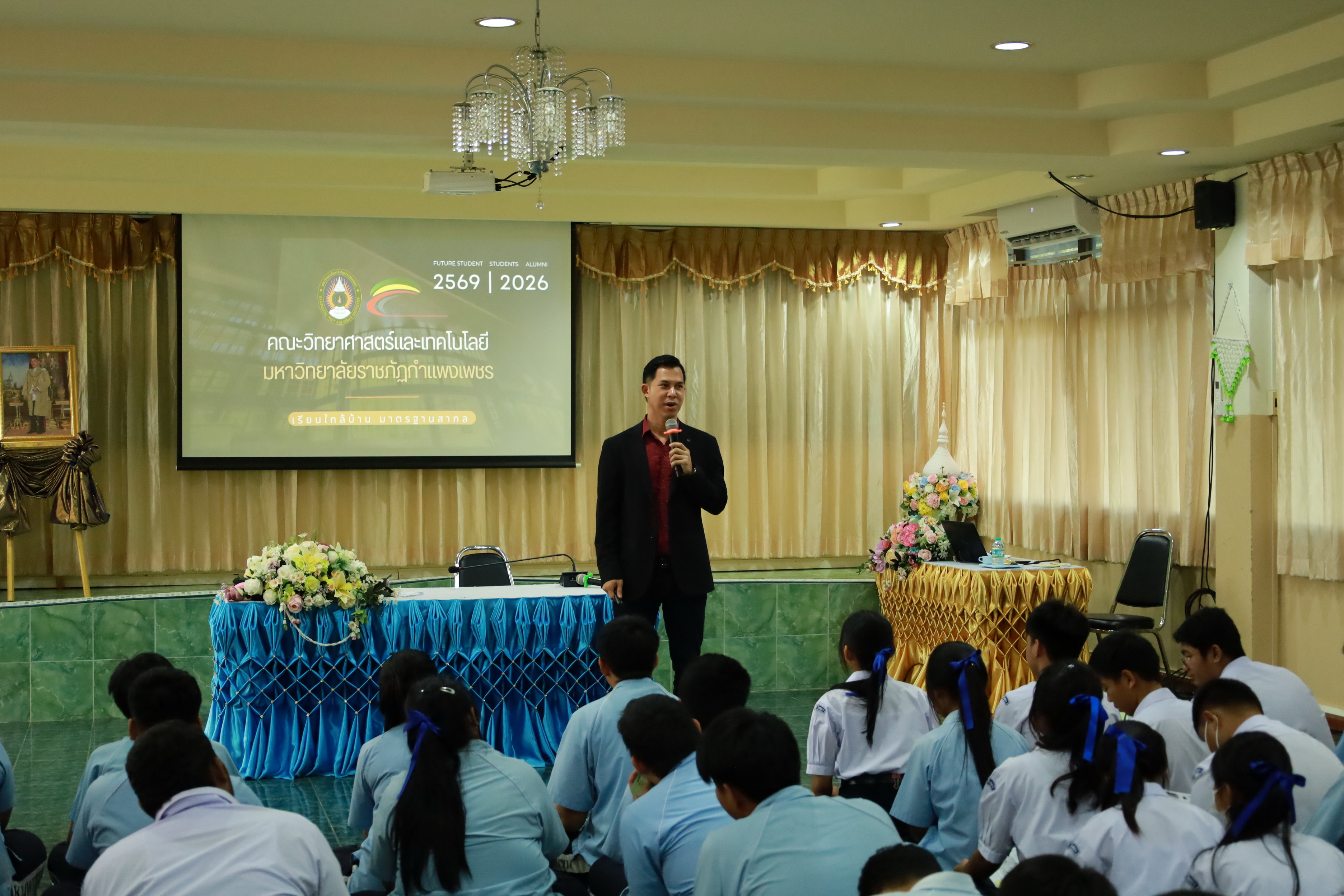 คณะวิทยาศาสตร์และเทคโนโลยี มหาวิทยาลัยราชภัฏกําแพงเพชร จัดโครงการประชาสัมพันธ์รายวิชาและหลักสูตรไปยังผู้เรียนกลุ่มใหม่ (Non-age Group) สำหรับโรงเรียนมัธยมศึกษาในเขตพื้นที่การศึกษาจังหวัดกำแพงเพชรที่เข้าร่วมเครือข่ายลงนามความร่วมมือ ให้กับนักเรียนระดับชั้นมัธยมศึกษาปีที่ 6 โรงเรียนพิไกรวิทยา จำนวน 60 คน เพื่อให้นักเรียนได้รับข้อมูลที่ถูกต้อง ชัดเจน และทันสมัยเกี่ยวกับการศึกษาต่อรวมถึงได้มีโอกาสแลกเปลี่ยนประสบการณ์กับผู้ที่เคยผ่านการศึกษานั้นมาก่อนซึ่งจะเป็นประโยชน์ ในการวางแผนอนาคตและตัดสินใจเลือกแนวทางที่เหมาะสมกับตนเองต่อๆ ไป "ในวันที่ 16 มิถุนายน 2568 " เวลา 10.00-11.00 น. ณ โรงเรียนพิไกรวิทยา