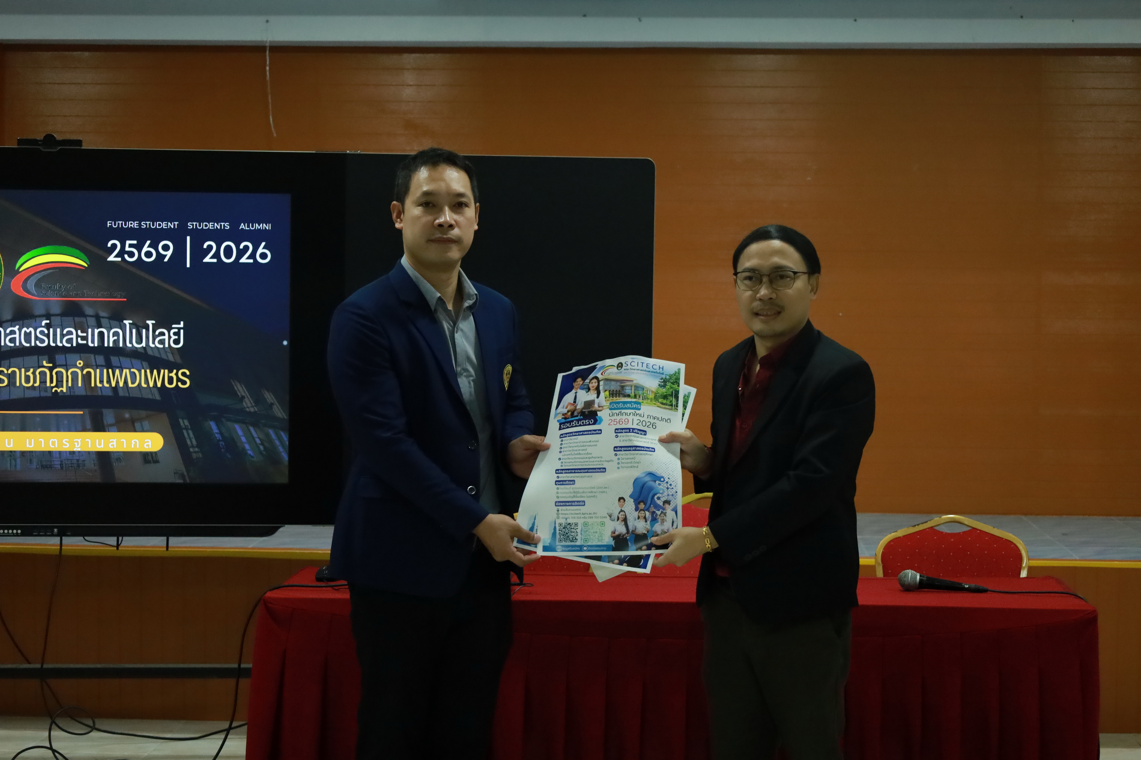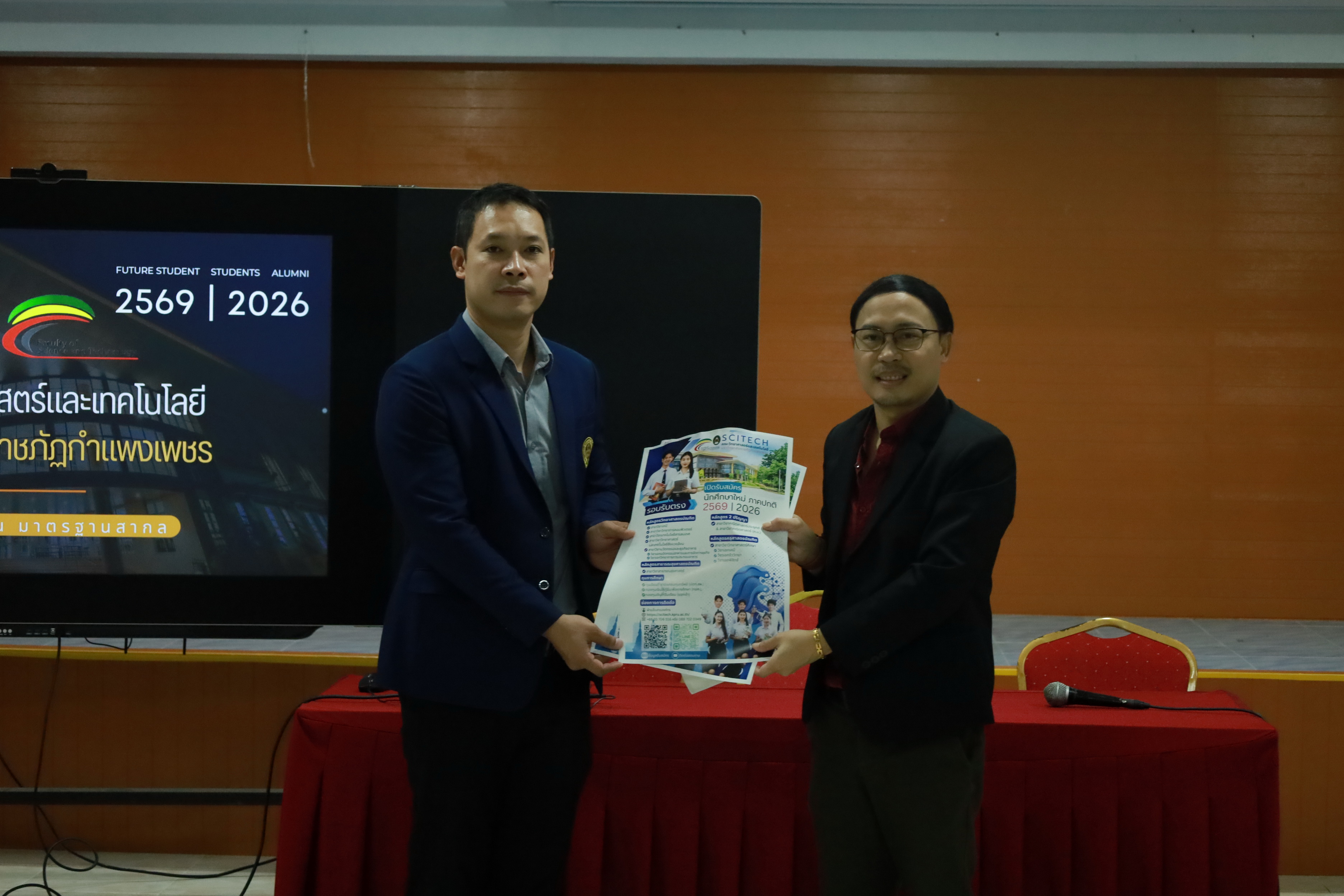คณะวิทยาศาสตร์และเทคโนโลยี มหาวิทยาลัยราชภัฏกําแพงเพชร จัดโครงการประชาสัมพันธ์รายวิชาและหลักสูตรไปยังผู้เรียนกลุ่มใหม่ (Non-age Group) สำหรับโรงเรียนมัธยมศึกษาในเขตพื้นที่การศึกษาจังหวัดกำแพงเพชรที่เข้าร่วมเครือข่ายลงนามความร่วมมือ ให้กับนักเรียนระดับชั้นมัธยมศึกษาปีที่ 6 โรงเรียนสักงามวิทยา จำนวน 87 คน เพื่อให้นักเรียนได้รับข้อมูลที่ถูกต้อง ชัดเจน และทันสมัยเกี่ยวกับการศึกษาต่อรวมถึงได้มีโอกาสแลกเปลี่ยนประสบการณ์กับผู้ที่เคยผ่านการศึกษานั้นมาก่อนซึ่งจะเป็นประโยชน์ ในการวางแผนอนาคตและตัดสินใจเลือกแนวทางที่เหมาะสมกับตนเองต่อๆ ไป "ในวันที่ 19 มิถุนายน 2568 " เวลา 08.40-09.30 น. ณ โรงเรียนสักงามวิทยา