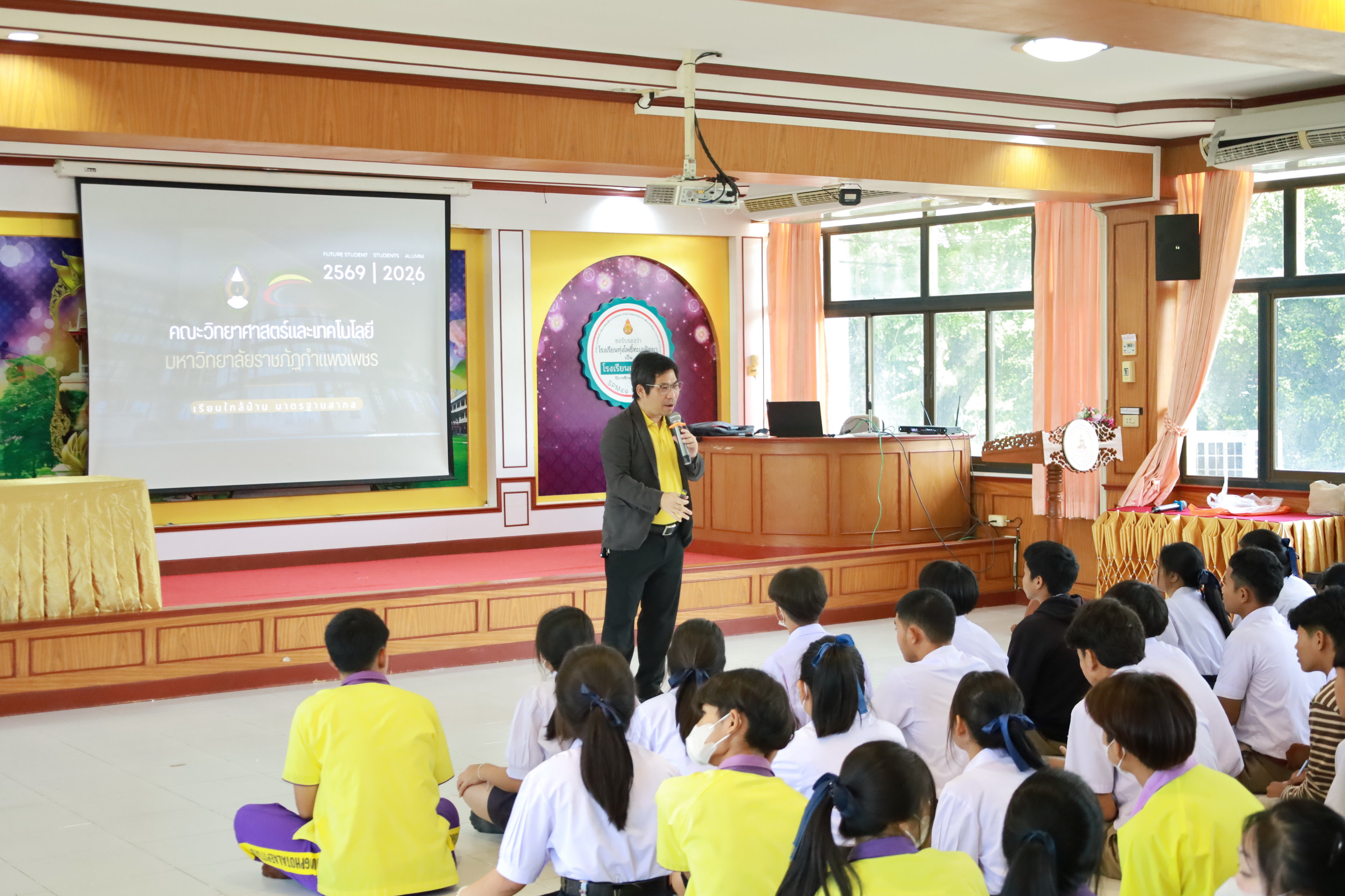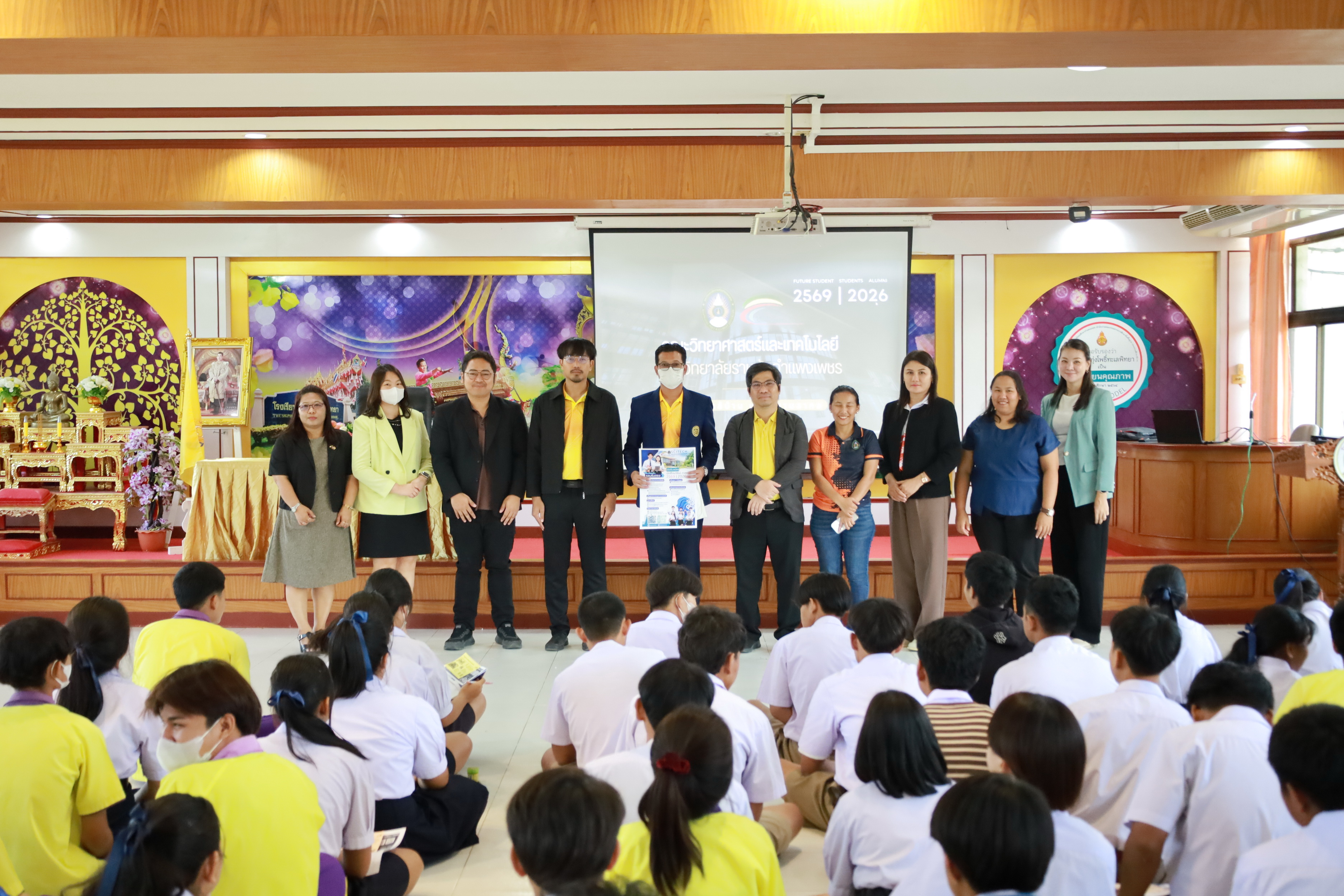 คณะวิทยาศาสตร์และเทคโนโลยี มหาวิทยาลัยราชภัฏกําแพงเพชร จัดโครงการประชาสัมพันธ์รายวิชาและหลักสูตรไปยังผู้เรียนกลุ่มใหม่ (Non-age Group) สำหรับโรงเรียนมัธยมศึกษาในเขตพื้นที่การศึกษาจังหวัดกำแพงเพชรที่เข้าร่วมเครือข่ายลงนามความร่วมมือ ให้กับนักเรียนระดับชั้นมัธยมศึกษาปีที่ 6 โรงเรียนทุ่งโพธิ์ทะเลพิทยา จำนวน 40คน เพื่อให้นักเรียนได้รับข้อมูลที่ถูกต้อง ชัดเจน และทันสมัยเกี่ยวกับการศึกษาต่อรวมถึงได้มีโอกาสแลกเปลี่ยนประสบการณ์กับผู้ที่เคยผ่านการศึกษานั้นมาก่อนซึ่งจะเป็นประโยชน์ ในการวางแผนอนาคตและตัดสินใจเลือกแนวทางที่เหมาะสมกับตนเองต่อๆ ไป "ในวันที่ 25 มิถุนายน 2568 " เวลา 09.00-10.10 น. ณ โรงเรียนทุ่งโพธิ์ทะเลพิทยา