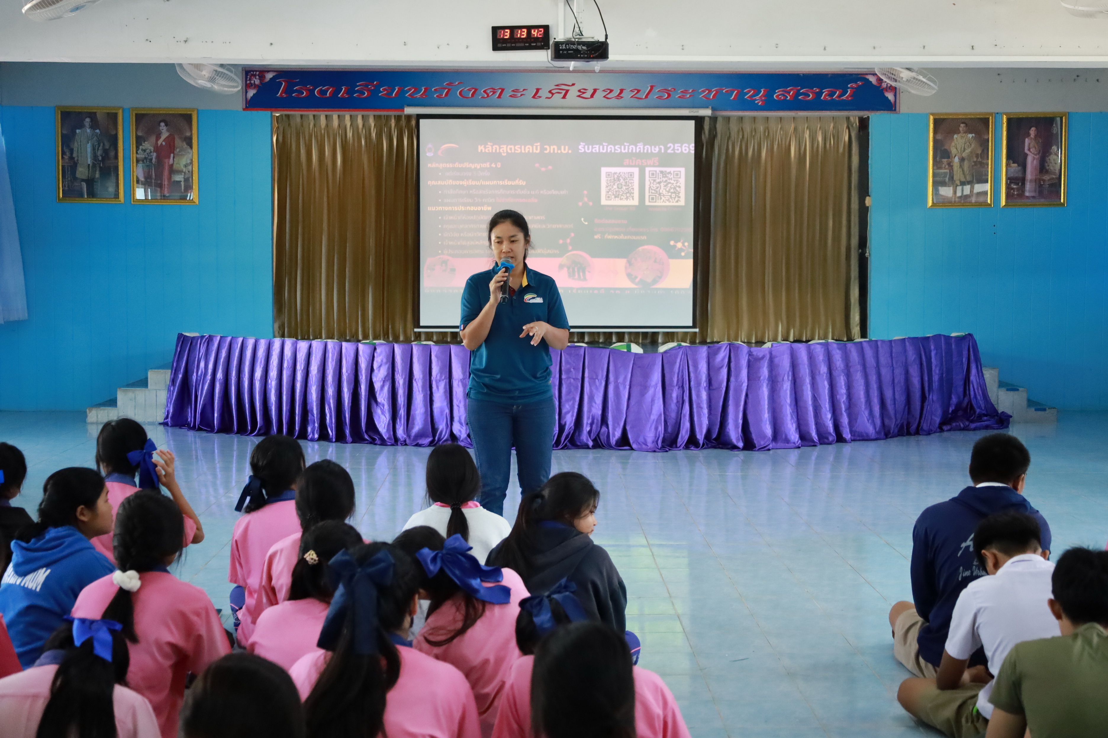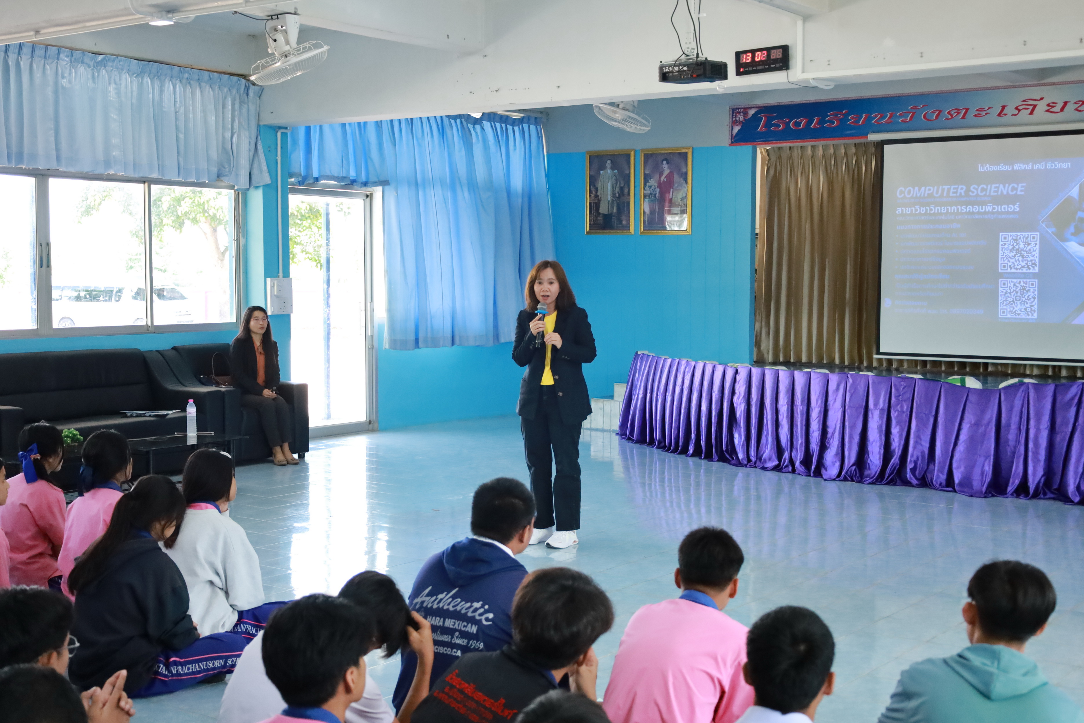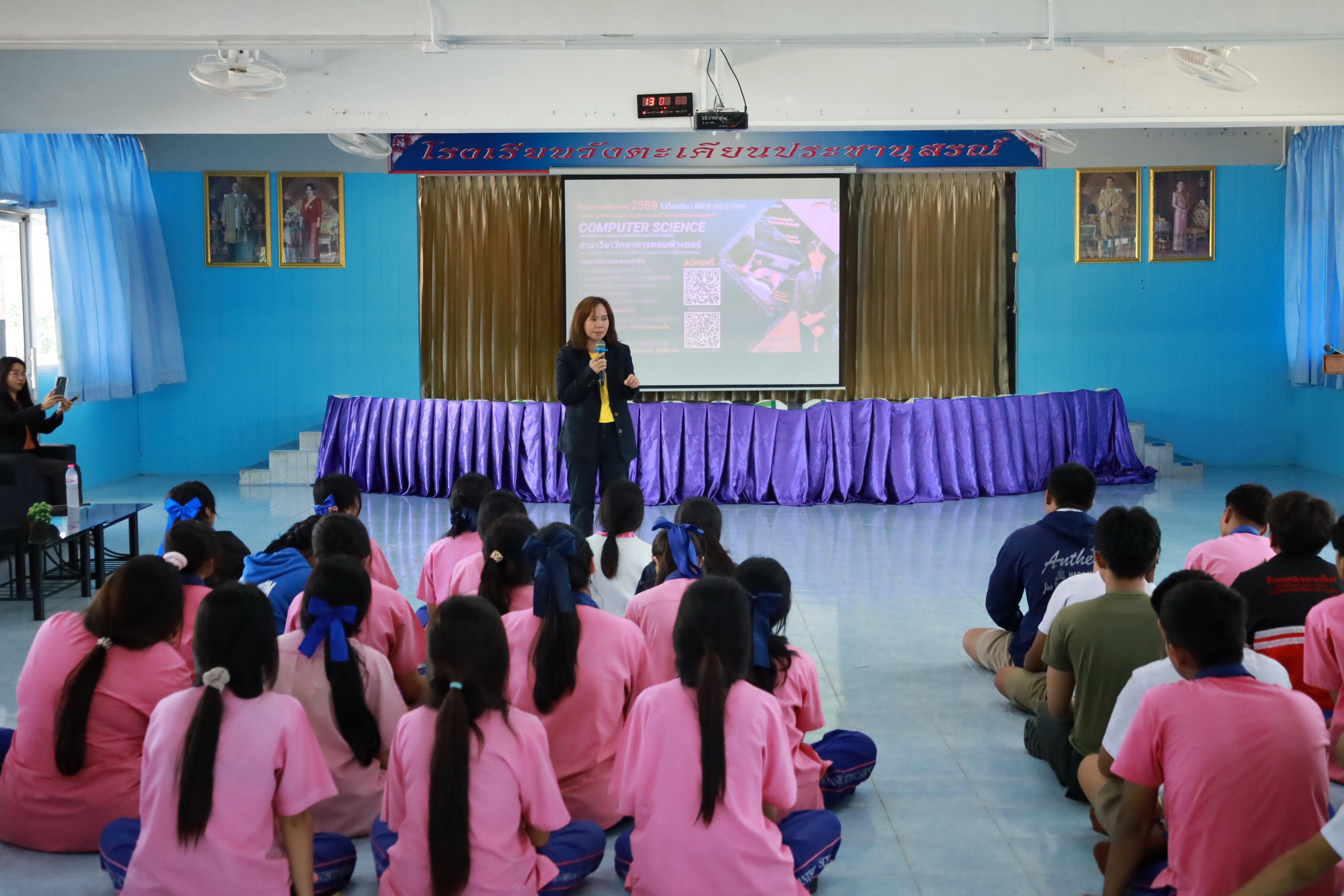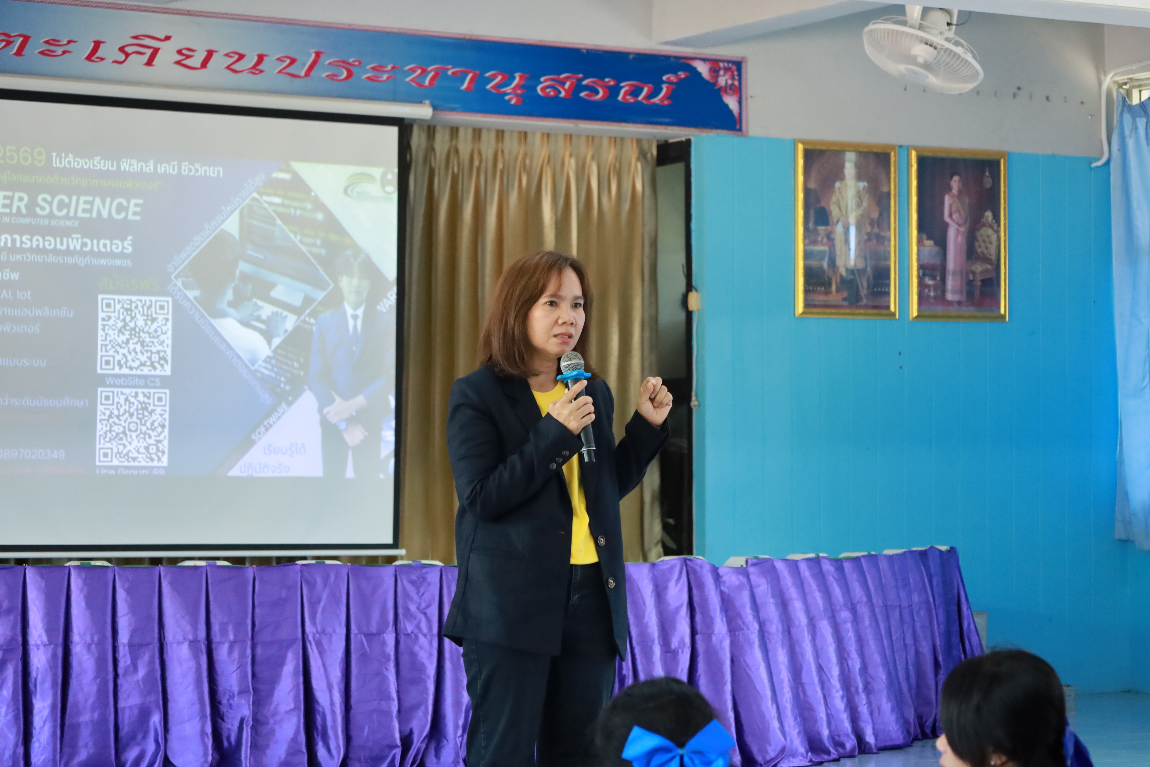 คณะวิทยาศาสตร์และเทคโนโลยี มหาวิทยาลัยราชภัฏกําแพงเพชร จัดโครงการประชาสัมพันธ์รายวิชาและหลักสูตรไปยังผู้เรียนกลุ่มใหม่ (Non-age Group) สำหรับโรงเรียนมัธยมศึกษาในเขตพื้นที่การศึกษาจังหวัดกำแพงเพชรที่เข้าร่วมเครือข่ายลงนามความร่วมมือ ให้กับนักเรียนระดับชั้นมัธยมศึกษาปีที่ 6 โรงเรียนวังตะเคียนประชานุสรณ์ จำนวน 55 คน เพื่อให้นักเรียนได้รับข้อมูลที่ถูกต้อง ชัดเจน และทันสมัยเกี่ยวกับการศึกษาต่อรวมถึงได้มีโอกาสแลกเปลี่ยนประสบการณ์กับผู้ที่เคยผ่านการศึกษานั้นมาก่อนซึ่งจะเป็นประโยชน์ ในการวางแผนอนาคตและตัดสินใจเลือกแนวทางที่เหมาะสมกับตนเองต่อๆ ไป "ในวันที่ 25 มิถุนายน 2568 " เวลา 13.00-14.00 น. ณ โรงเรียนวังตะเคียนประชานุสรณ์