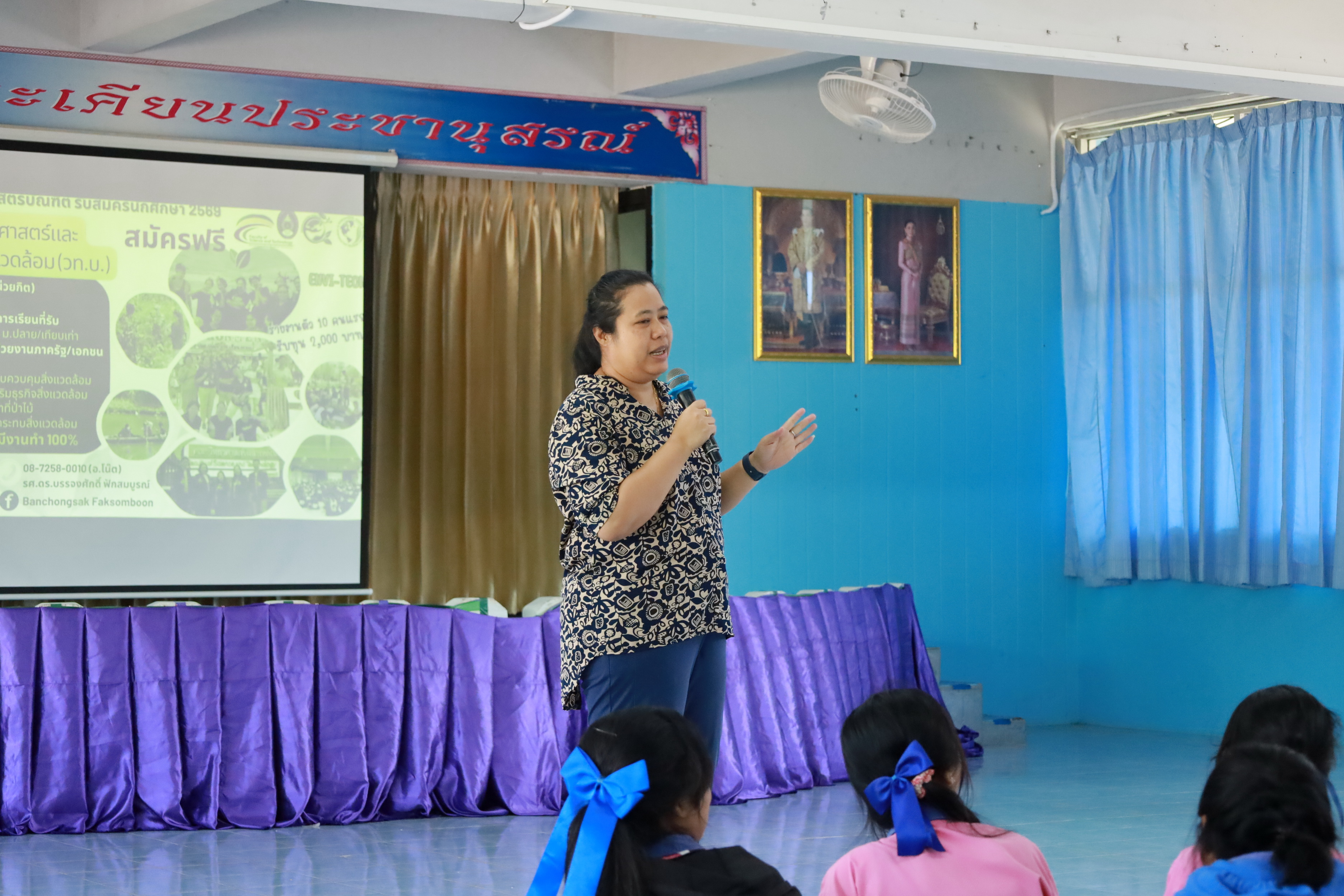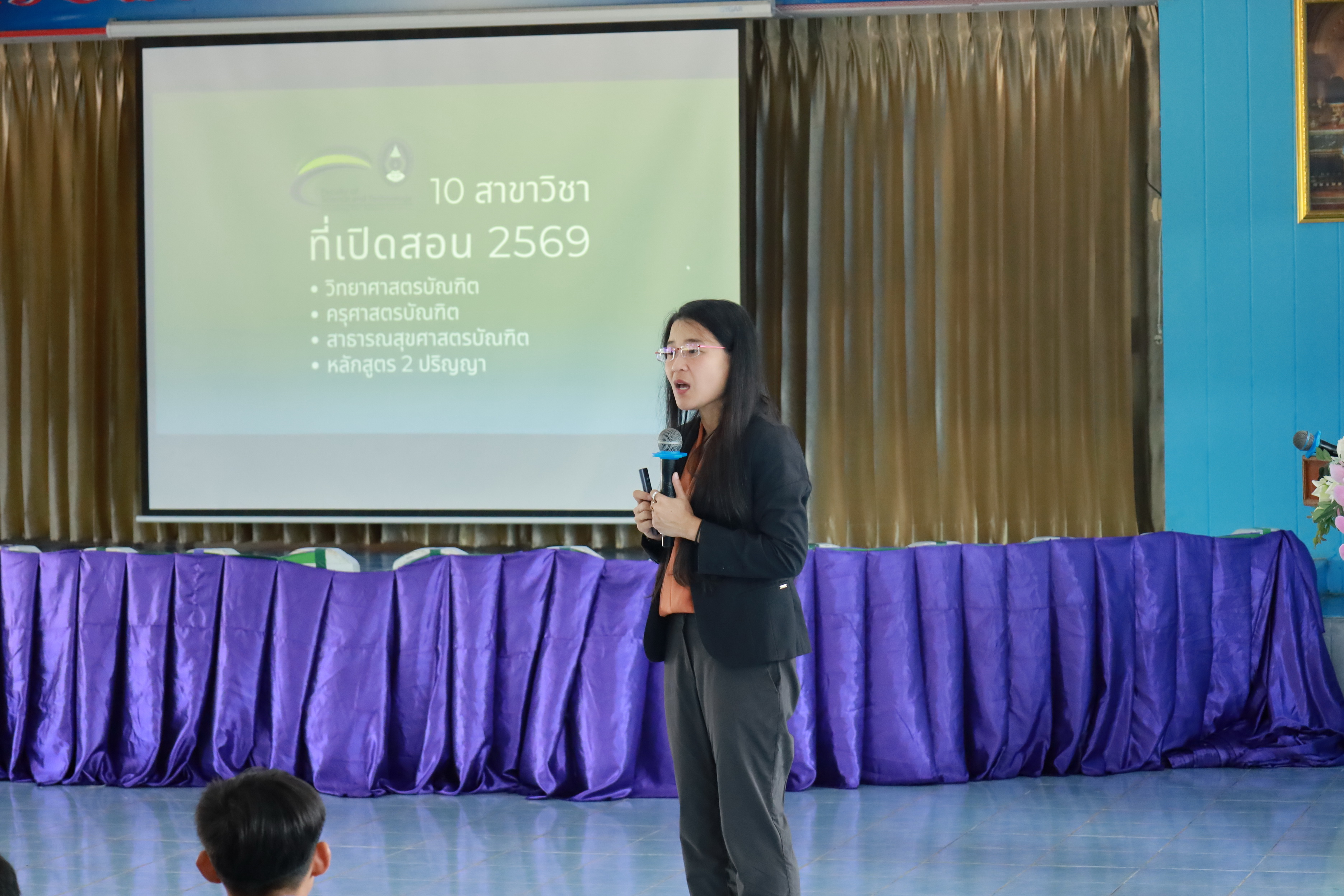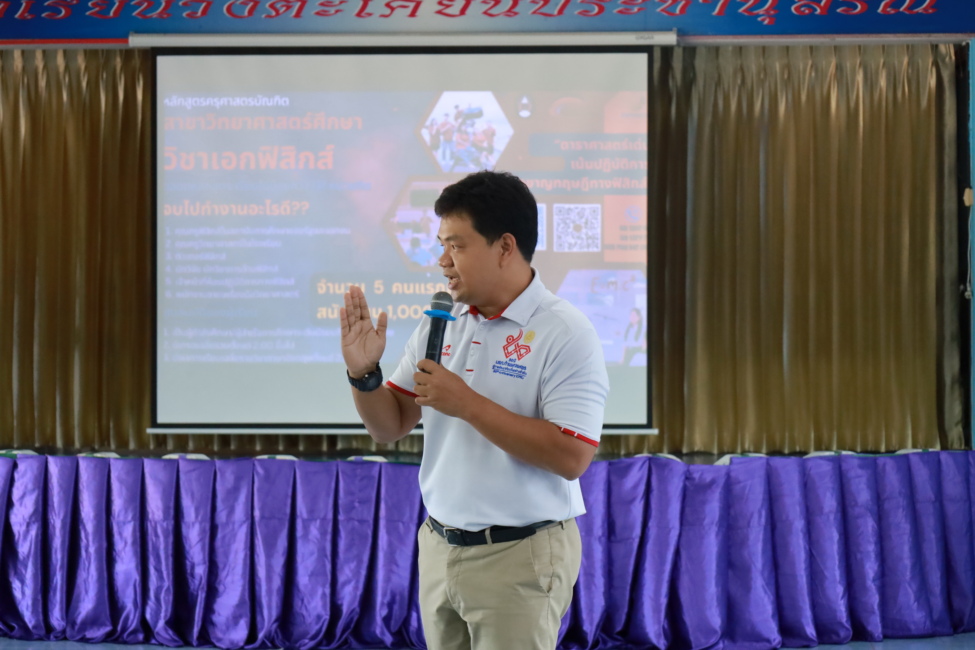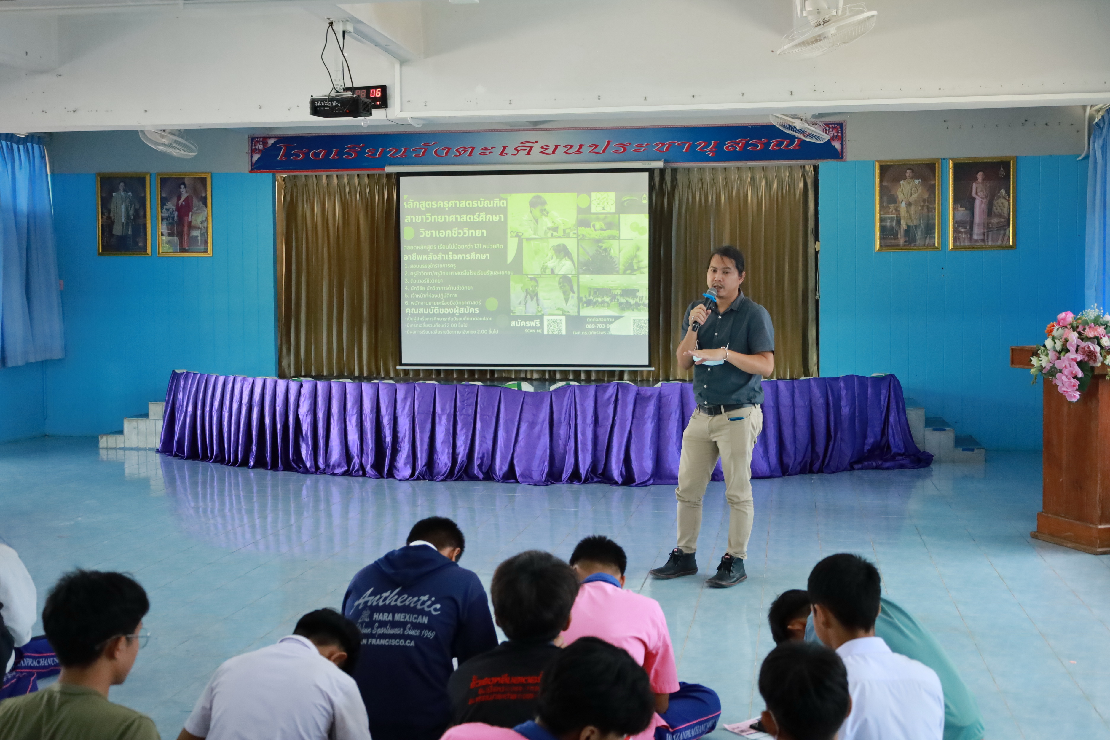 คณะวิทยาศาสตร์และเทคโนโลยี มหาวิทยาลัยราชภัฏกําแพงเพชร จัดโครงการประชาสัมพันธ์รายวิชาและหลักสูตรไปยังผู้เรียนกลุ่มใหม่ (Non-age Group) สำหรับโรงเรียนมัธยมศึกษาในเขตพื้นที่การศึกษาจังหวัดกำแพงเพชรที่เข้าร่วมเครือข่ายลงนามความร่วมมือ ให้กับนักเรียนระดับชั้นมัธยมศึกษาปีที่ 6 โรงเรียนวังตะเคียนประชานุสรณ์ จำนวน 55 คน เพื่อให้นักเรียนได้รับข้อมูลที่ถูกต้อง ชัดเจน และทันสมัยเกี่ยวกับการศึกษาต่อรวมถึงได้มีโอกาสแลกเปลี่ยนประสบการณ์กับผู้ที่เคยผ่านการศึกษานั้นมาก่อนซึ่งจะเป็นประโยชน์ ในการวางแผนอนาคตและตัดสินใจเลือกแนวทางที่เหมาะสมกับตนเองต่อๆ ไป "ในวันที่ 25 มิถุนายน 2568 " เวลา 13.00-14.00 น. ณ โรงเรียนวังตะเคียนประชานุสรณ์