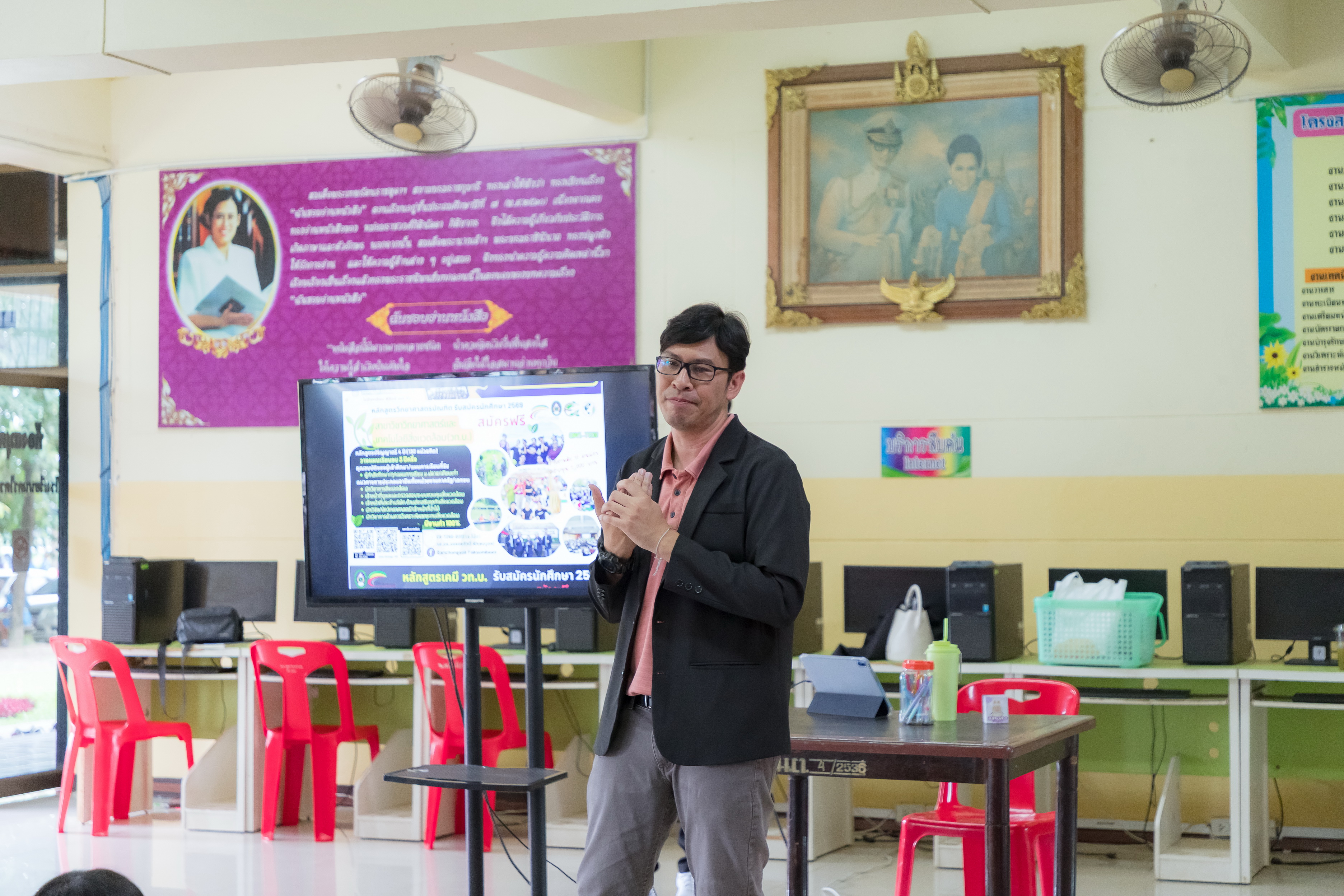คณะวิทยาศาสตร์และเทคโนโลยี มหาวิทยาลัยราชภัฏกําแพงเพชร จัดโครงการประชาสัมพันธ์รายวิชาและหลักสูตรไปยังผู้เรียนกลุ่มใหม่ (Non-age Group) สำหรับโรงเรียนมัธยมศึกษาในเขตพื้นที่การศึกษาจังหวัดกำแพงเพชรที่เข้าร่วมเครือข่ายลงนามความร่วมมือ ให้กับนักเรียนระดับชั้นมัธยมศึกษาปีที่ 6 โรงเรียนนครไตรตรึงษ์ จำนวน 95 คน เพื่อให้นักเรียนได้รับข้อมูลที่ถูกต้อง ชัดเจน และทันสมัยเกี่ยวกับการศึกษาต่อรวมถึงได้มีโอกาสแลกเปลี่ยนประสบการณ์กับผู้ที่เคยผ่านการศึกษานั้นมาก่อนซึ่งจะเป็นประโยชน์ ในการวางแผนอนาคตและตัดสินใจเลือกแนวทางที่เหมาะสมกับตนเองต่อๆ ไป ในวันที่ 1 กรกฎาคม 2568 เวลา 14.40-15.30 น. ณ โรงเรียนนครไตรตรึงษ์