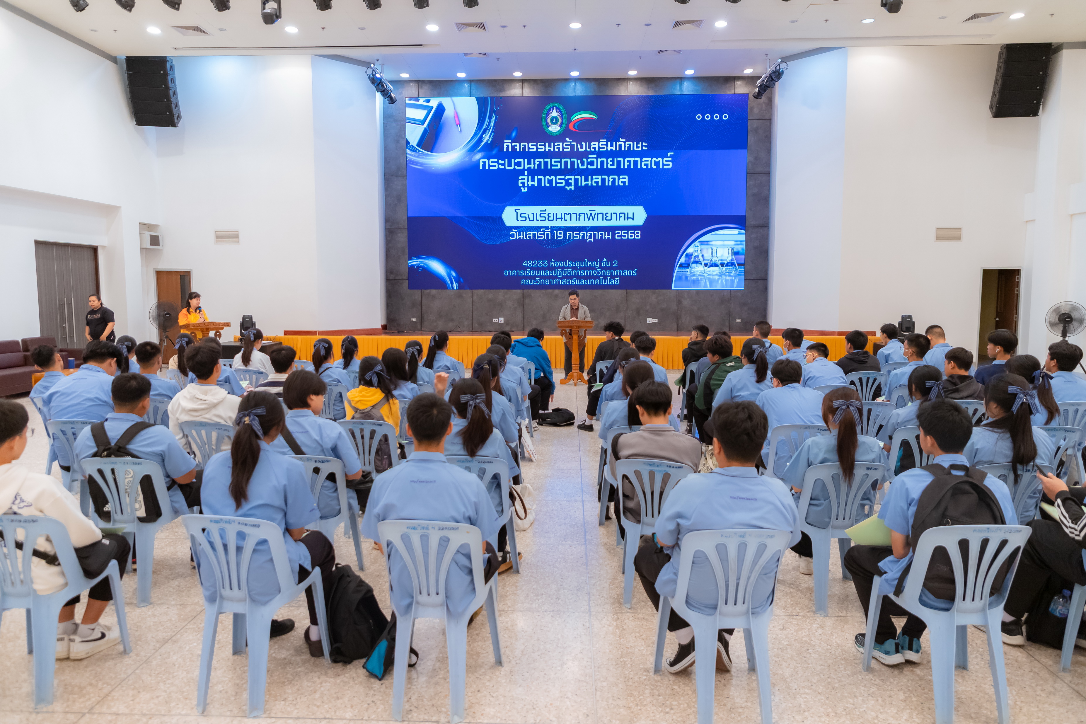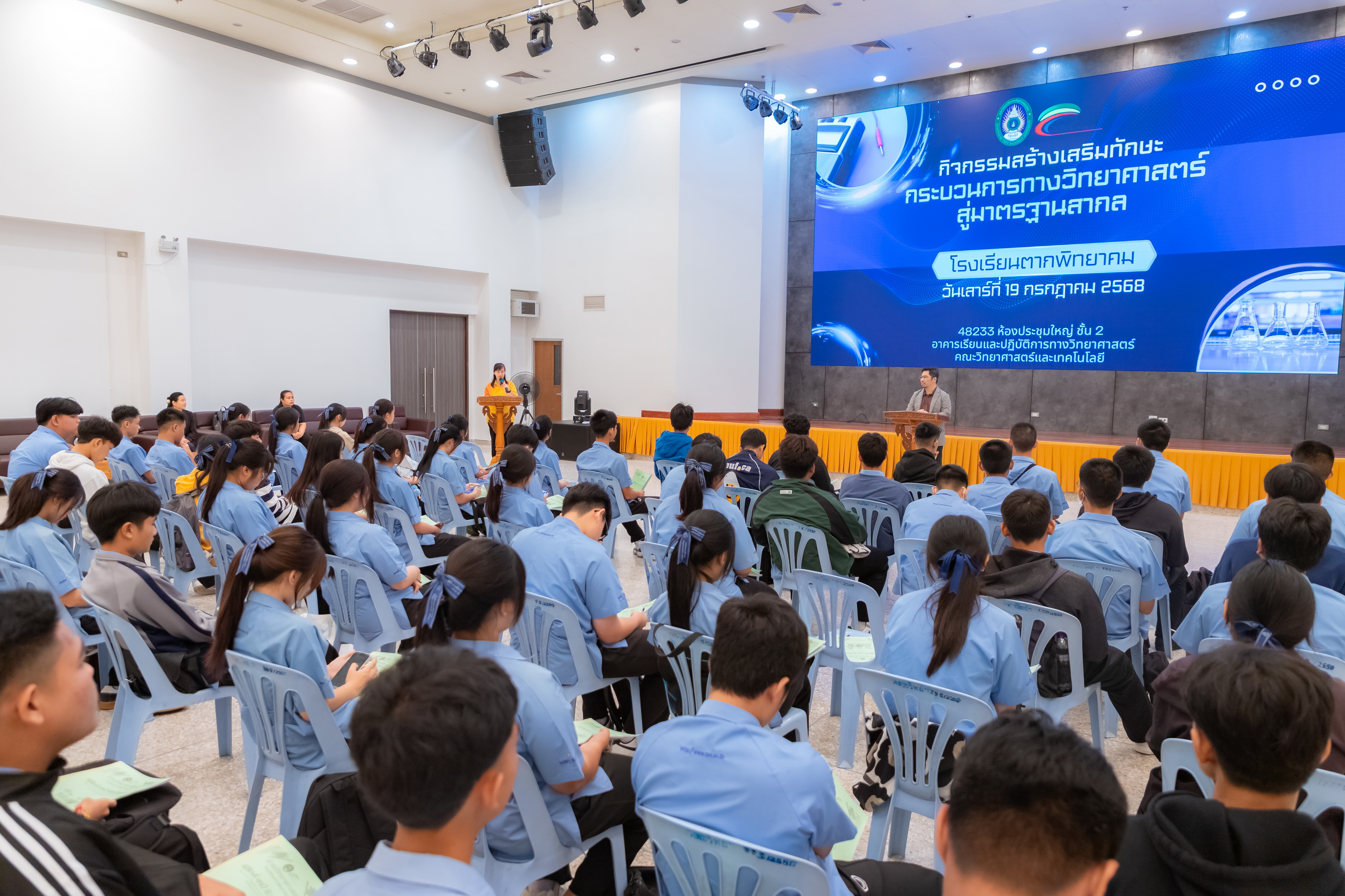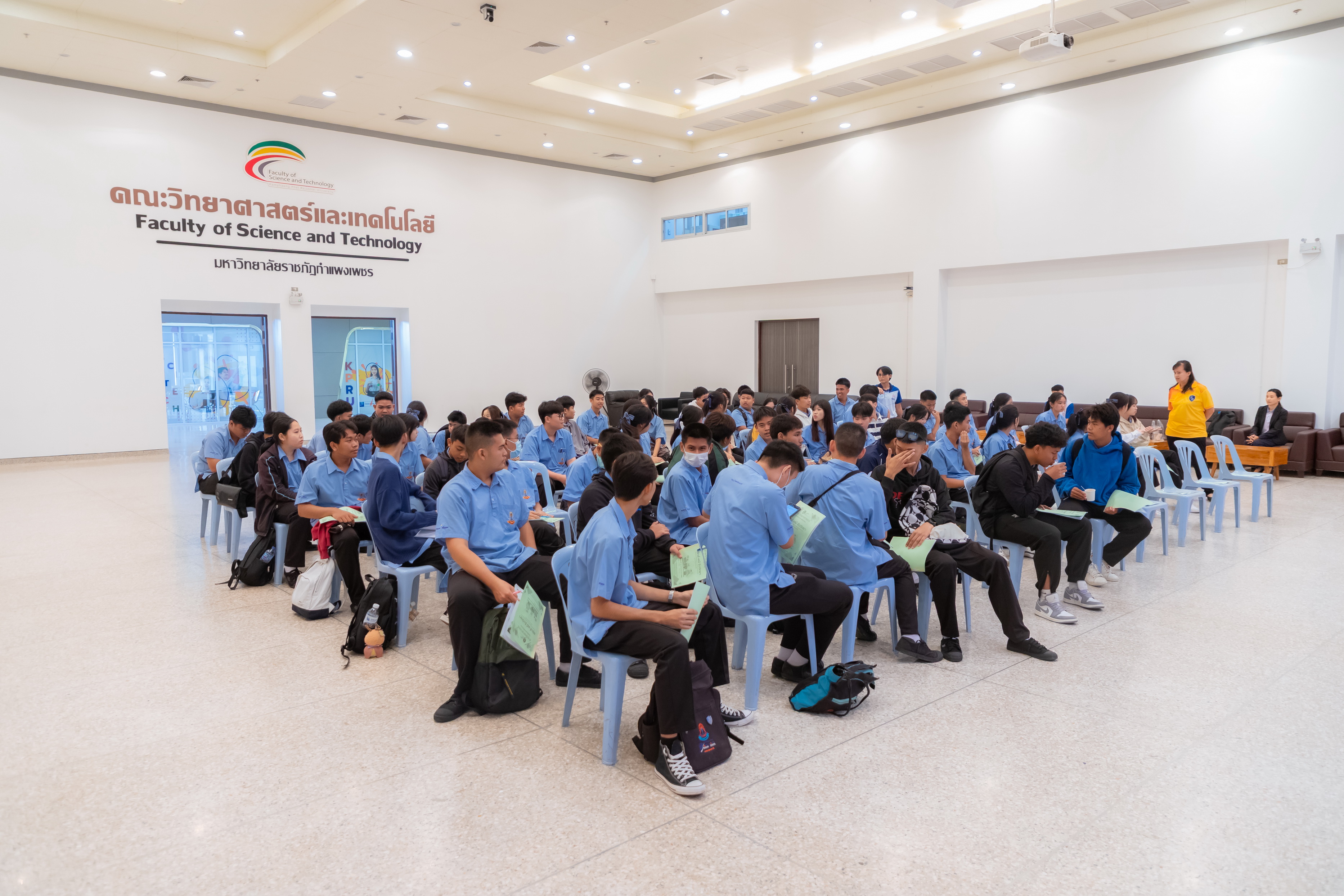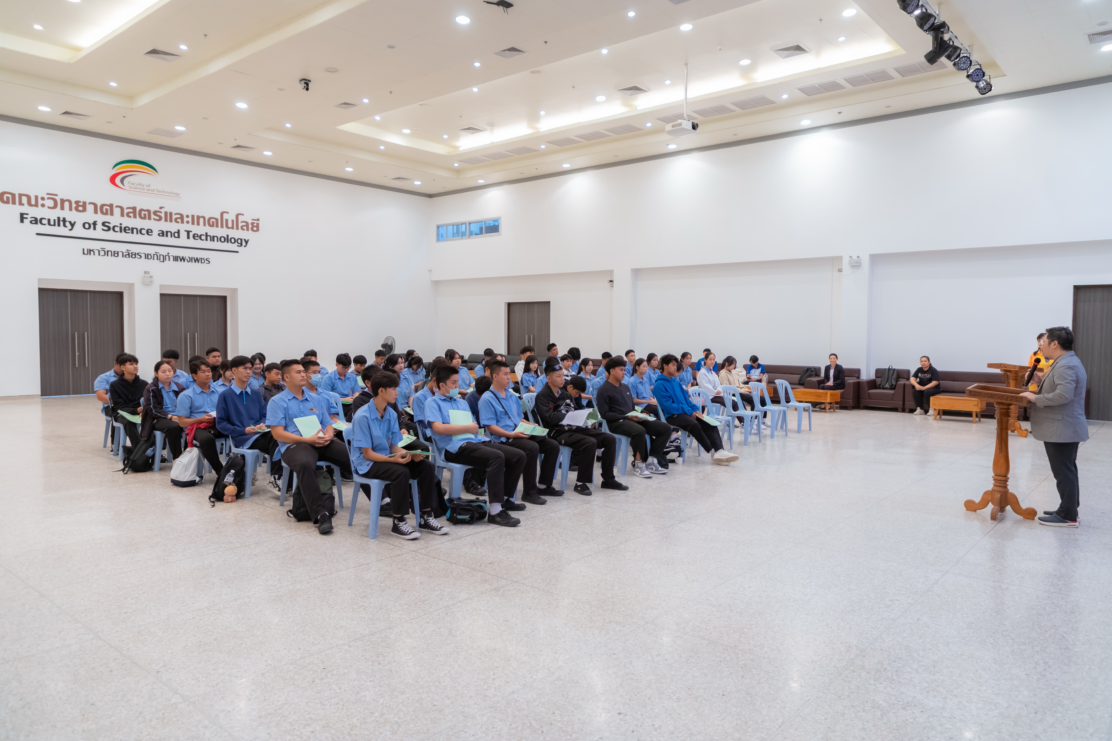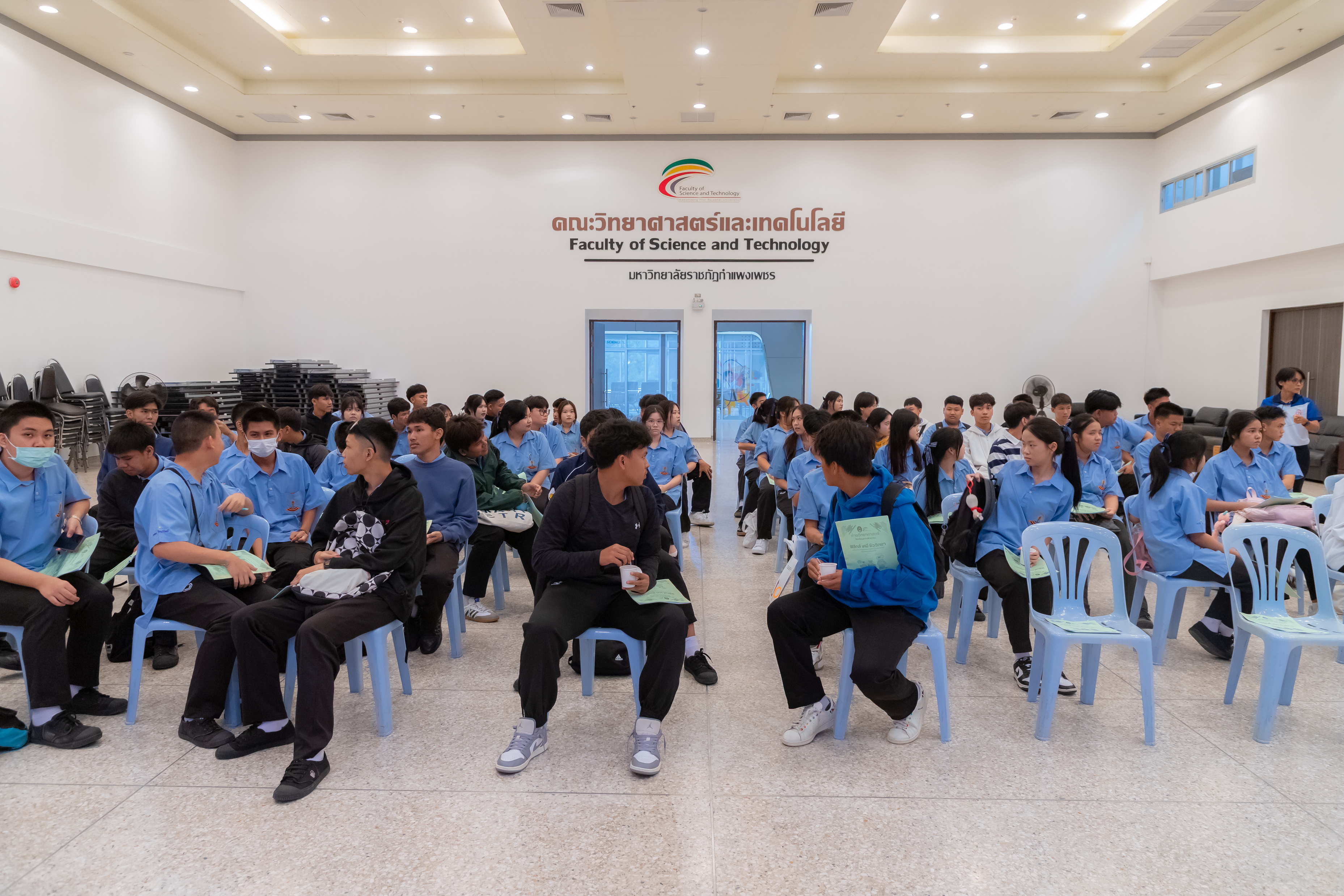คณะวิทยาศาสตร์และเทคโนโลยี มหาวิทยาลัยราชภัฏกำแพงเพชร ร่วมกับโครงการห้องเรียนพิเศษ โรงเรียนตากพิทยาคม จัดกิจกรรมสร้างเสริมทักษะกระบวนการทางวิทยาศาสตร์สู่มาตรฐานสากล ให้แก่นักเรียนระดับชั้นมัธยมศึกษาปีที่ 5/2-5/3 จำนวน 68 คน เพื่อพัฒนาและส่งเสริมผู้มีความสามารถพิเศษทางวิทยาศาสตร์และเทคโนโลยีให้ได้รับการพัฒนาอย่างเต็มศักยภาพเพื่อเป็นฐานในการพัฒนากำลังคนด้านวิทยาศาสตร์ของประเทศ และให้นักเรียนได้รู้จักแสวงหาความรู้และประสบการณ์จากแหล่งเรียนรู้ด้วยตนเอง วันเสาร์ที่ 19 กรกฎาคม พ.ศ. 2568 เวลา 08.30-15.00 น. อาคารเรียนและปฏิบัติการทางวิทยาศาสตร์ คณะวิทยาศาสตร์และเทคโนโลยี มหาวิทยาลัยราชภัฏกำแพงเพชร กิจกรรมหลักสูตรประกอบด้วย สาขาวิชาวิทยาศาสตร์ศึกษา วิชาเอกฟิสิกส์ คลื่น แสงและทัศนูปกรณ์ สาขาวิชาเคมี การสกัดน้ำมันหอมระเหย สาขาวิชาวิทยาศาสตร์ศึกษา วิชาเอกชีววิทยา ค่ายเทคนิคปลอดเชื้อ