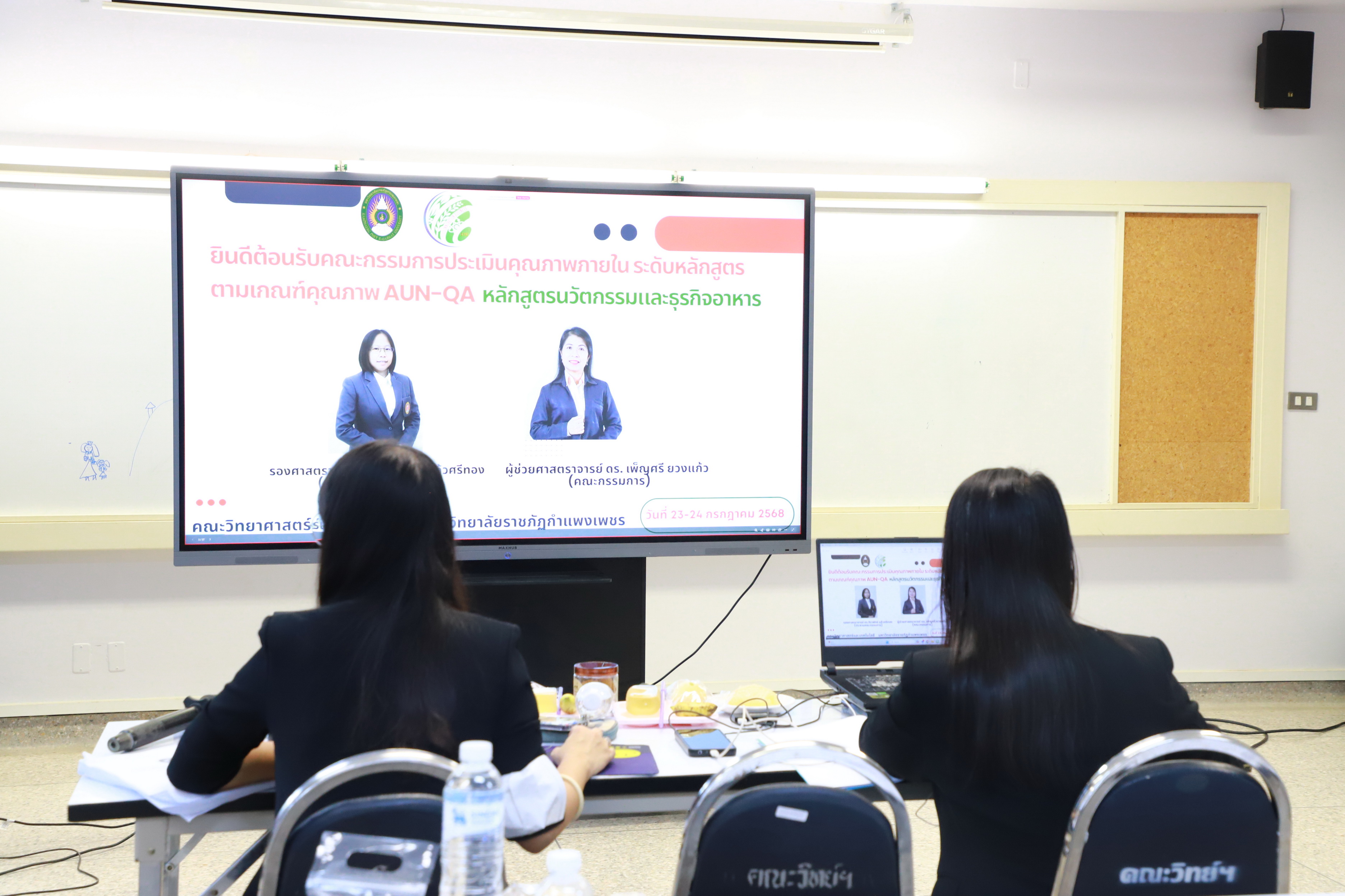 หลักสูตรวิทยาศาสตรบัณฑิต สาขาวิชานวัตกรรมและธุรกิจอาหาร คณะวิทยาศาสตร์และเทคโนโลยี มหาวิทยาลัยราชภัฏกำแพงเพชร จัดกิจกรรมตรวจประเมินคุณภาพการศึกษาภายในตามเกณฑ์ AUN-QA หลักสูตรสาขาวิชานวัตกรรมและธุรกิจอาหาร ระหว่างวันที่ 23-24 กรกฎาคม พ.ศ. 2568 โดยทำการประเมินแบบกึ่ง Site visit/ออนไลน์ ณ อาคารเรียนและปฏิบัติการทางวิทยาศาสตร์ (อาคาร 48) มหาวิทยาลัยราชภัฏกำแพงเพชร และมีการสัมภาษณ์ผู้มีส่วนได้ส่วนเสียผ่านการใช้โปรแกรมการสื่อสารออนไลน์