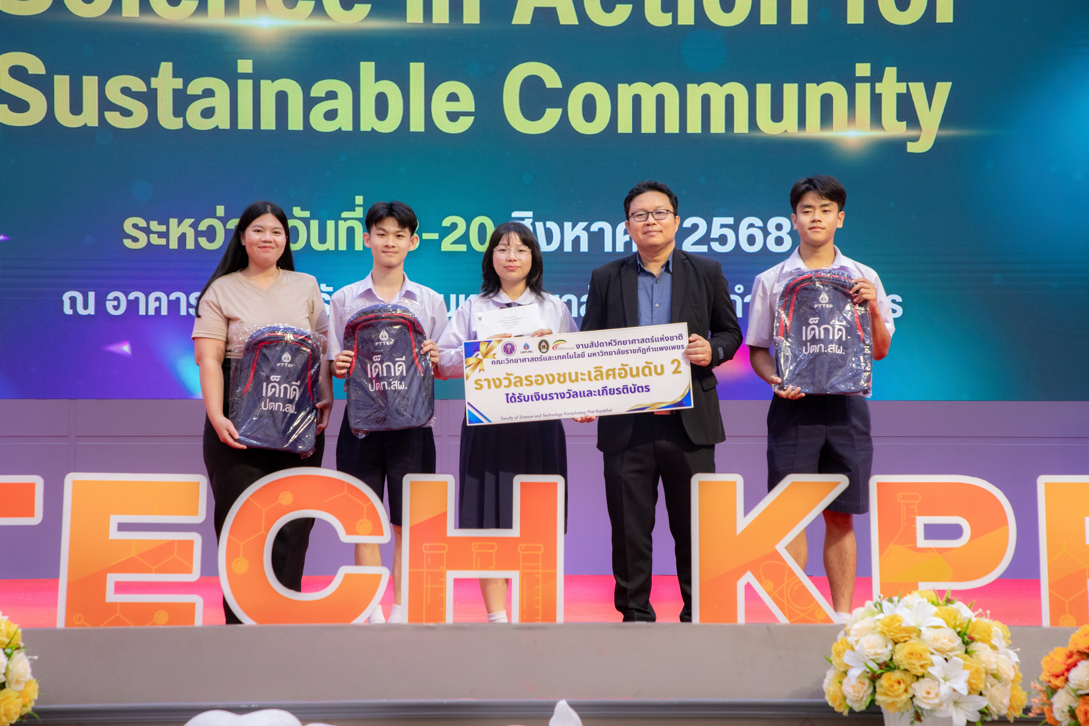 คณะวิทยาศาสตร์และเทคโนโลยี มหาวิทยาลัยราชภัฏกําแพงเพชร จัดพิธีมอบรางวัล ในงานสัปดาห์วิทยาศาสตร์แห่งชาติ ส่วนภูมิภาค ประจำปี 2568 ให้กับผู้เข้าแข่งขันที่ได้รับรางวัลชนะเลิศ รางวัลรองชนะเลิศอันดับ 1 รางวัลรองชนะเลิศอันดับ 2 ของการประกวดแข่งขันทักษะทางวิทยาศาสตร์และเทคโนโลยี วันที่ 18-20 สิงหาคม พ.ศ. 2568 เวลา 08.30-16.30 น. ณ ห้องประชุมราชพฤกษ์ ชั้น 3 อาคารทีปังกรรัศมีโชติ มหาวิทยาลัยราชภัฏกำแพงเพชร