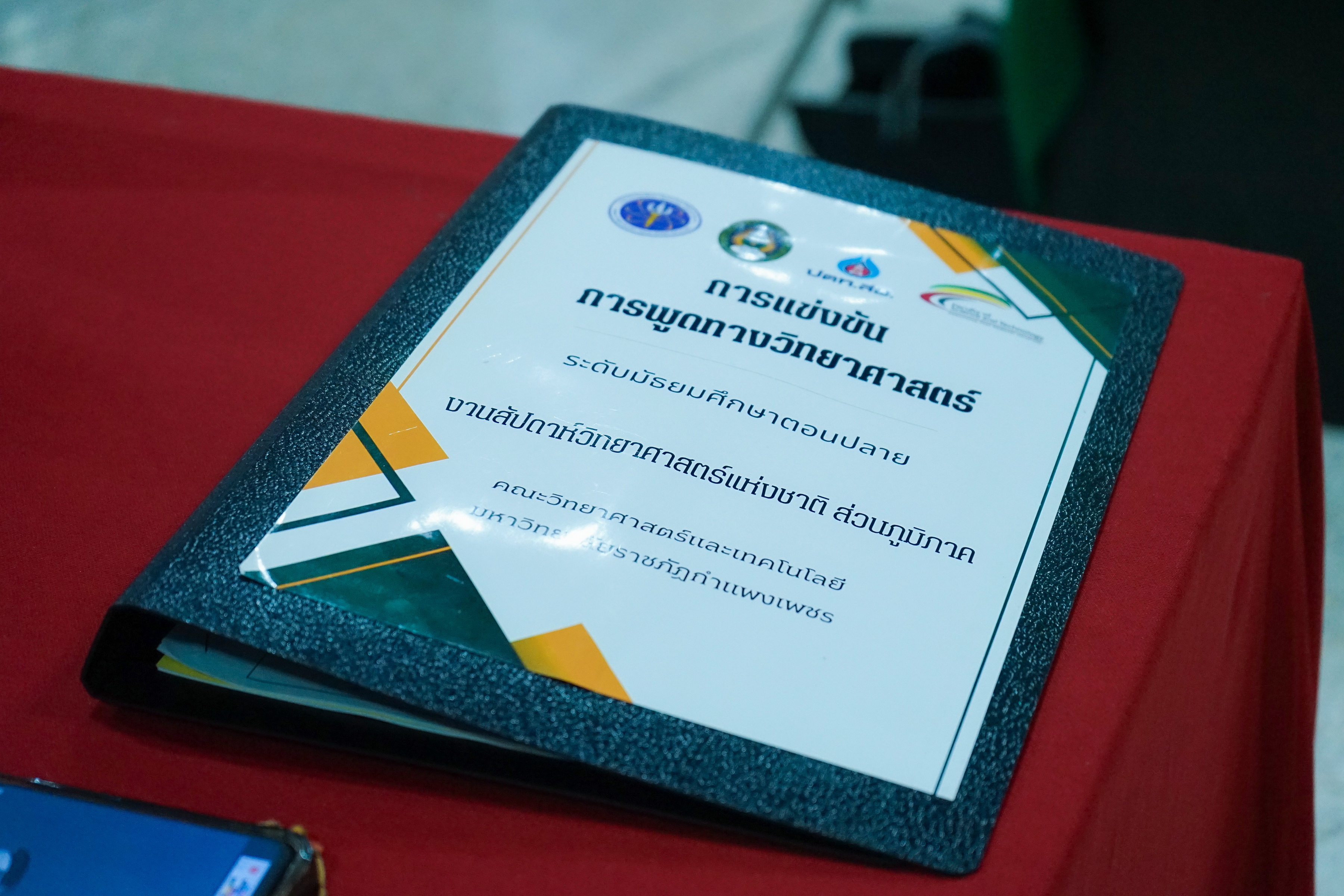 คณะวิทยาศาสตร์และเทคโนโลยี มหาวิทยาลัยราชภัฏกําแพงเพชร จัดการแข่งขันการพูดทางวิทยาศาสตร์ ระดับประถมศึกษา ระดับมัธยมศึกษาตอนต้น ระดับมัธยมศึกษาตอนปลาย ในงานสัปดาห์วิทยาศาสตร์แห่งชาติ ส่วนภูมิภาค ประจำปี 2568 ประเภทเดี่ยว วันที่ 20 สิงหาคม พ.ศ. 2568 เวลา 08.00-17.00 น. ณ ห้องทองกวาว ห้องกาซะลอง อาคารทีปังกรรัศมีโชติ