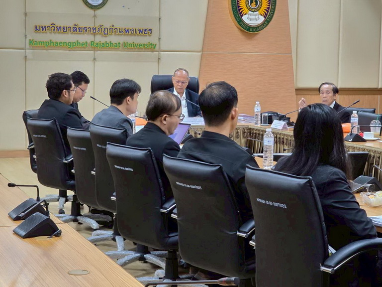คณะวิทยาศาสตร์และเทคโนโลยี มหาวิทยาลัยราชภัฎกําแพงเพชร รับการติดตามผลการดำเนินงานของมหาวิทยาลัย คณะ และหน่วยงานที่มีฐานะเทียบเท่าคณะ จากคณะกรรมการติดตาม ตรวจสอบและประเมินผลงานของมหาวิทยาลัยราชภัฎกำแพงเพชร เพื่อติดตาม ตรวจสอบ และประเมินผลการดำเนินงานของอธิการบดี คณบดี และหัวหน้าหน่วยงานที่มีฐานะเทียบเท่าคณะ ในวันที่ 17 พฤศจิกายน พ.ศ. 2568 เวลา 14:30-15:30 น. ณ ห้องประชุมรวงผึ้ง ชั้น 8 อาคารเรียนรวมและอำนวยการ มหาวิทยาลัยราชภัฏกำแพงเพชร