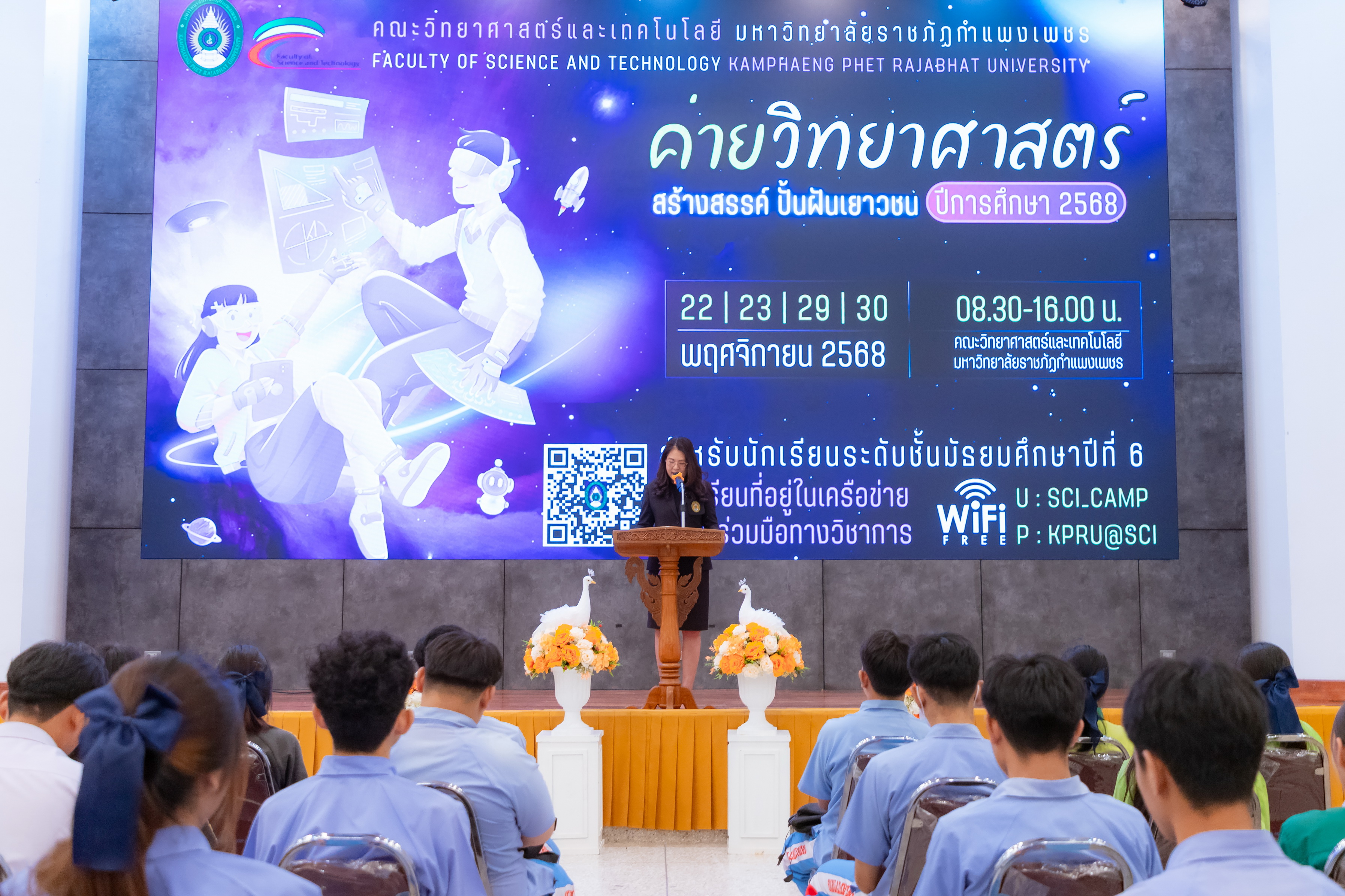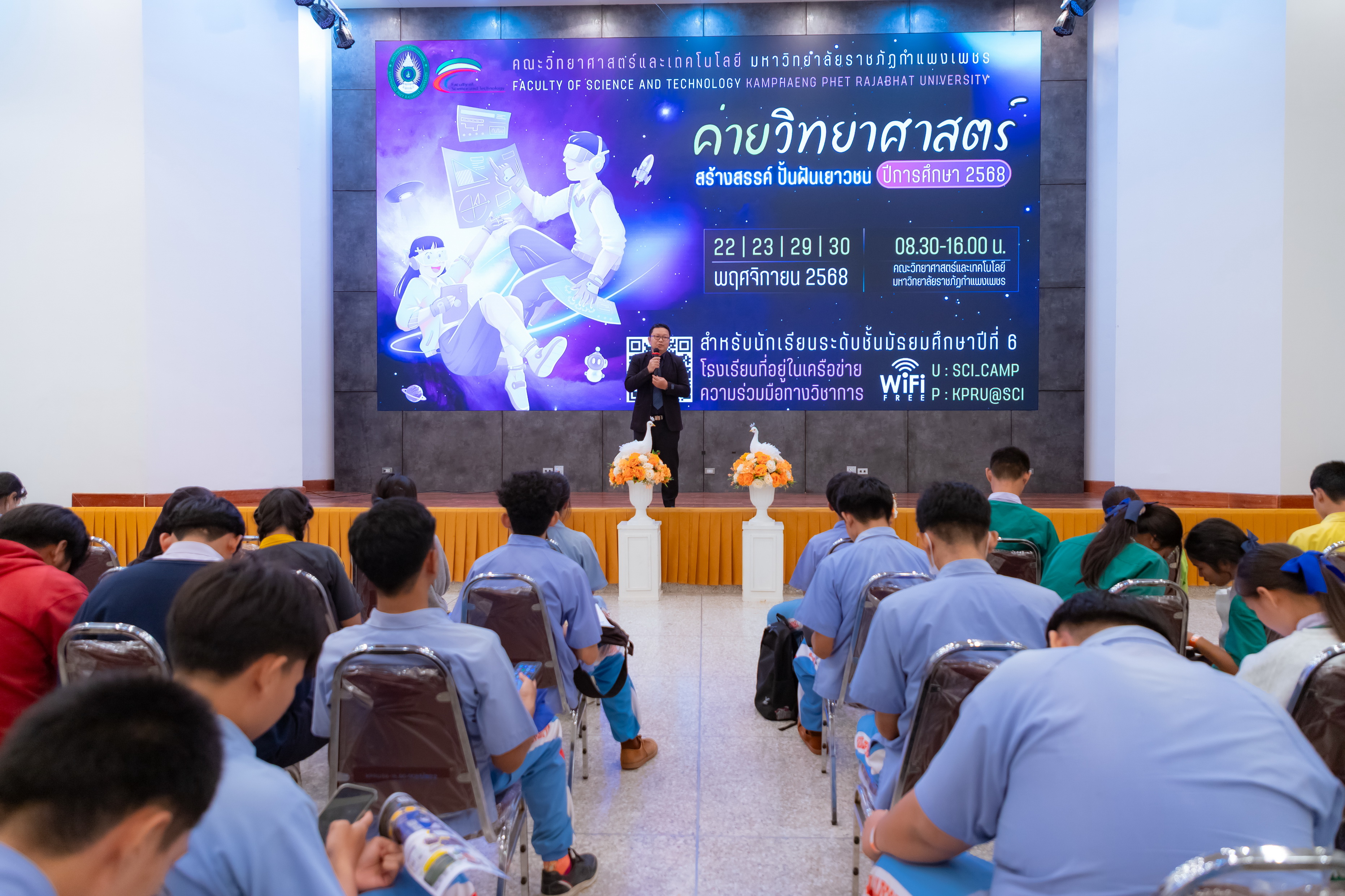 คณะวิทยาศาสตร์และเทคโนโลยี มหาวิทยาลัยราชภัฏกำแพงเพชร จัดกิจกรรมค่ายวิทยาศาสตร์สร้างสรรค์ ปั้นฝันเยาวชน ปีการศึกษา 2568 "ผู้เข้าร่วมกิจกรรม ได้แก่ นักเรียนระดับชั้นมัธยมศึกษาปีที่ 6 ทุกแผนการเรียน จากโรงเรียนในเครือข่ายความร่วมมือทางวิชาการ จำนวน 9 โรงเรียน ๆ ละ 30 คน ได้แก่ โรงเรียนพิไกรวิทยา โรงเรียนเฉลิมพระเกียรติสมเด็จพระศรีนครินทร์ กำแพงเพชรฯ โรงเรียนขาณุวิทยา โรงเรียนเรืองวิทย์พิทยาคม โรงเรียนทุ่งทรายวิทยา โรงเรียนหนองกองพิทยาคม โรงเรียนองค์การบริหารส่วนจังหวัดกำแพงเพชร โรงเรียนวชิรปราการวิทยาคม โรงเรียนนครไตรตรึงษ์" การจัดกิจกรรมดังกล่าวมีวัตถุประสงค์เพื่อส่งเสริมให้มีความรู้และทักษะ ด้านวิทยาศาสตร์และเทคโนโลยีที่สามารถประยุกต์ใช้ได้ในชีวิตจริง สร้างการเรียนรู้ผ่านการลงมือปฏิบัติจริง การคิดวิเคราะห์ การแก้ปัญหา การทำงานเป็นทีม การใช้เทคโนโลยีอย่างสร้างสรรค์ และสร้างแรงบันดาลใจให้เยาวชน เห็นความสำคัญของวิทยาศาสตร์และเทคโนโลยี วันเสาร์ที่ 22 พฤศจิกายน พ.ศ. 2568 เวลา 08.30-16.00 น. ณ อาคารเรียนและปฏิบัติการทางวิทยาศาสตร์ คณะวิทยาศาสตร์และเทคโนโลยี " กิจกรรมประกอบด้วย