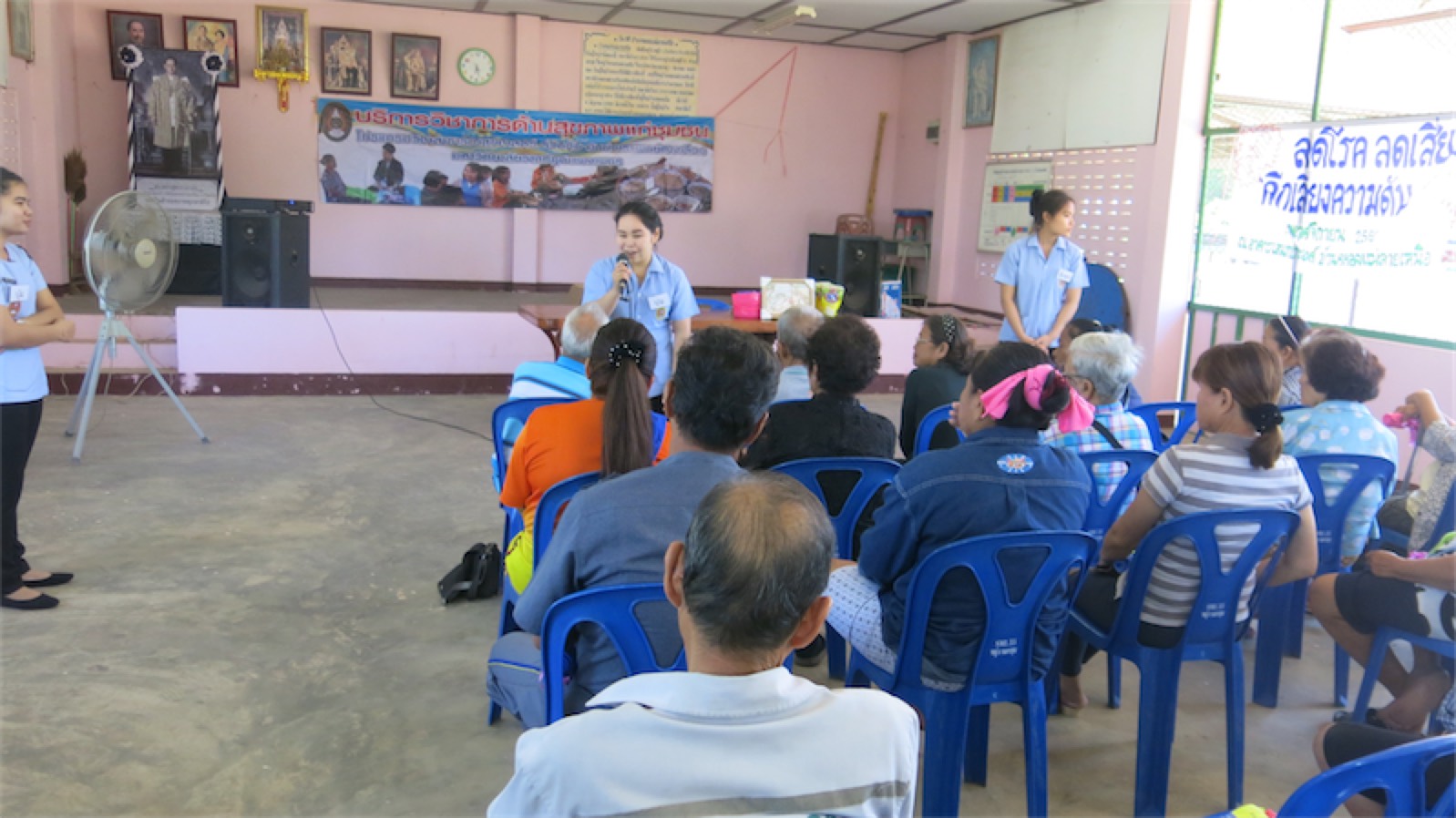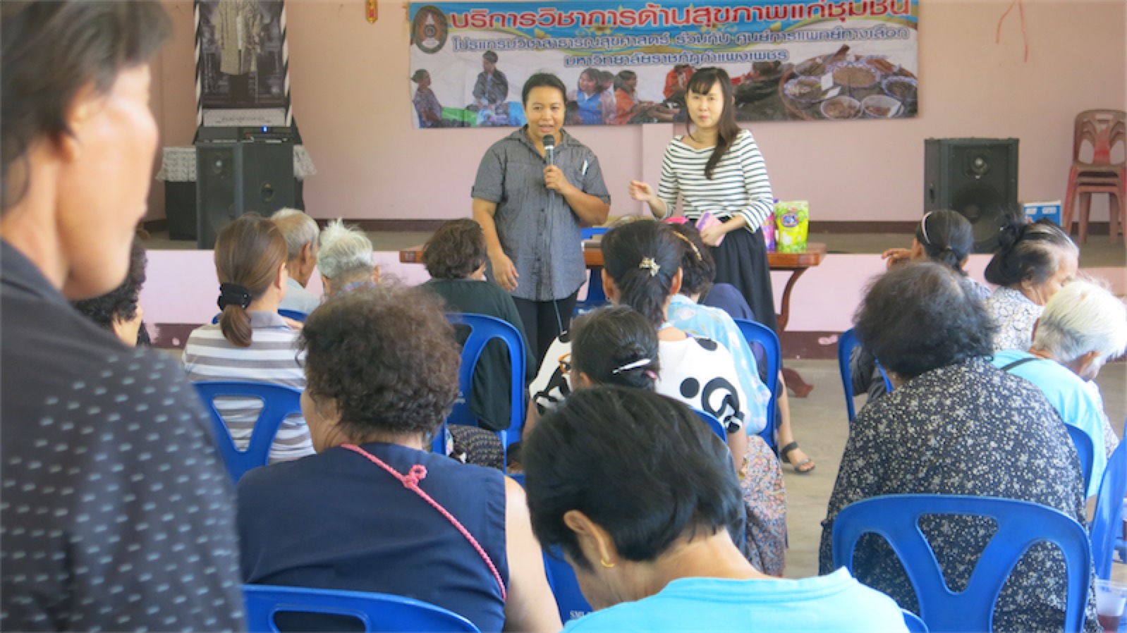 จัดกิจกรรมบริการวิชาการด้านสุขภาพ ในวันที่ 17 พฤศจิกายน 2559 เวลา 08.00-16.30 น. ณ อาคารเอนกประสงค์บ้านคลองแม่ลายเหนือ อำเภอเมือง จังหวัดกำแพงเพชร โดย ประธานโปรแกรมวิชาสาธารณสุขศาสตร์ ให้กับ ผู้สูงอายุบ้านนครชุม จำนวน 30 คน วิทยากรโดย อาจารย์พิมลพรรณ ดีเมฆ