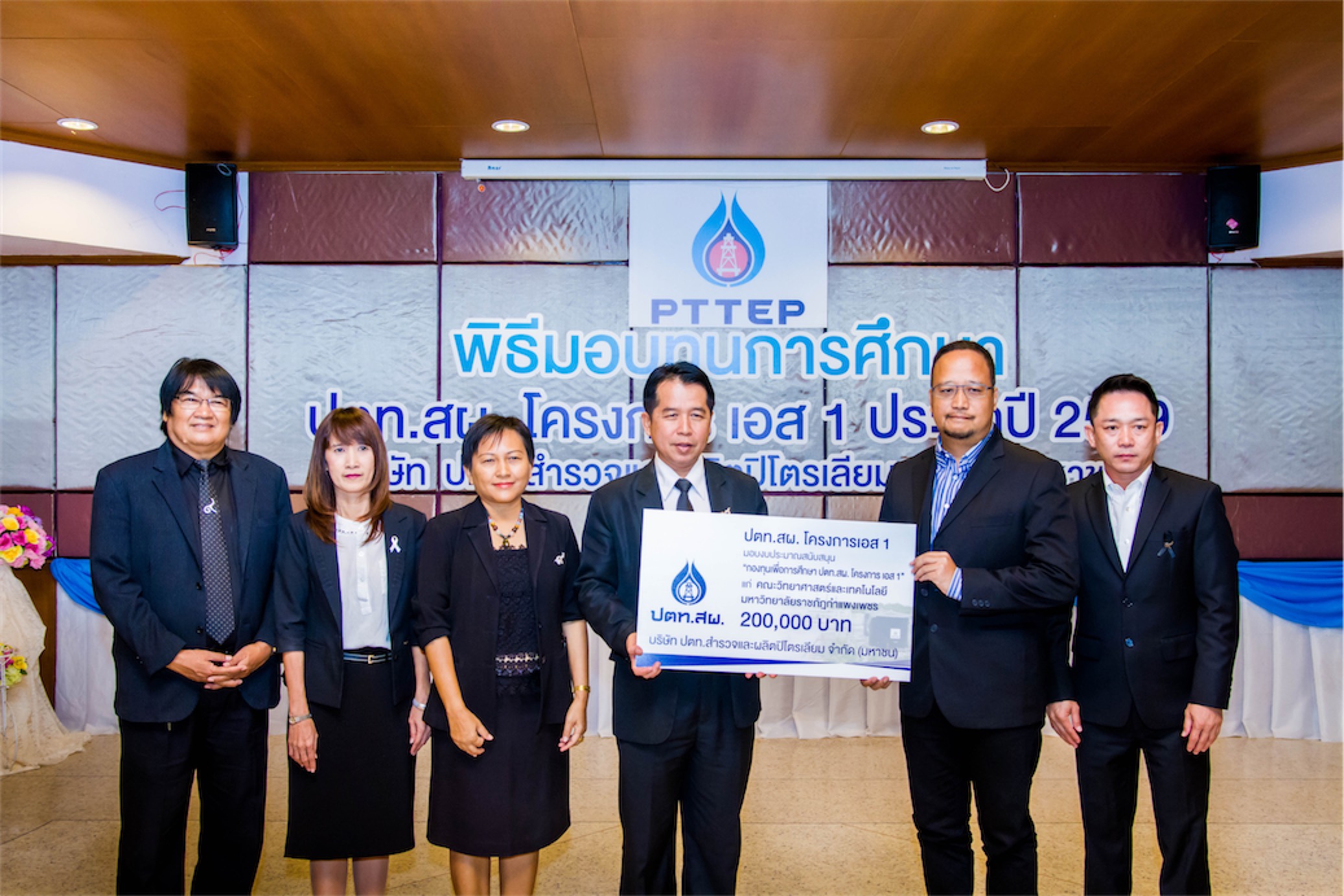วันที่ 1 ธันวาคม 2559 บริษัท ปตท.สำรวจและผลิตปิโตรเลียม จำกัด (มหาชน) หรือ ปตท.สผ. มอบทุนการศึกษา ประจำปี 2559 ให้แก่นักศึกษามหาวิทยาลัยราชภัฏกำแพงเพชร และวิทยาลัยเทคนิคกำแพงเพชร เพื่อสนับสนุนทุนการศึกษาให้แก่นักเรียนและนักศึกษา ที่มีความมานะพยายามในการศึกษาและมีความประพฤติดี จำนวน 71 ทุน เป็นจำนวนเงิน 584,000 บาท แบ่งออกเป็น 1. ทุนการศึกษาวิทยาลัยเทคนิคกำแพงเพชร 20 ทุน ๆ ละ 5,000 บาท 2. กองทุนเพื่อการศึกษา คณะวิทยาศาสตร์และเทคโนโลยี มหาวิทยาลัยราชภัฏกำแพงเพชร 24 ทุน ๆ ละ 8,300 บาท 3. ทุนการศึกษาคณะต่าง ๆ ของมหาวิทยาลัยราชภัฏกำแพงเพชร 20 ทุน ๆ ละ 10,000 บาท 4. ทุนการศึกษา ปตท.สผ.เพชร เอส -1 ซึ่งเป็นทุนต่อเนื่องจนสำเร็จการศึกษา จำนวน 7 ทุน นอกจากนี้ ปตท.สผ. ยังได้ส่งเสริมทักษะการเรียนรู้ด้านภาษาอังกฤษแก่โรงเรียนในพื้นที่ปฏิบัติงาน โดยได้รับการสนับสนุนจากงานวิเทศสัมพันธ์และกิจการอาเซียน สำนักงานอธิการบดี มหาวิทยาลัยราชภัฏกำแพงเพชร ในการจัดหาครูต่างชาติเพื่อปฏิบัติหน้าที่ในการสอนภาษาอังกฤษในโรงเรียน 6 แห่ง จำนวน 9 คน งบประมาณทั้งสิ้น 3,500,000 บาท ณ ห้องประชุมกาสะลอง ชั้น 2 อาคารทีปังกรรัศมีโชติ