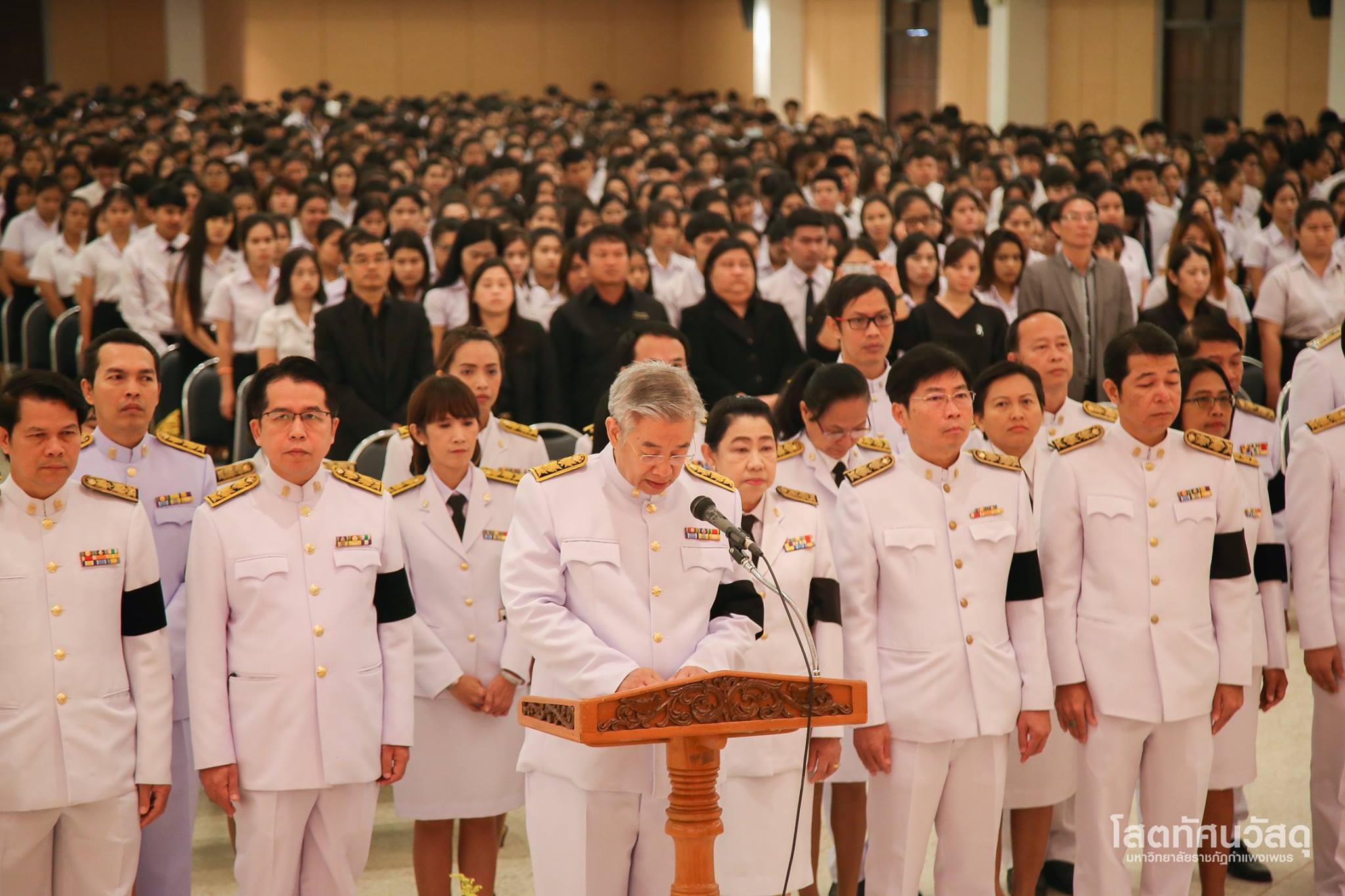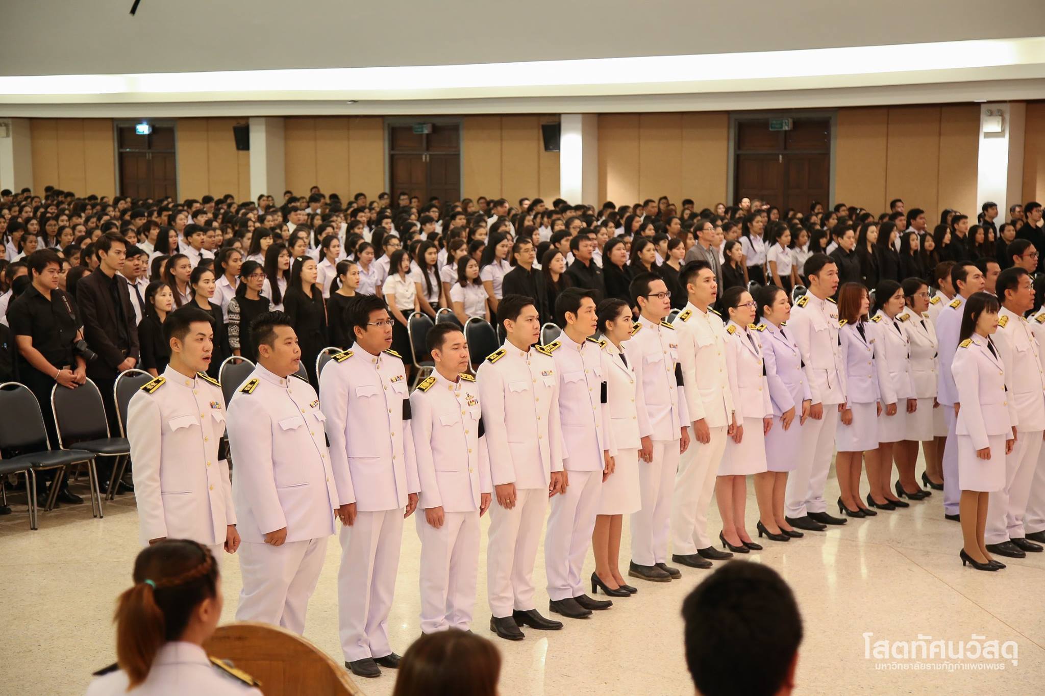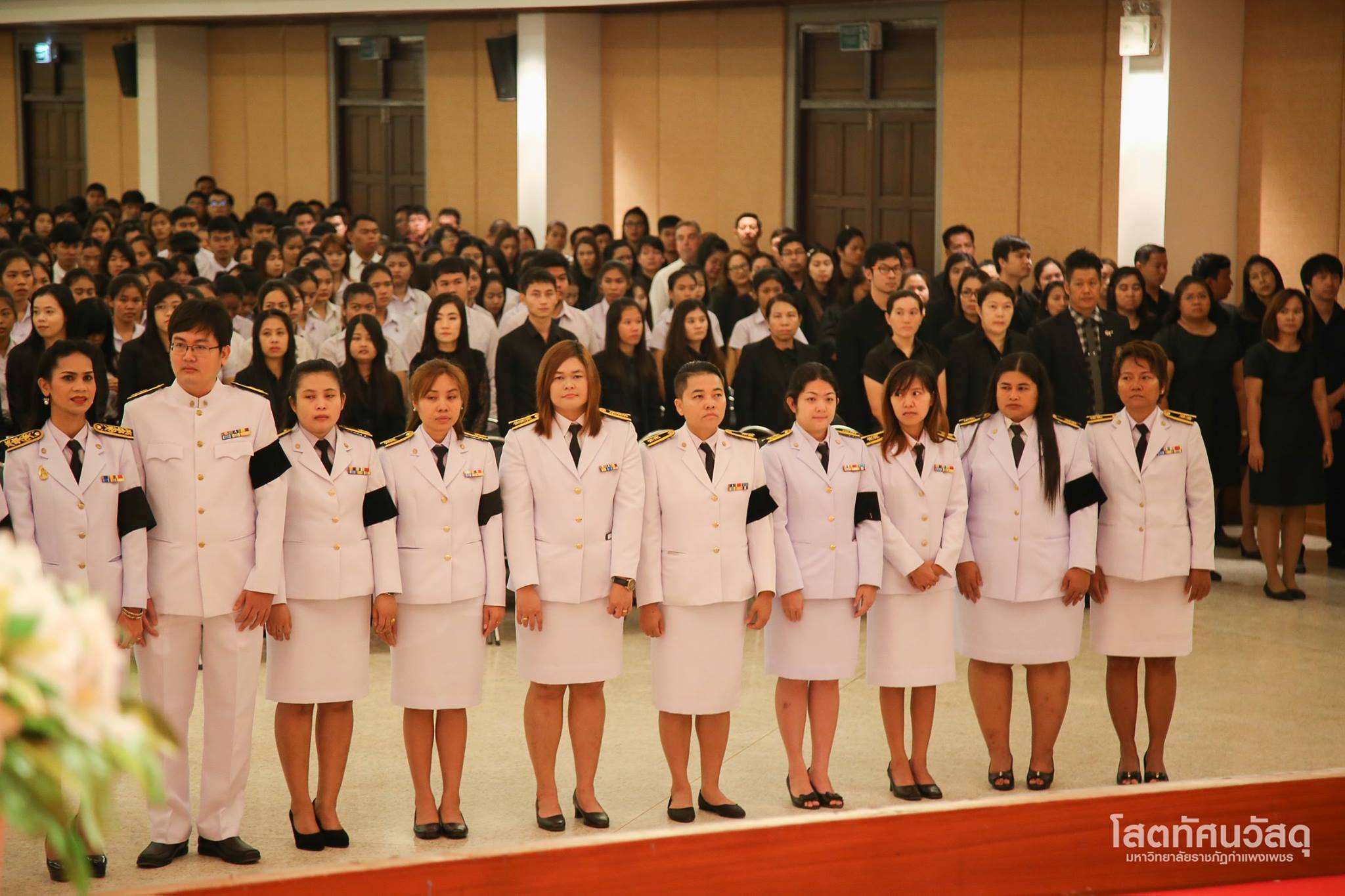 มหาวิทยาลัยราชภัฏทั่วประเทศ น้อมสำนึกในพระมหากรุณาธิคุณและแสดงความจงรักภักดี จัดพิธี ถวายคำปฏิญาณและถวายพระพรชัยมงคลสมเด็จพระเจ้าอยู่หัว รัชกาลที่ 10 ในวโรกาสเสด็จขึ้นทรงราชย์สืบสันตติวงศ์ และสำนึกในพระมหากรุณาธิคุณที่มีต่อชาวราชภัฏทุกแห่ง ในการเสด็จพระราชดำเนินไปในพิธีพระราชทานปริญญาบัตรอย่างต่อเนื่อง เป็นปีที่ 36 ----> เมื่อวันที่ 7 ธันวาคม 2559 เวลา 09.00 น. มหาวิทยาลัยราชภัฏทั่วประเทศน้อมสำนึกในพระมหากรุณาธิคุณล้นเกล้าล้นกระหม่อม ที่สมเด็จพระเจ้าอยู่หัวมหาวชิราลงกรณ บดินทรเทพยวรางกูร เสด็จขึ้นทรงราชย์สืบราชสันตติวงศ์ จึงได้พร้อมใจกันจัดพิธีถวายคำปฏิญาณและถวายพระพรชัยมงคลฯ เพื่อแสดงความจงรักภักดี และสำนึกในพระมหากรุณาธิคุณที่พระองค์ท่านทรงมีต่อชาวราชภัฏอย่างหาที่สุดมิได้ โดยได้เสด็จพระราชดำเนินแทนพระองค์ ไปในพิธีพระราชทานปริญญาบัตรแก่บัณฑิตมหาวิทยาลัยราชภัฏทั่วประเทศ นับตั้งแต่ปีพุทธศักราช 2521 เป็นต้นมาจนถึงปัจจุบัน เป็นปีที่ 36 รวมจำนวน 75 ครั้ง โดยมีบัณฑิตที่ได้รับพระราชทานปริญญาบัตร จำนวนทั้งสิ้น 2,126,324 คน (สองล้านหนึ่งแสนสองหมื่นหกพันสามร้อยยี่สิบสี่คน) ยังความซาบซึ้ง และปลื้มปีติยินดีแก่บัณฑิต ญาติพี่น้อง และมหาวิทยาลัยราชภัฏทุกแห่ง ----> โดยที่มหาวิทยาลัยราชภัฏกำแพงเพชร รศ.ดร.โสรีช์ โพธิ์แก้ว นายกสภามหาวิทยาลัยราชภัฏกำแพงเพชร ได้เปิดกรวย หน้าพระบรมฉายาลักษณ์ รัชกาลที่ 10 พร้อมอ่านราชกิจจานุเบกษา ประกาศสภานิติบัญญัติแห่งชาติ เรื่อง อัญเชิญองค์พระรัชทายาทขึ้นทรงราชย์เป็นพระมหากษัตริย์ ในการนี้ รศ.สุวิทย์ วงษ์บุญมาก อธิการบดีมหาวิทยาลัยราชภัฏกำแพงเพชร ได้กล่าวถวายคำปฏิญาณ ว่าจะธำรงพระเกียรติและเทิดทูนพระบารมีด้วยใจภักดิ์ โดยจะมุ่งปฏิบัติภารกิจทั้งปวงเพื่อสนองพระราโชบายด้านการศึกษาและโครงการในพระราชดำริน้อยใหญ่ด้วยความมุ่งมั่นเต็มกำลัง พร้อมสนองงานด้วยความวิริยะ อุตสาหะเป็นราชพลี สร้างสรรค์ประโยชน์แก่ประเทศชาติด้วยความเที่ยงธรรม ภายใต้พระบารมีปกเกล้าปกกระหม่อม ให้สมกับพระมหากรุณาธิคุณที่ทรงมีแก่ชาวราชภัฏทั่วประเทศเสมอมา จากนั้น ได้ทูลถวายพระพรชัยมงคล ด้วยคำว่า “ขอพระองค์ทรงพระเจริญ” 3 ครั้ง และร้องเพลงสรรเสริญพระบารมี พร้อมกันกับคณะผู้บริหาร คณาจารย์ บุคลากร นักศึกษา มหาวิทยาลัยราชภัฏกำแพงเพชร จำนวนทั้งสิ้นกว่า 2,500 คน โดยพร้อมเพรียงกัน ณ ห้องประชุมราชพฤกษ์ อาคารทีปังกรรัศมีโชติ มหาวิทยาลัยราชภัฏกำแพงเพชร