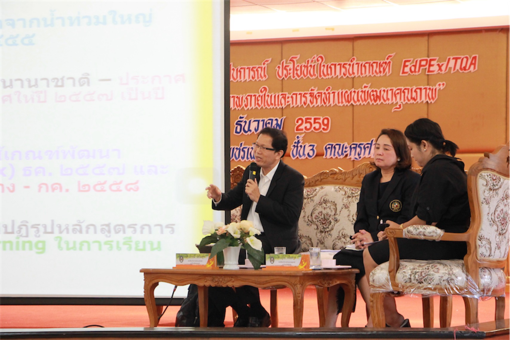 คณะวิทยาศาสตร์และเทคโนโลยี เข้าร่วม โครงการประชุมเสวนา การแลกเปลี่ยนประสบการณ์ ประโยชน์ในการนำเกณฑ์ EdPEx/TQA มาใช้ในการประกันคุณภาพภายใน และจัดทำแผนพัฒนาคุณภาพ วันที่ 21 ธันวาคม 2559 จัดโดย สำนักประกันคุณภาพการศึกษา มหาวิทยาลัยราชภัฏกำแพงเพชร มี รศ.สุวิทย์ วงษ์บุญมาก อธิการบดีฯ เป็นประธานในพิธีเปิด พร้อมด้วยผู้บริหาร คณาจารย์ เจ้าหน้าที่ และบุคลากรเข้าร่วมจำนวน 150 คน ซึ่งเชิญวิทยากรผู้ทรงคุณวุฒิ รศ.ปกรณ์ เสริมสุข คณบดีคณะวิทยาศาสตร์และเทคโนโลยี มหาวิทยาลัยธรรมศาสตร์ และดร.อุรีย์ เจี่ยสกุล คณบดีคณะบริหารธุรกิจและเศรษฐศาสตร์ มหาวิทยาลัยอัสสัมชัญ มาบรรยาย ณ คณะครุศาสตร์
