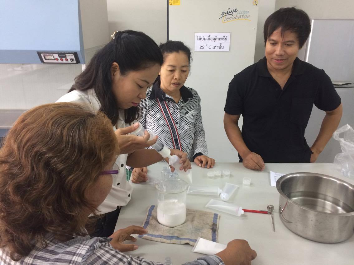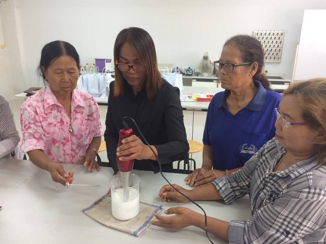 ศูนย์ส่งเสริมและตรวจสอบการผลิตตามมาตรฐานความปลอดภัยทางอาหาร จัดโครงการอบรมเชิงปฏิบัติการ เรื่องการผลิตเครื่องสำอางโฮมเมดจากวัตถุดิบในครัวเรือน ในวันที่ 11 มีนาคม 2560 ณ อาคารศูนย์ส่งเสริมฯ ในการนี้มีประชาชนจากตำบลท่าขุนราม และตำบลไตรตรึงษ์ อ.เมือง จ.กำแพงเพชร เข้าร่วมอบรมถึง 27 คน โดยผู้เข้าอบรมได้เรียนรู้การทำสบู่ ลิปบาล์ม โลชั่น และสครัปขัดผิว ซึ่งสามารถนำความรู้ไปใช้ประโยชน์ในการพัฒนาคุณภาพชีวิต หรืออาจนำไปต่อยอดในการผลิตเครื่องสำอางที่เป็นเอกลักษณ์เพื่อประโยชน์ทางธุรกิจภายในครัวเรือนหรือชุมชนในอนาคตได้