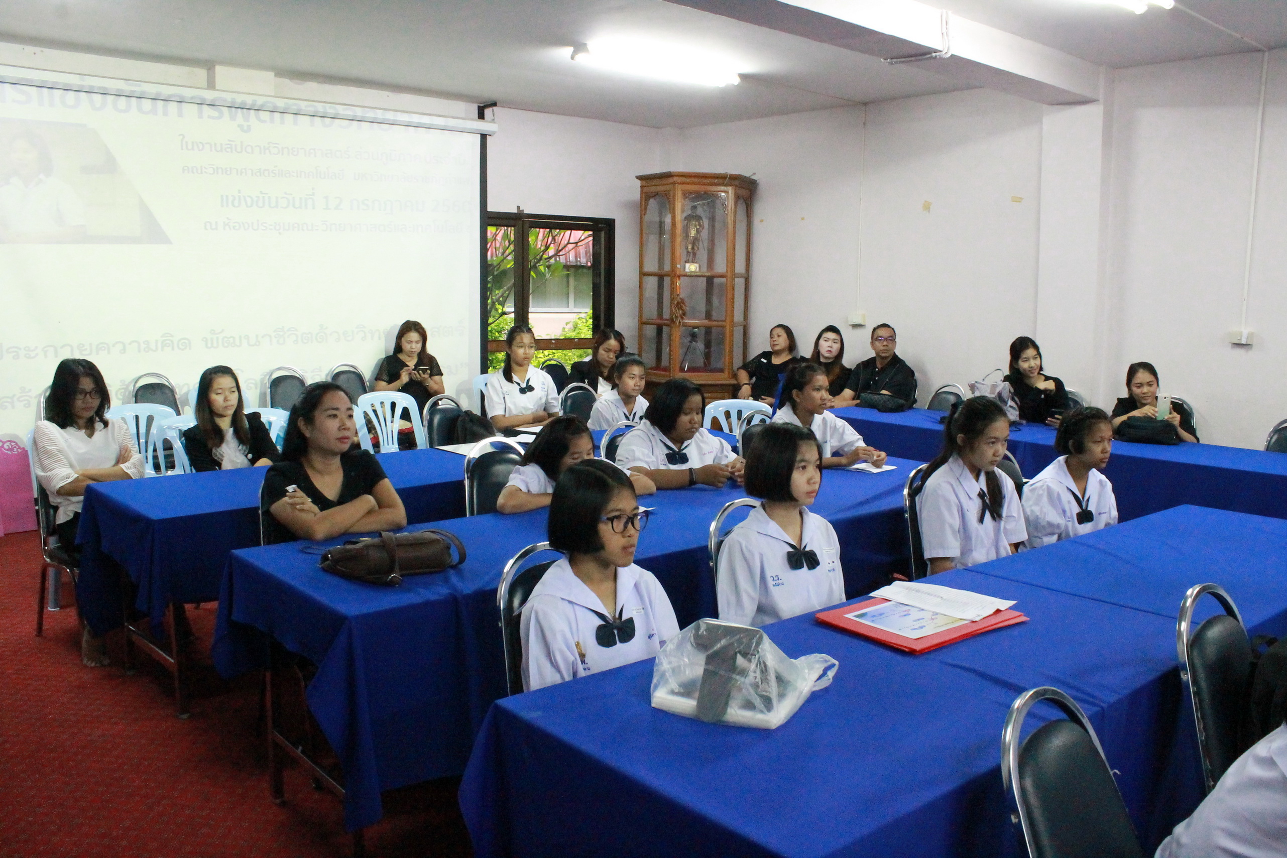 คณะวิทยาศาสตร์และเทคโนโลยี จัดการการแข่งขันการพูดทางวิทยาศาสตร์ ในวันที่ 12 กรกฎาคม 2560 เวลา 09.00-16.00 น. ณ ห้องประชุมคณะวิทยาศาสตร์และเทคโนโลยี ชั้น 1 โดย อาจารย์วิไลลักษณ์ สวนมะลิ ให้กับ นักเรียนในเขตจังหวัดกำแพงเพชรและจังหวัดตาก