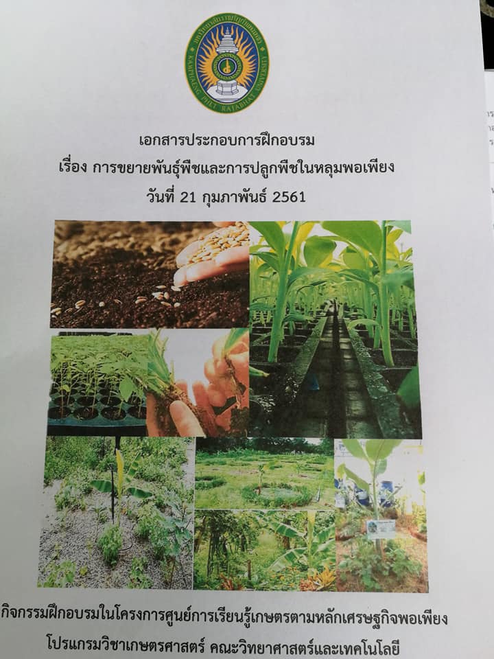 โปรแกรมวิชาเกษตรศาสตร์ จัดการอบรม เรื่อง การขยายพันธุ์พืชและการปลูกพืชในหลุมพอเพียง ในวันที่ 21 กุมภาพันธ์ 2561 เวลา 08.00-17.00 น. ณ ตำบลท่าขุนราม อำเภอเมือง จังหวัดกำแพงเพชร โดย ประธานโปรแกรมวิชาเกษตรศาสตร์ ให้กับ เกษตรกรและประชาชนผู้สนใจตำบลท่าขุนราม อำเภอเมือง จังหวัดกำแพงเพชร วิทยากรโดย อาจารย์ เจ้าหน้าที่โปรแกรมวิชาเกษตรศาสตร์