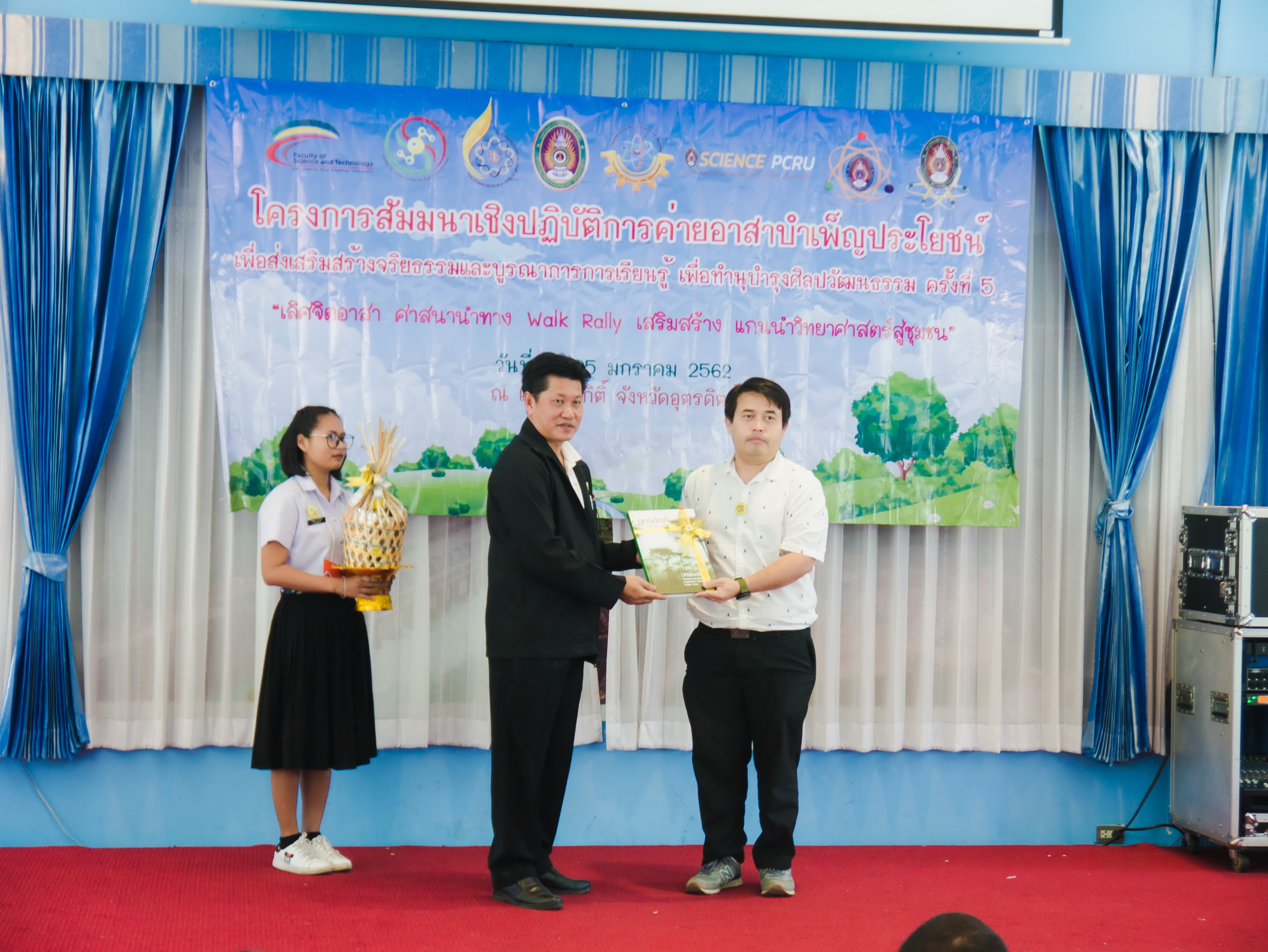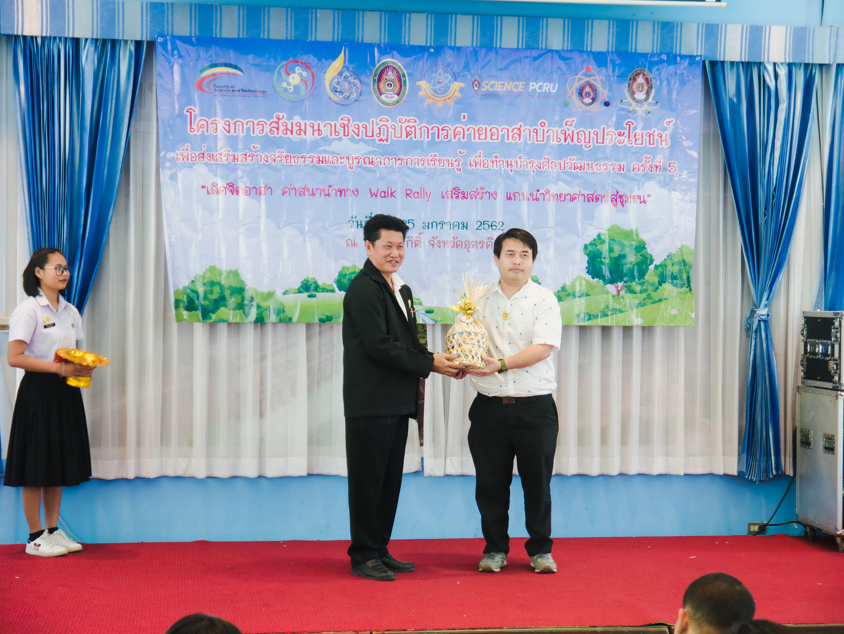 คณะวิทยาศาสตร์และเทคโนโลยี จัดสัมมนาเชิงปฏิบัติกาค่ายอาสาบำเพ็ญประโยชน์เพื่อส่งเสริมสร้างจริยธรรมและบูรณาการการเรียนรู้ เพื่อทำนุบำรุงศิลปวัฒนธรรม ครั้งที่ 5 ในวันที่ 23-25 มกราคม 2562 เวลา 08.00-17.00 น. ณ เขื่อนสิริกิติ์ อำเภอท่าปลา จังหวัดอุตรดิตถ์ โดย มหาวิทยาลัยราชภัฏอุตรดิตถ์ ให้กับ นักศึกษาสโมสรคณะวิทยาศาสตร์และเทคโนโลยี