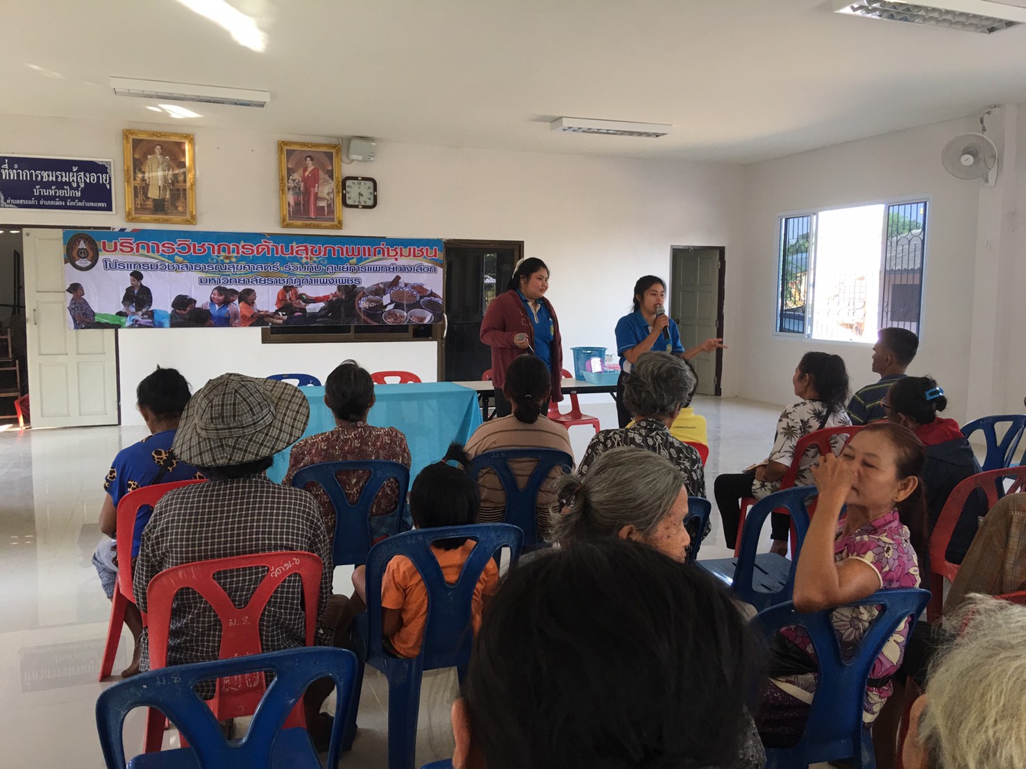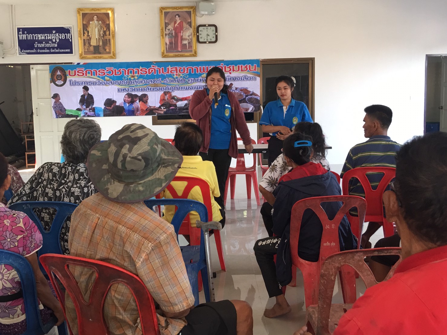 โปรแกรมวิชาสาธารณสุขศาสตร์ จัดกิจกรรมบริการวิชาการด้านสุขภาพ ในวันที่ 5 มีนาคม 2562 เวลา 08.00-17.00 น. ณ อาคารเอนกประสงค์บ้านห้วยปักษ์ ตำบลสระแก้ว อำเภอเมือง จังหวัดกำแพงเพชร โดย ประธานโปรแกรมวิชาสาธารณสุขศาสตร์ ให้กับ ผู้สูงอายุและประชาชนทั่วไปบ้านห้วยปักษ์ ตำบลสระแก้ว อำเภอเมือง จังหวัดกำแพงเพชร วิทยากรโดย รศ.มัณฑนา จริยรัตน์ไพศาล
