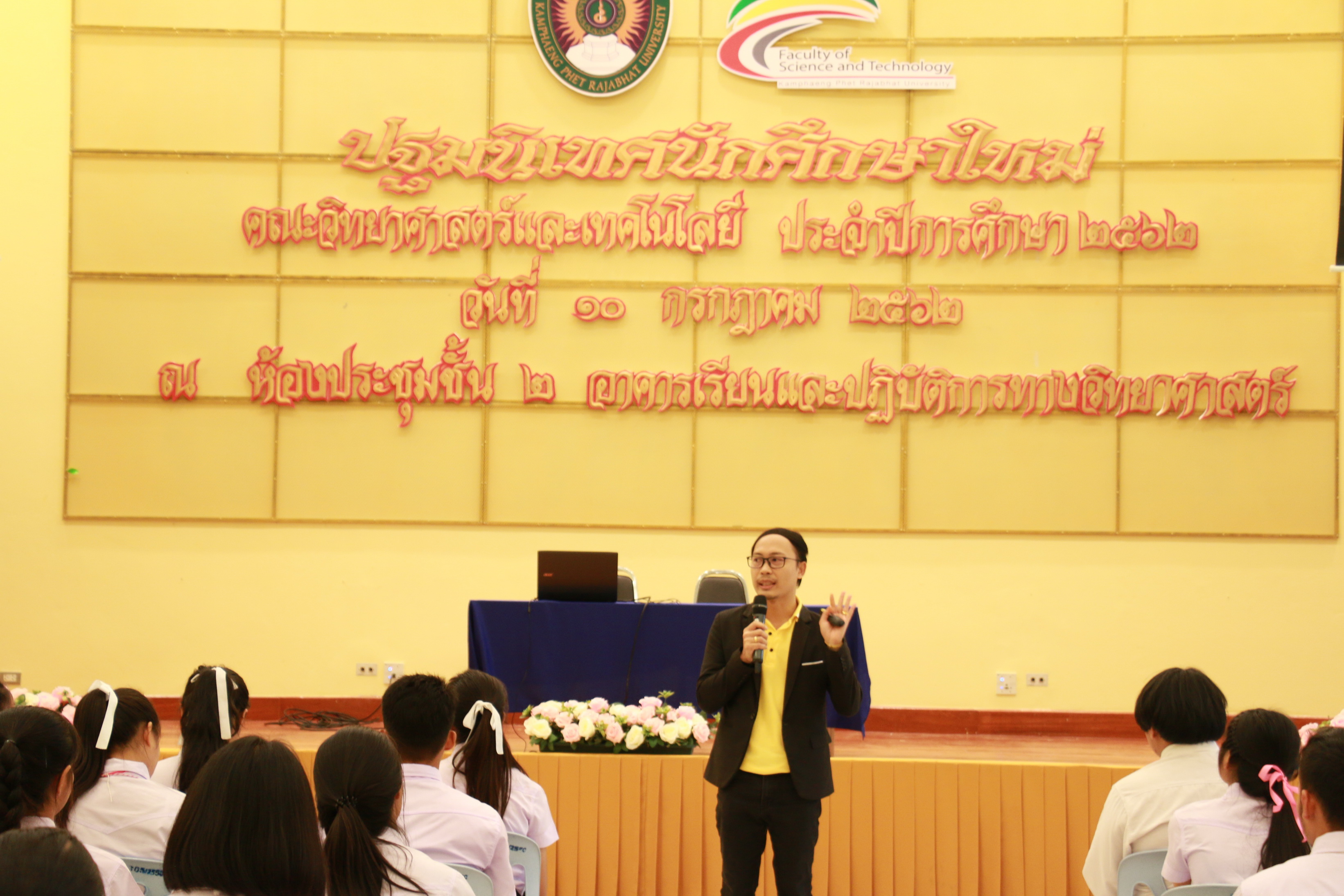 คณะวิทยาศาสตร์และเทคโนโลยี จัดปฐมนิเทศนักศึกษาใหม่ คณะวิทยาศาสตร์และเทคโนโลยี ประจำปี 2562 ในวันที่ 10 กรกฎาคม 2019 เวลา 12.30-16.40 น. ณ ห้องประชุมใหญ่ ชั้น 2 (48233) อาคารเรียนและปฏิบัติการทางวิทยาศาสตร์ โดย นายธาดา พรมทับ ให้กับ คณาจารย์คณะวิทยาศาสตร์และเทคโนโลยี