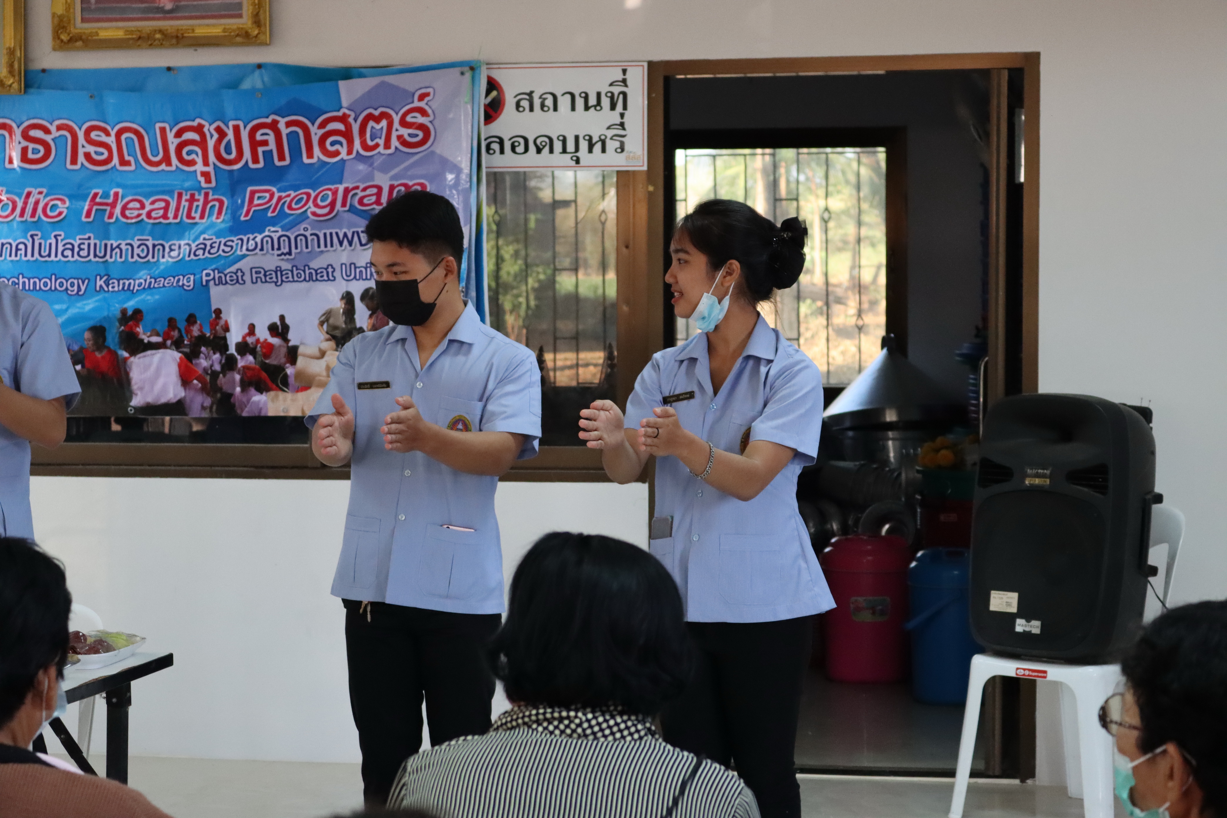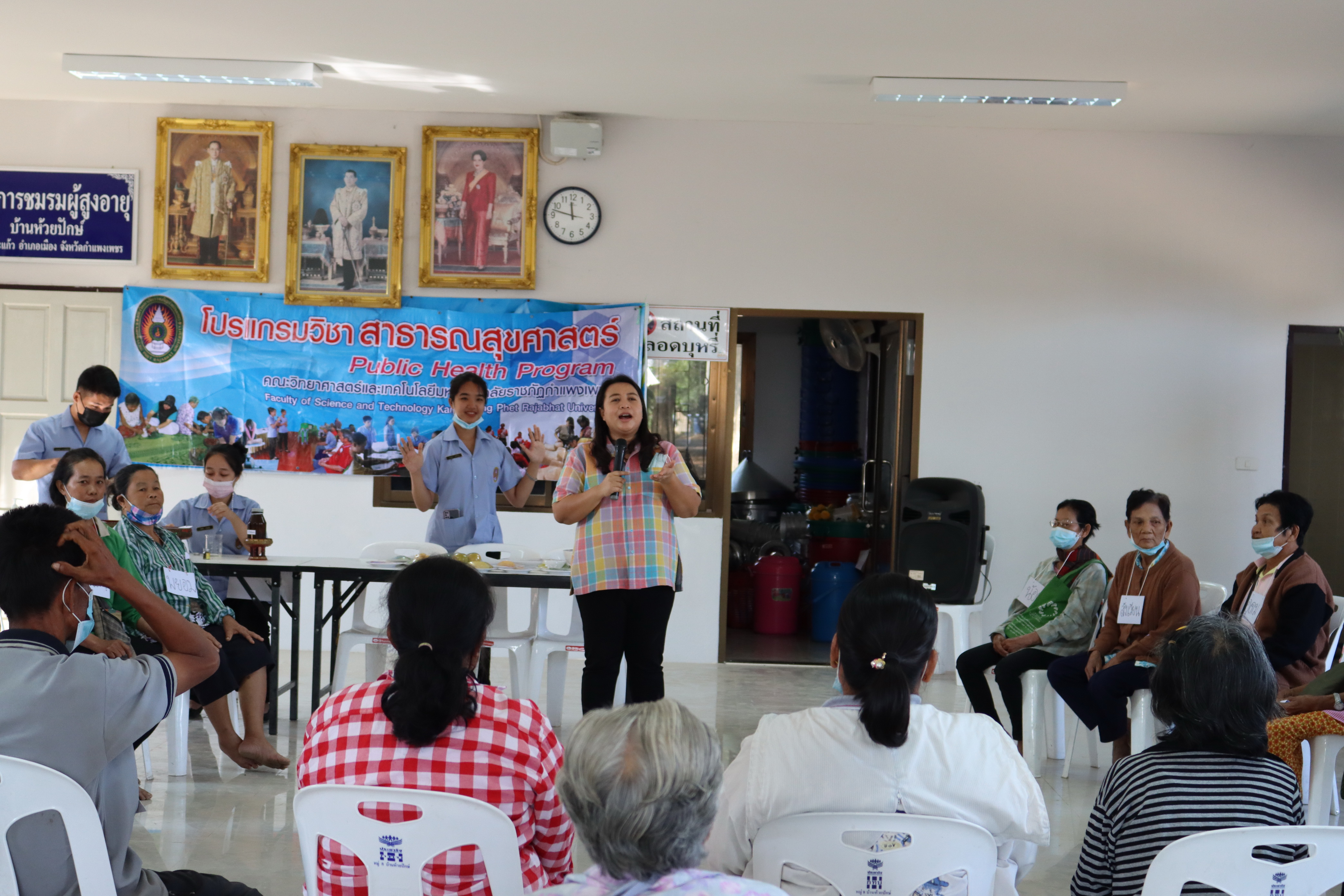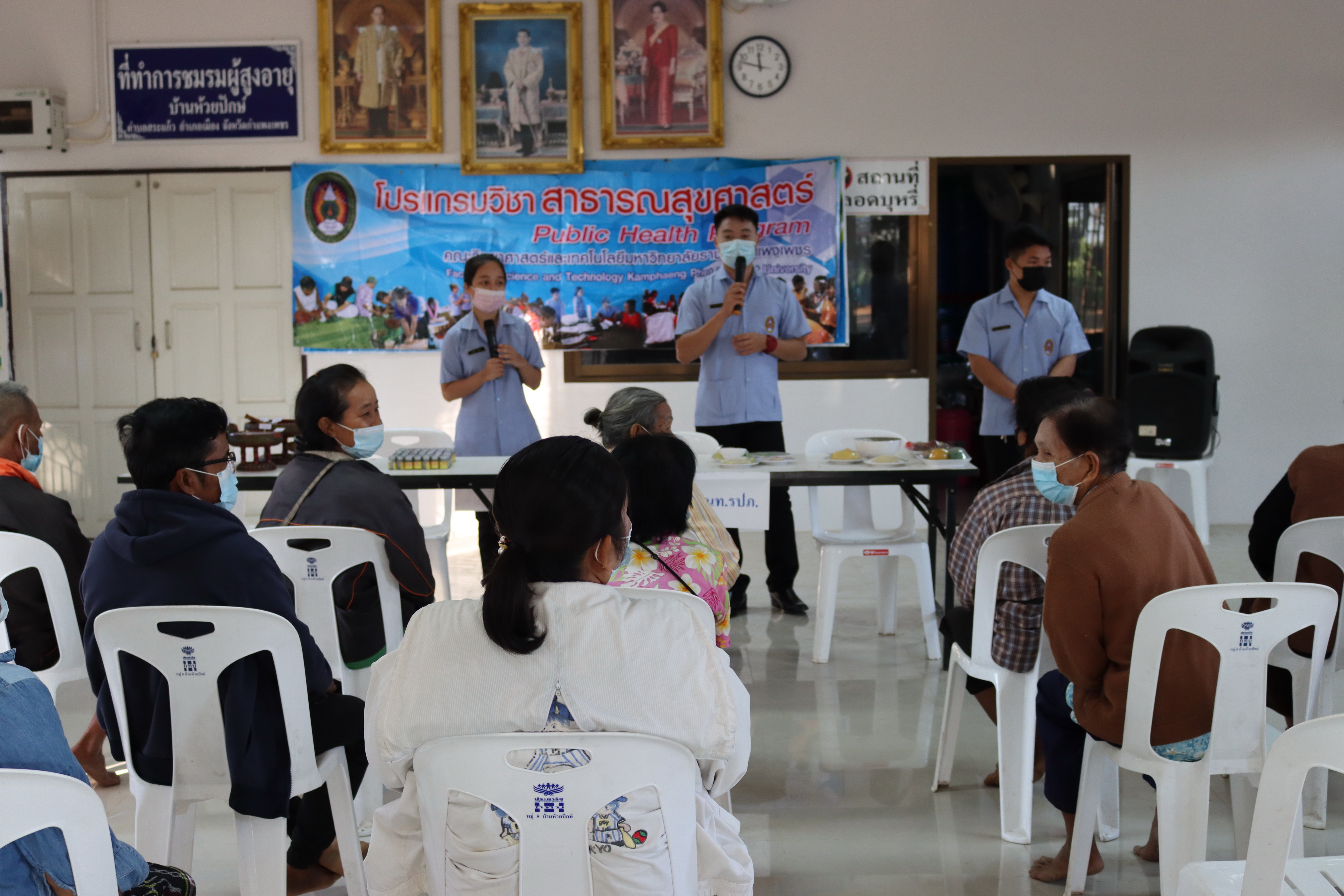 โปรแกรมวิชาสาธารณสุขศาสตร์ จัดกิจกรรมบริการวิชาการด้านสุขภาพ ในวันที่ 10 กุมภาพันธ์ 2564 เวลา 08.00-17.00 น. ณ อาคารเอนกประสงค์บ้านห้วยปักษ์ หมู่ 8 ตำบลสระแก้ว อำเภอเมือง จังหวัดกำแพงเพชร โดย อาจารย์วณิชชา คันธสร ให้กับ ผู้สูงอายุและประชาชนทั่วไป จำนวน 30 คน วิทยากรโดย รองศาสตราจารย์อุมาพร ฉัตรวิโรจน์, อาจารย์ราตรี โพธิ์ระวัช