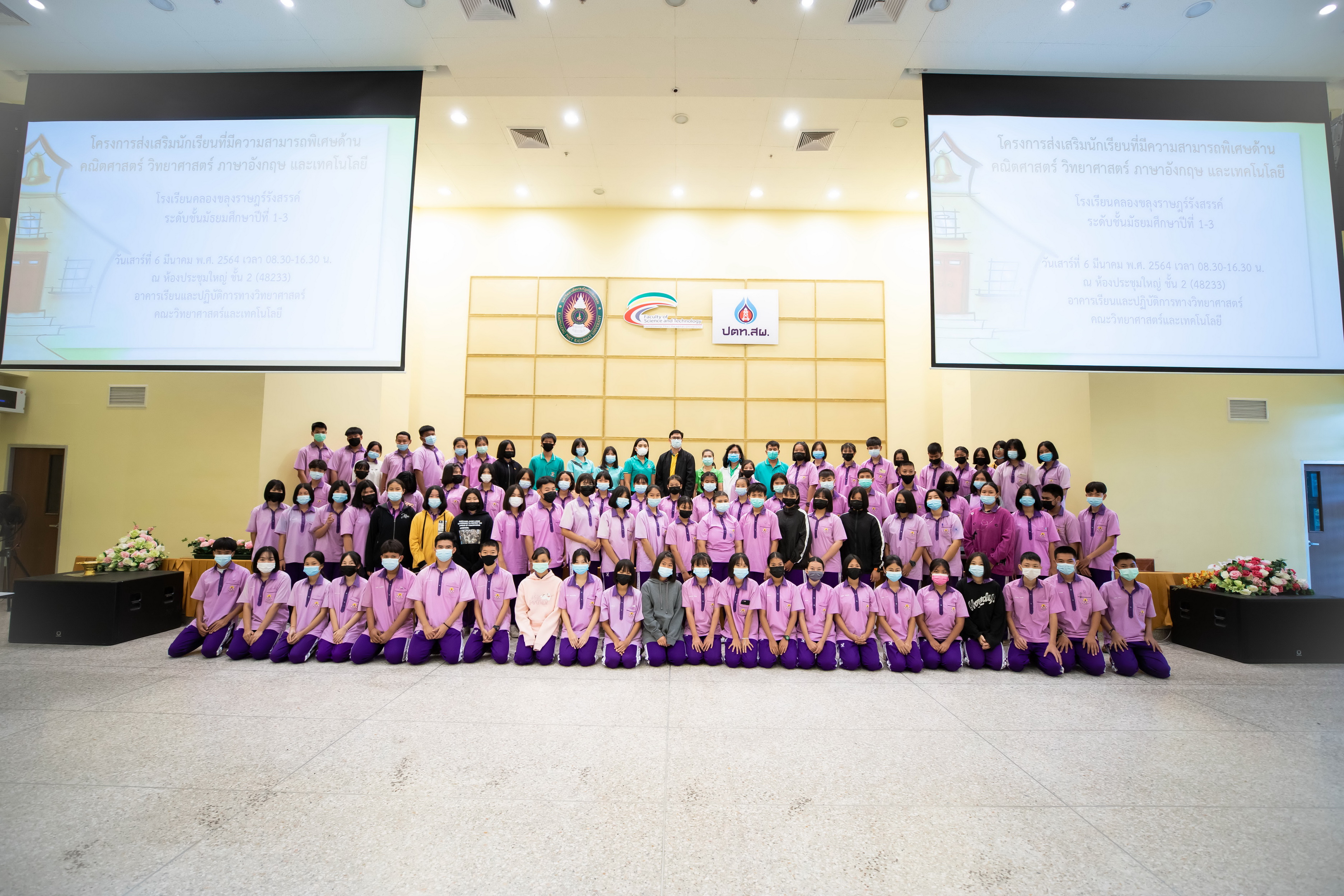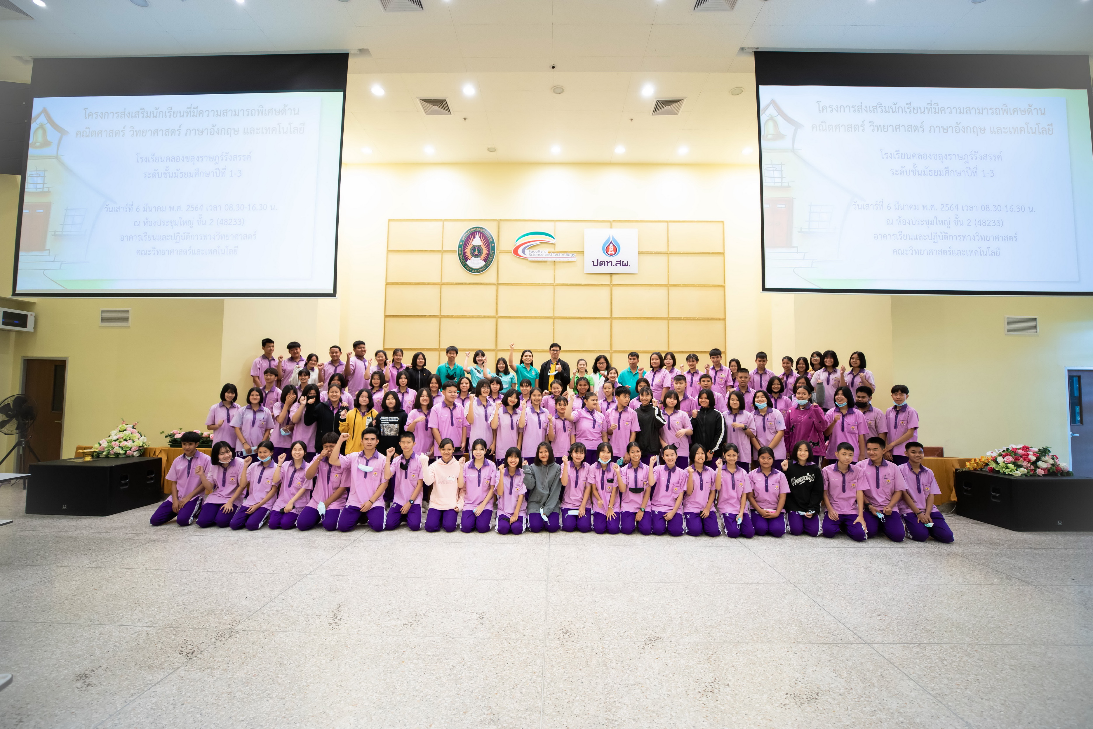 คณะวิทยาศาสตร์และเทคโนโลยี จัดโครงการส่งเสริมนักเรียนที่มีความสามารถพิเศษด้านคณิตศาสตร์ วิทยาศาสตร์ ภาษาอังกฤษ และเทคโนโลยี ในวันที่ 6 มีนาคม 2564 เวลา 08.30-16.30 น. ณ ห้องประชุมใหญ่ ชั้น 2 (48233) อาคารเรียนและปฏิบัติการทางวิทยาศาสตร์ โดย รองคณบดีฝ่ายบริการวิชาการและประกันคุณภาพการศึกษา ให้กับ นักเรียนโรงเรียนคลองขลุงรําษฎร์รังสรรค์ระดับชั้นมัธยมศึกษําปีที่ 1-3 จำนวน 95 คน วิทยากรโดย อาจารย์โปรแกรมวิชาวิทยาการคอมพิวเตอร์