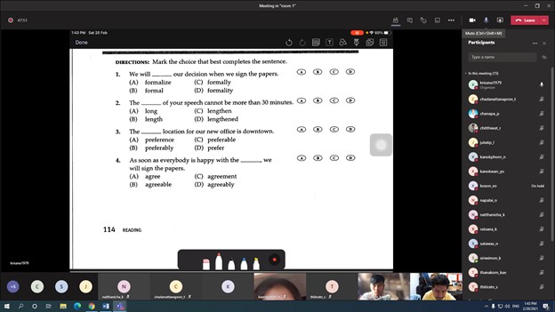 คณะวิทยาศาสตร์และเทคโนโลยี จัดกิจกรรมส่งเสริมสมรรถนะและทักษะด้านการใช้ภาษาอังกฤษรูปแบบออนไลน์ ในวันที่ 20 กุมภาพันธ์-6 มีนาคม 2564 เวลา 08.00-17.00 น. ผ่านทางออนไลน์ โดย รองคณบดีฝ่ายกิจการนักศึกษาและศิลปวัฒนธรรม ให้กับ นักศึกษาคณะวิทยาศาสตร์และเทคโนโลยี ชั้นปีที่ 3-4 วิทยากรโดย นายกฤษณะ จันทร