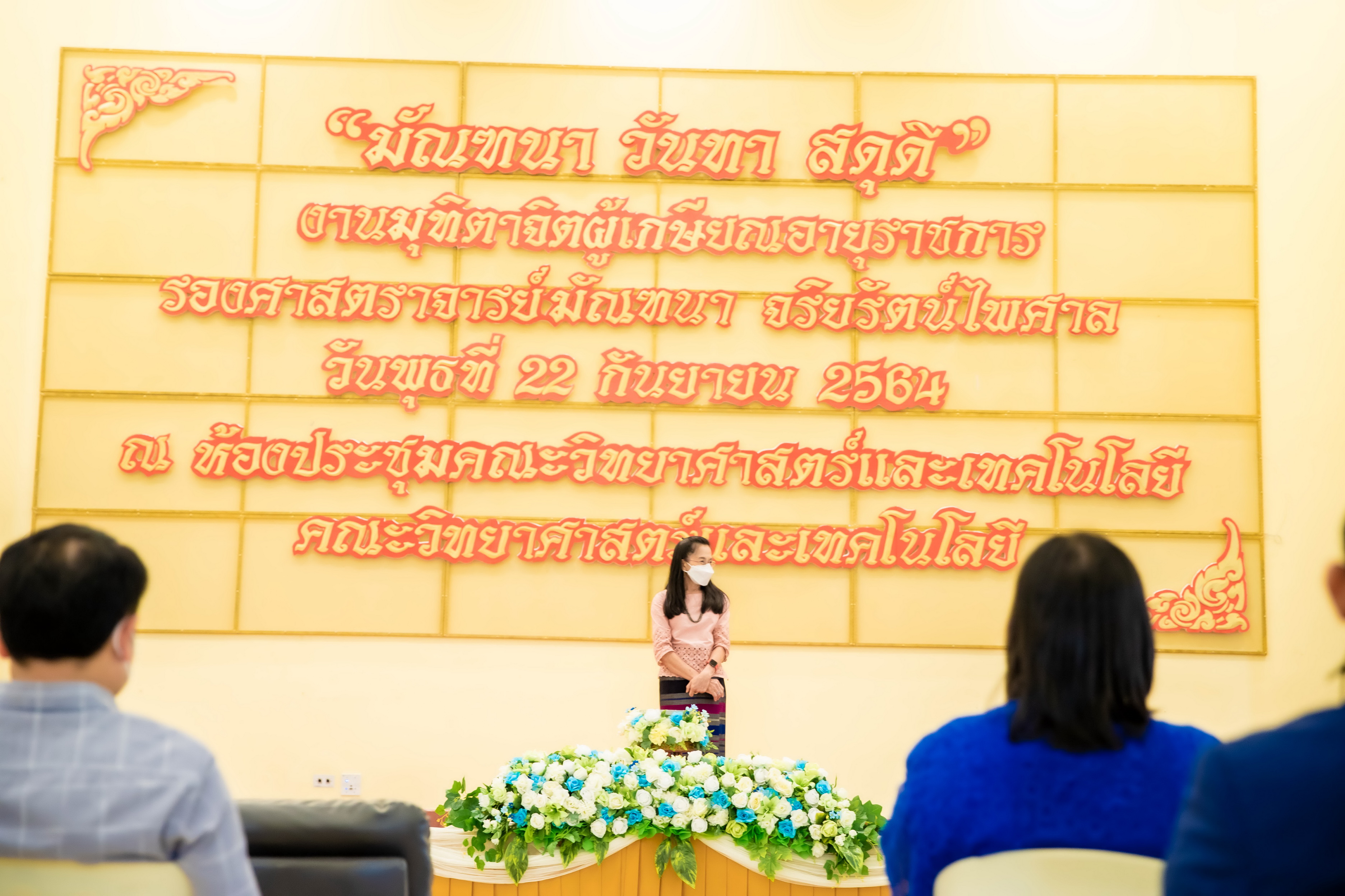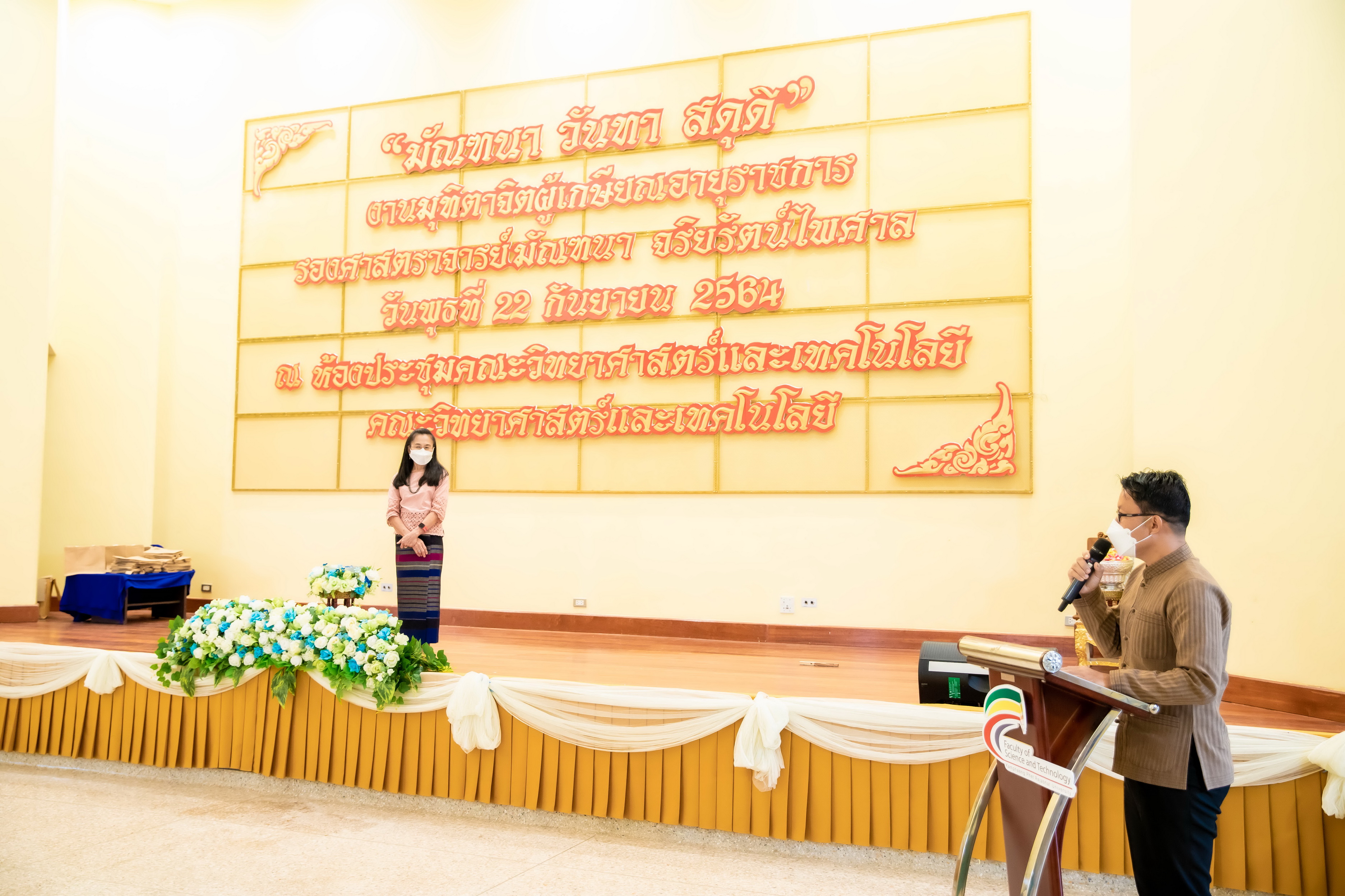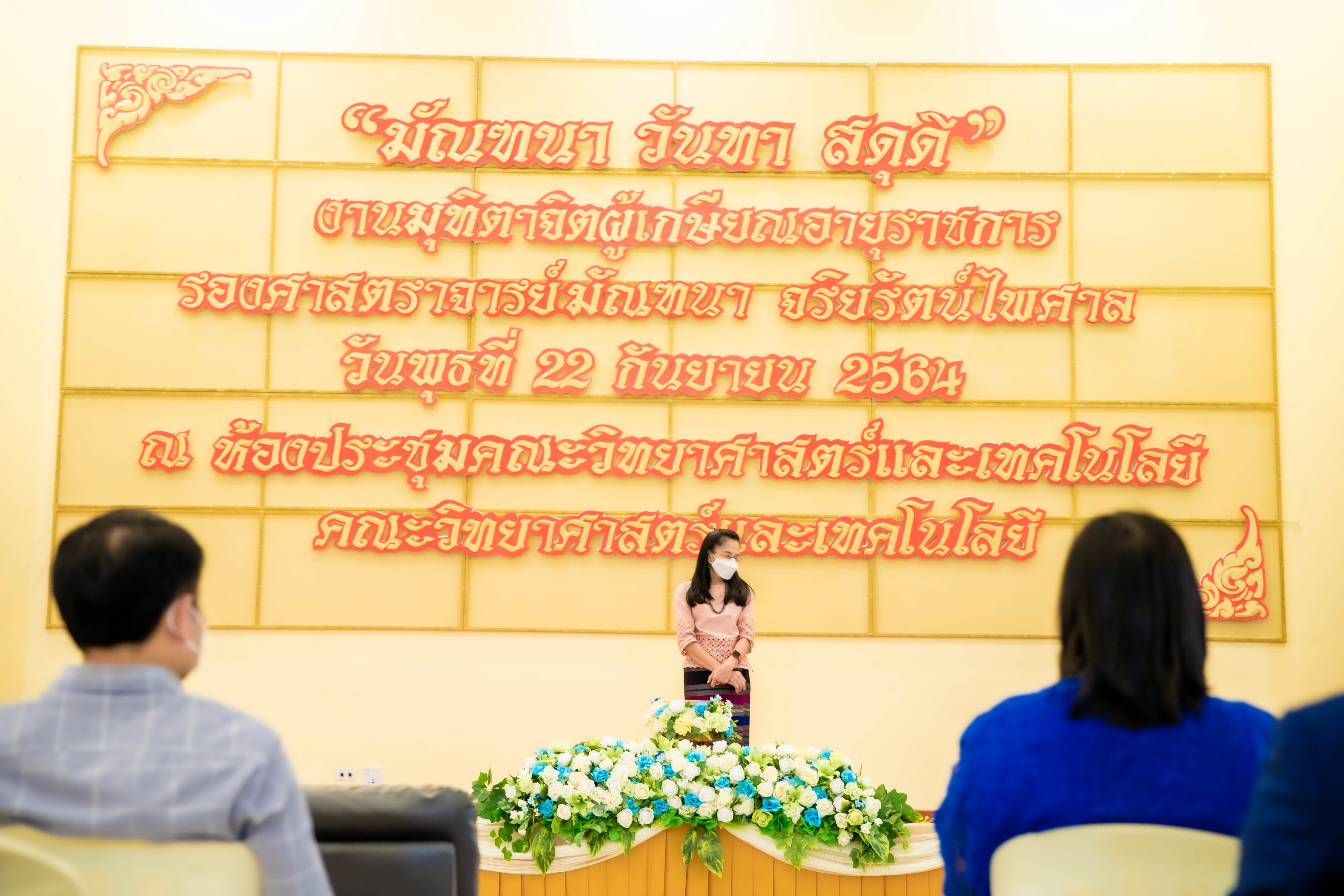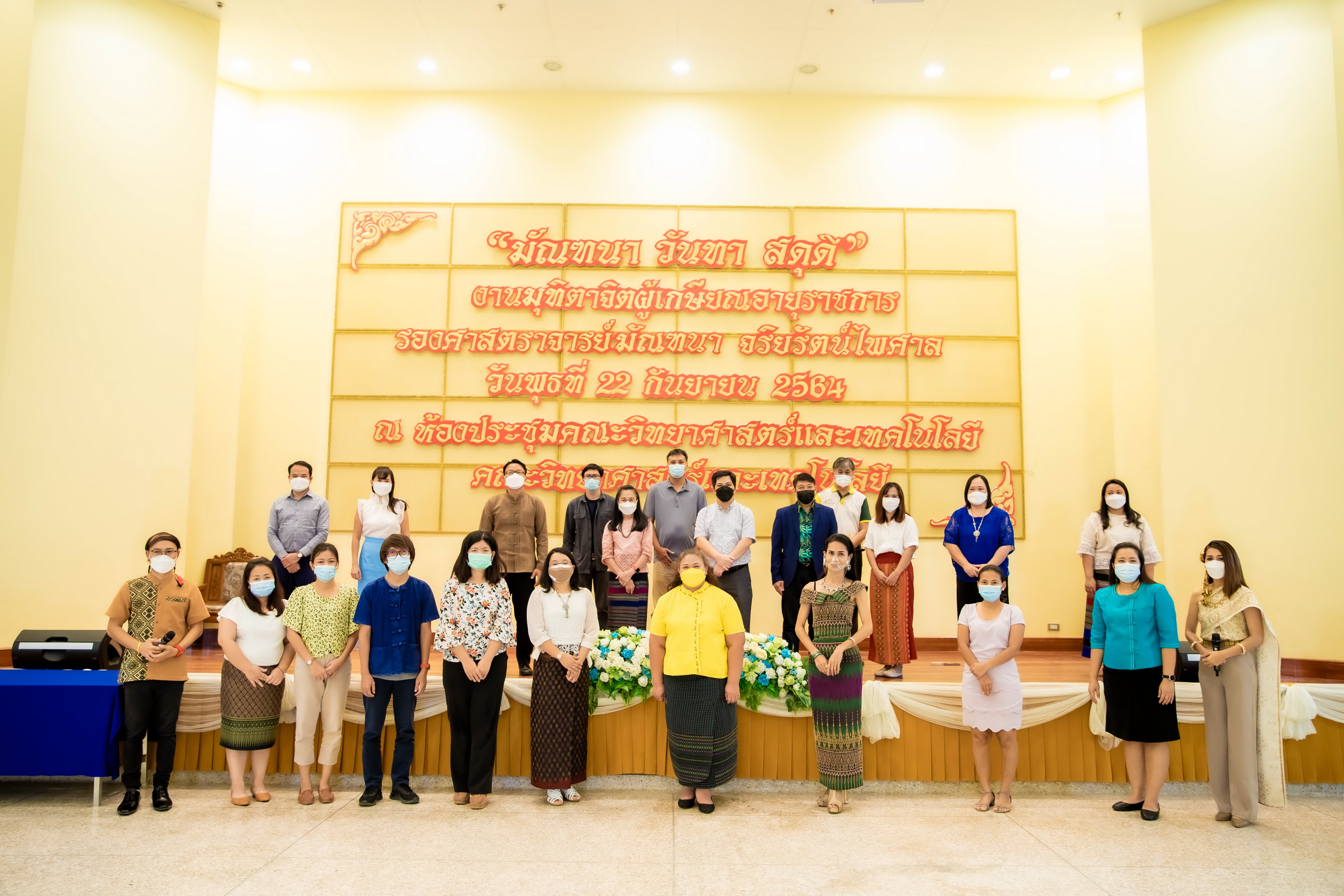 คณะวิทยาศาสตร์และเทคโนโลยี จัดงานมุทิตาจิตผู้เกษียณอายุราชการคณะวิทยาศาสตร์และเทคโนโลยี (มัณฑนา วันทา สดุดี) ในวันที่ 22 กันยายน 2564 เวลา 12.30-17.00 น. ณ "ห้องประชุมใหญ่ ชั้น 2 (48233) อาคารเรียนและปฏิบัติการทางวิทยาศาสตร์ และรูปแบบออนไลน์(Live Facebook)" โดย คณบดีคณะวิทยาศาสตร์และเทคโนโลยี ให้กับอาจารย์และบุคลากรคณะวิทยาศาสตร์และเทคโนโลยี