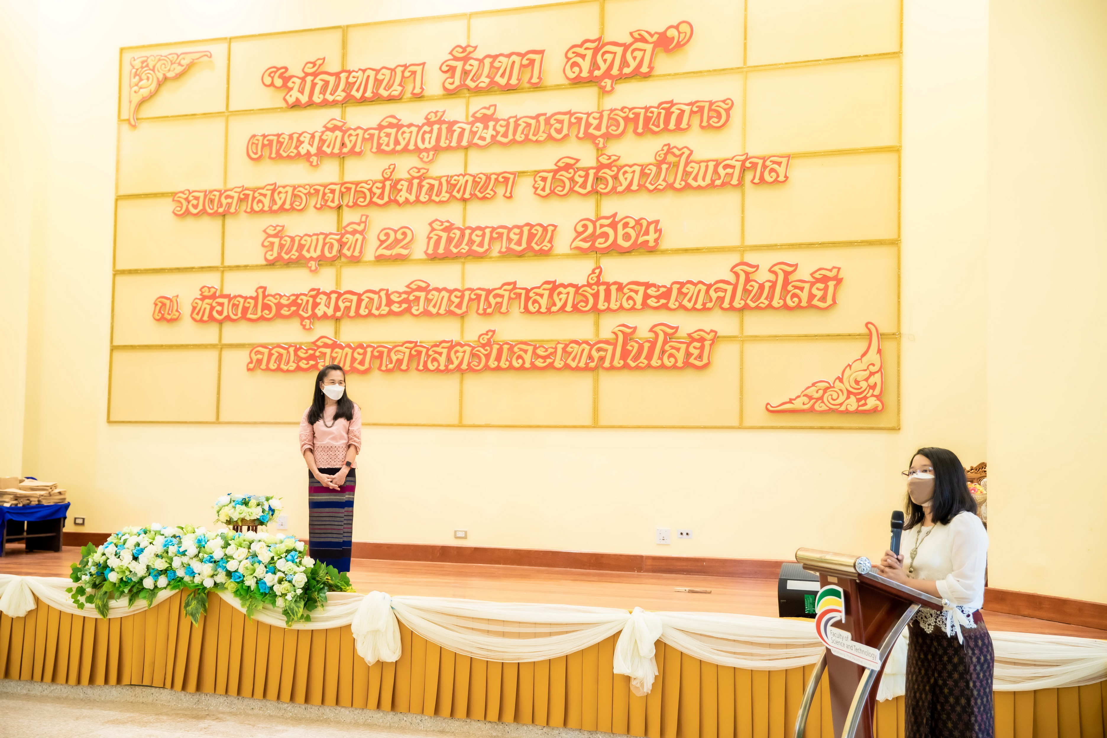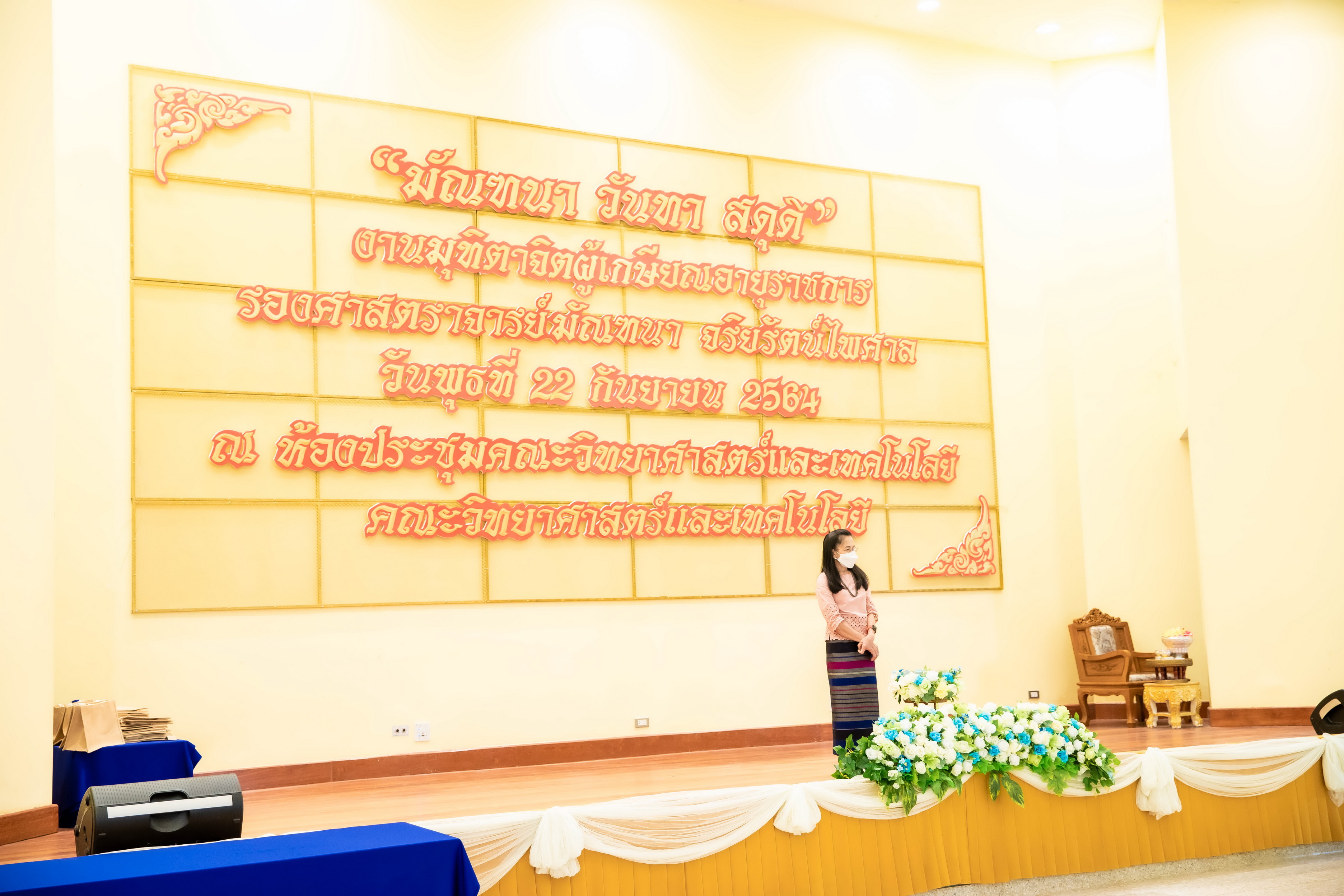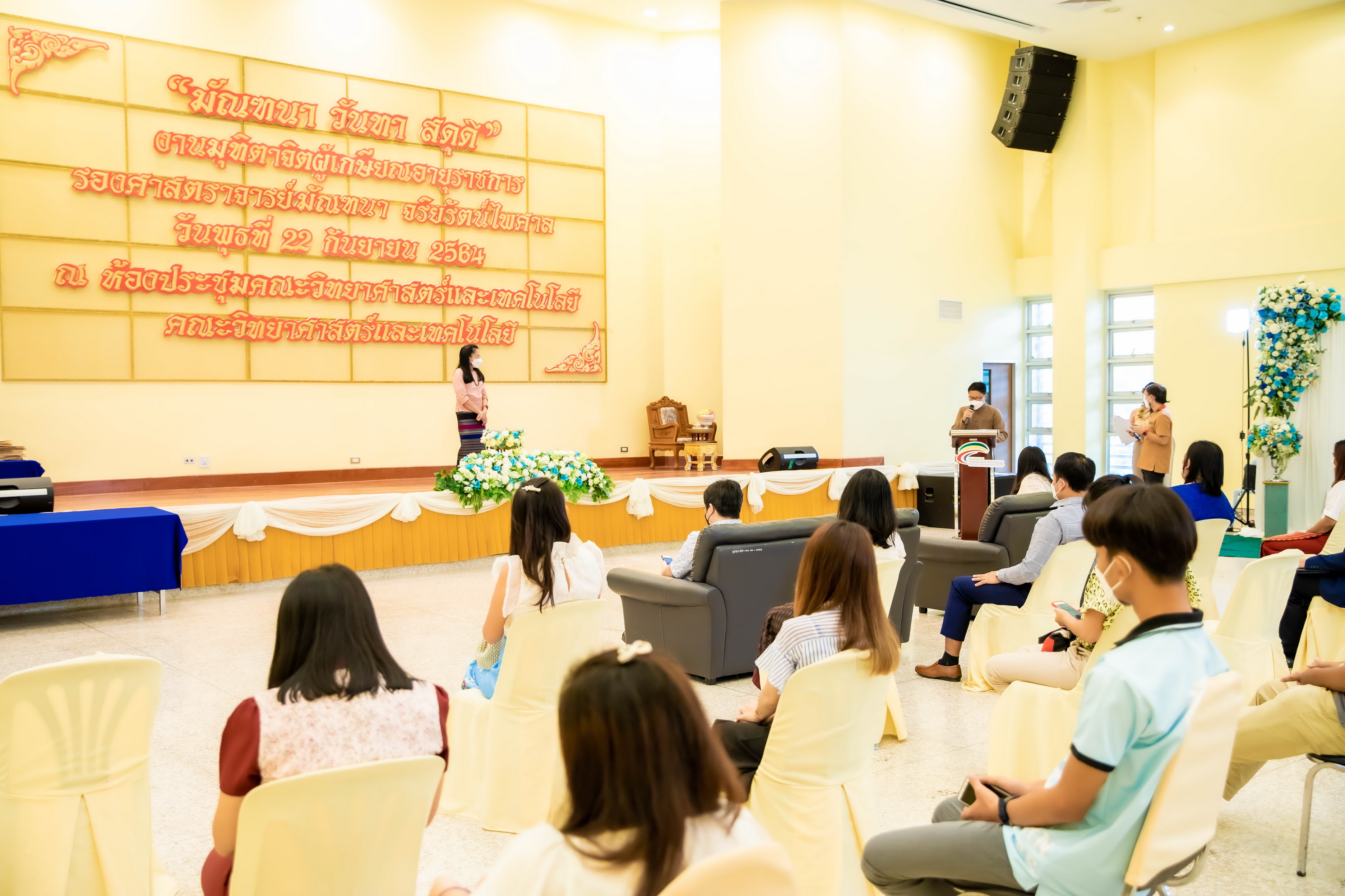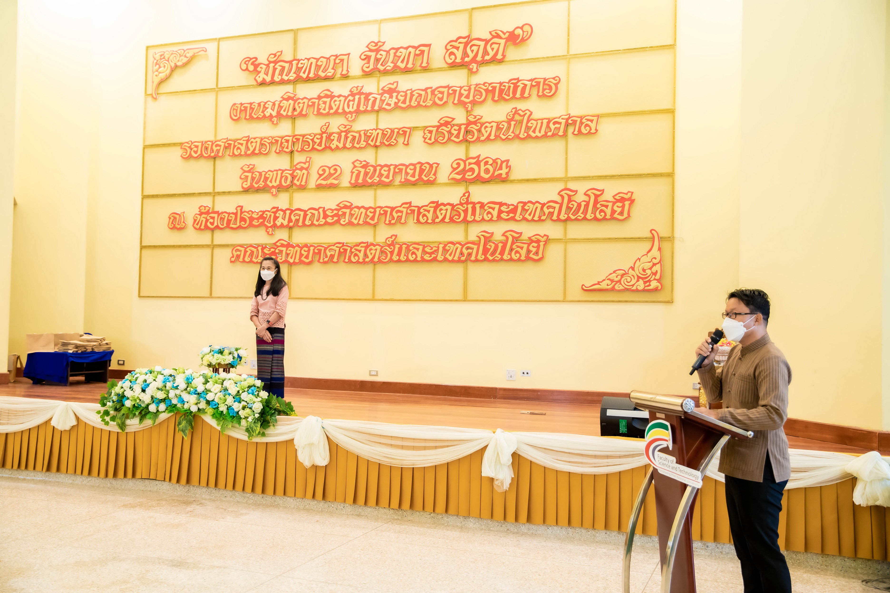 คณะวิทยาศาสตร์และเทคโนโลยี จัดงานมุทิตาจิตผู้เกษียณอายุราชการคณะวิทยาศาสตร์และเทคโนโลยี (มัณฑนา วันทา สดุดี) ในวันที่ 22 กันยายน 2564 เวลา 12.30-17.00 น. ณ "ห้องประชุมใหญ่ ชั้น 2 (48233) อาคารเรียนและปฏิบัติการทางวิทยาศาสตร์ และรูปแบบออนไลน์(Live Facebook)" โดย คณบดีคณะวิทยาศาสตร์และเทคโนโลยี ให้กับอาจารย์และบุคลากรคณะวิทยาศาสตร์และเทคโนโลยี