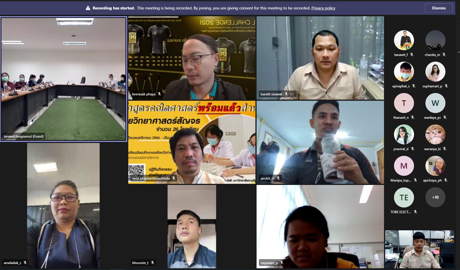 คณบดีคณะวิทยาศาสตร์และเทคโนโลยีมหาวิทยาลัยราชภัฏกำแพงเพชร เข้าร่วมเป็นเกียรติในพิธีเปิดและกล่าวต้อนรับนักศึกษาและผู้นิเทศประจำสถานประกอบการ ในวันที่ 1 ธันวาคม 2564 เวลา 08.30 -12.00 น. ในรูปแบบ Online โดยมีนักศึกษาจากคณะวิทยาศาสตร์และเทคโนโลยีเข้าร่วมด้วย ผ่านระบบ Ms Teams