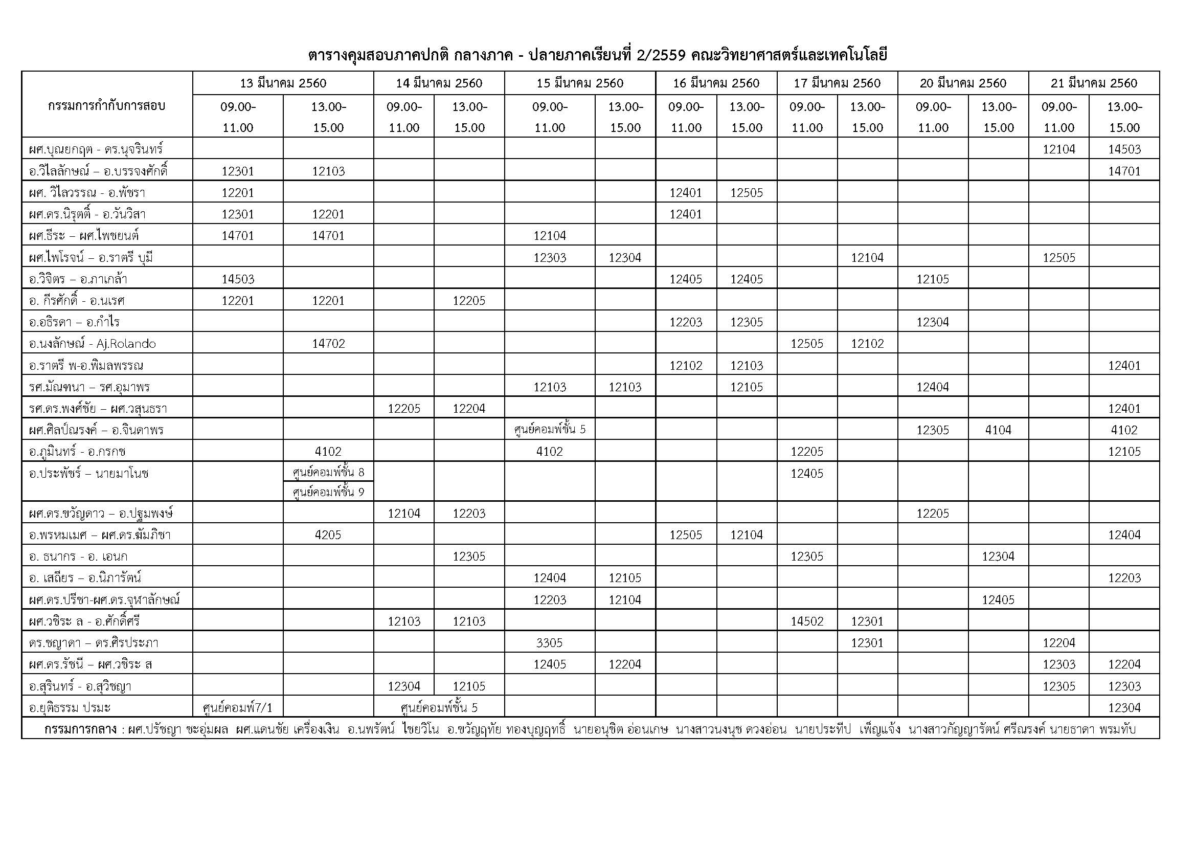 ตารางคุมสอบภาคปกติกลางภาค-ปลายภาคเรียนที่ 2/2559 คณะวิทยาศาสตร์และเทคโนโลยี ระหว่างวันที่ 13-21 มีนาคม 2560