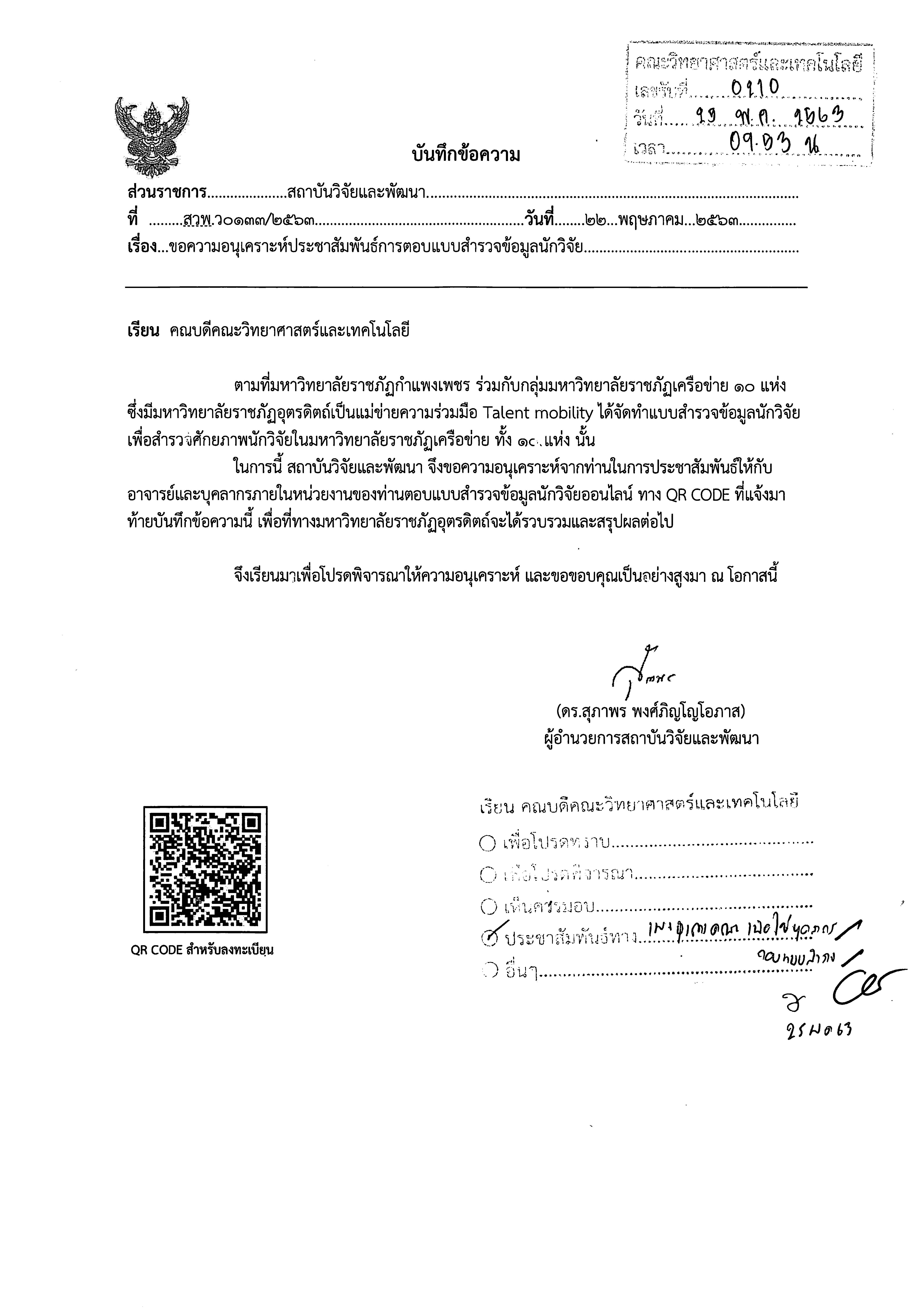 ประชาสัมพันธ์การตอบแบบสำรวจข้อมูลนักวิจัย