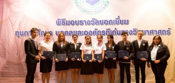 บุคลากรและนักศึกษาคณะวิทยาศาสตร์และเทคโนโลยี เข้าร่วมงานพิธีมอบรางวัลยอดเยี่ยม ทุนการศึกษาบุคคลและองค์กรดีเด่นทางวิทยาศาสตร์ ประจำปีที่ 49 พ.ศ.2559 มูลนิธิศาสตราจารย์ ดร.แถบ นีละนิธิ 13 มีนาคม 2560 บุคลากรและนักศึกษาที่ได้รับการเชิดชูเกียรติ