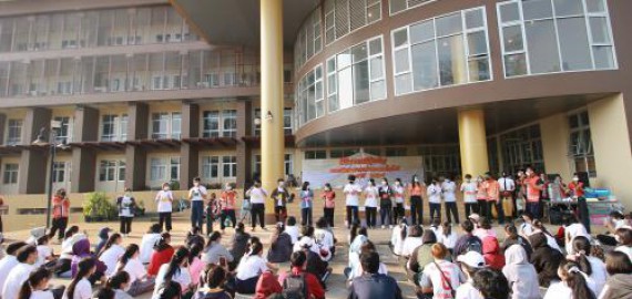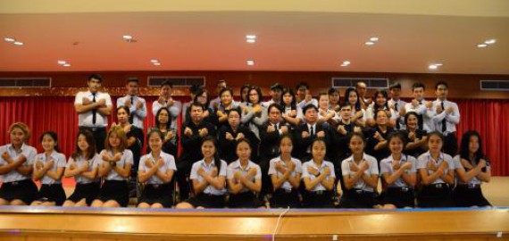ภาพกิจกรรม นักศึกษาคณะวิทยาศาสตร์และเทคโนโลยี เข้าร่วมโครการแสดงเจตจำนงการบริการงานด้วยความซื่อสัตย์สุจริต 22 กุมภาพันธ์ 2560 คณะวิทยาศาสตร์และเทคโนโลยี